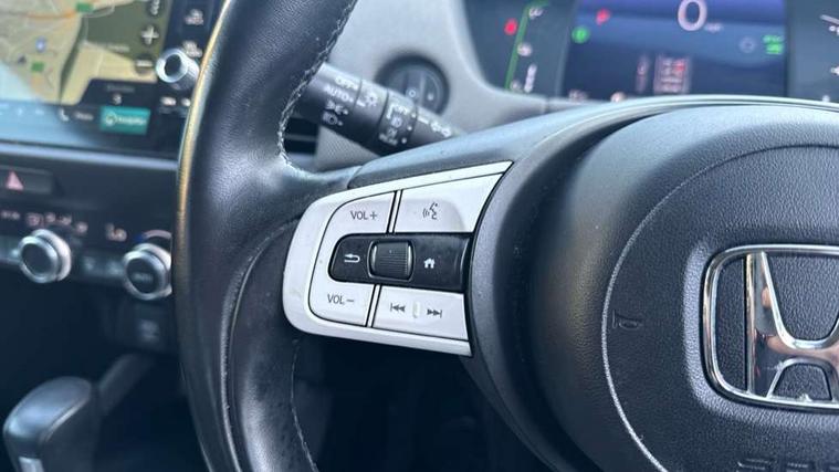 Adaptive cruise control, Adjustable speed limiter, Agile handling assist, Bluetooth hands free telephone connection, Econ mode, Electric power steering wheel with variable gear ratio steering, Emergency stop signalling system, Forward collision warning, Front and rear parking sensors, Honda CONNECT with HERE Navigation + 9" touchscreen, AM/FM/DAB/Apple Carplay and android auto, Idle stop, Intelligent speed limiter, Lane departure warning system, Lane keep assist system, Low speed following, Multi-information display, Rear view camera, Road departure mitigation, Traffic sign recognition, Vehicle stability assist, 'Shark fin' mobile antenna, 2 USB sockets in rear, 2x USB Front socket (1 data & 1 charge), Premium audio with 8 speakers, front tweeter, centre speaker, Remote audio controls on steering wheel, Subwoofer, Aspheric door mirrors, Auto wipers, Automatic headlights with on/off timer, Coming/leaving home function, Body colour door handles, eHEV emblem, Electric adjustable door mirrors, Electrically folding door mirrors, Exclusive styling includes Front and rear bumper, Front fog garnish, Black fender, side sill garnish, Front and rear electric windows, Heated door mirrors, High beam assist, LED daytime running lights, LED front fog lights, LED Headlights, LED rear lights, Privacy glass, Roof rails, Silver door mirrors, Single exhaust tailpipe, 60/40 split rear bench seat, Cargo net hooks, Climate control air conditioning, Driver and front passenger seat armrests, Driver and passenger front seat pockets, Driver's seat height adjustment, Fabric/Water repellent upholstery, Front accessory power socket, Front head restraints, Front map lights, Front/rear courtesy lights, Heated front seats, Isofix child seat restraint mechanism, Isofix points, Leather gearshift knob, Leather steering wheel, Magic seat flexibility system, Paddle shift controls, Plating interior door handles, Rear head restraints, Rear parcel shelf, Sunvisors with vanity mirrors, Tilt/telescopic adjustable steering wheel, Tonneau cover, Trunk light, 3x3 point rear seatbelts, Anti-lock braking system (ABS), Brake assist function, Brake hold function, Collision mitigation braking system, Deflation warning system, Driver knee airbag, Driver SRS airbag (single stage inflation), Driver/Front Passenger airbags, Electric parking brake, Front and rear side curtain airbag, Front side airbags, Hill start assist, Passenger SRS airbag cut-off device, Rear side airbags, Whiplash lessening front headrests, Front seat belt with emergency locking retractor, Honda super locks, Immobiliser, Mirrors and windows key fob operation, Remote central locking with 2 remote folding keys, Security alarm, Smart entry + Smart start, Soft pad mesh interior panels, 16" AL Crosstar alloy wheels in mat berlina black, Tyre repair kit,