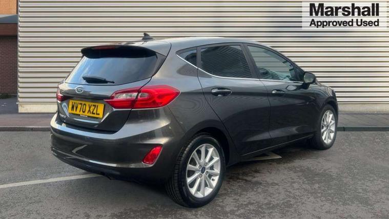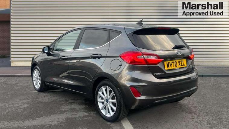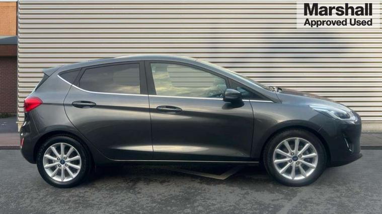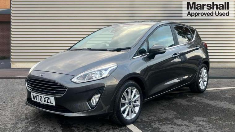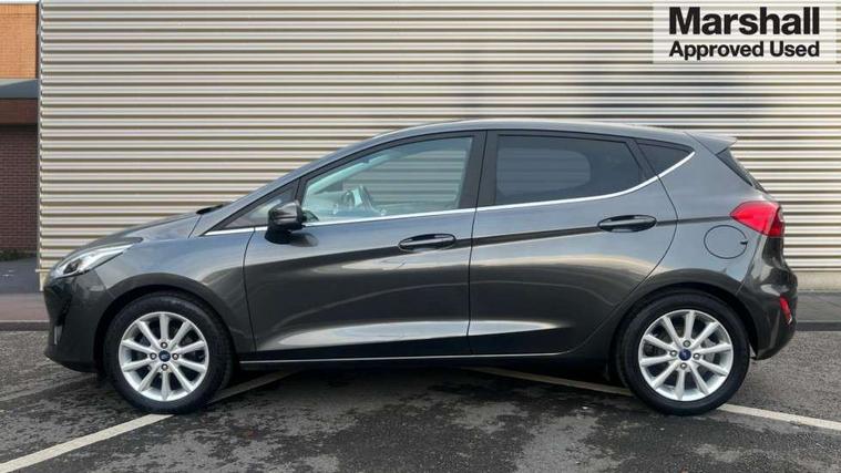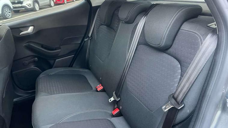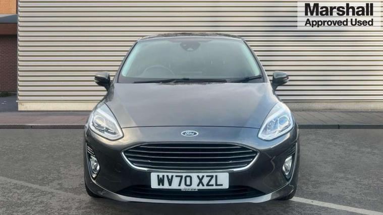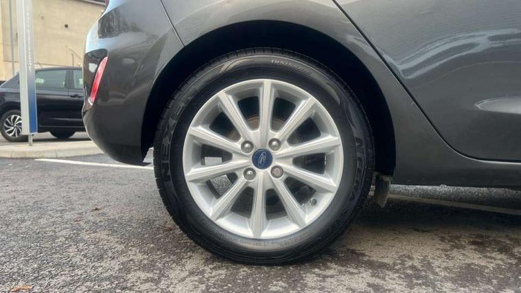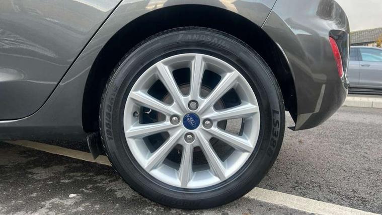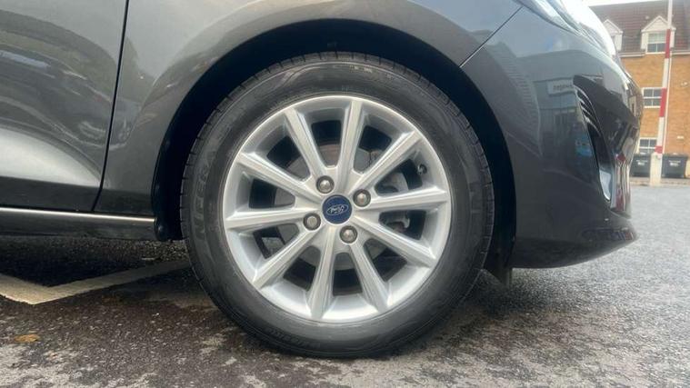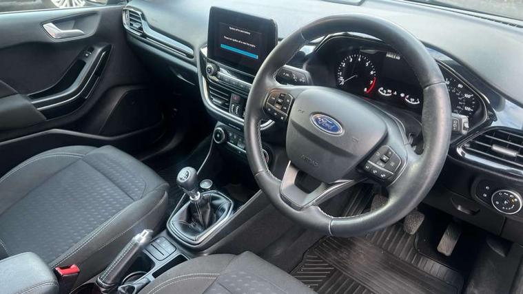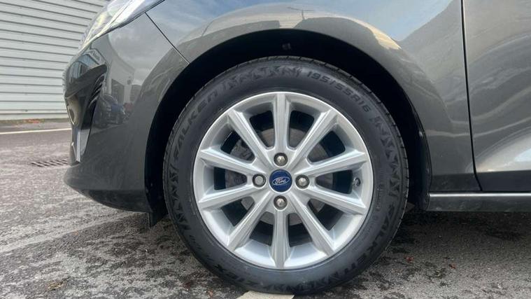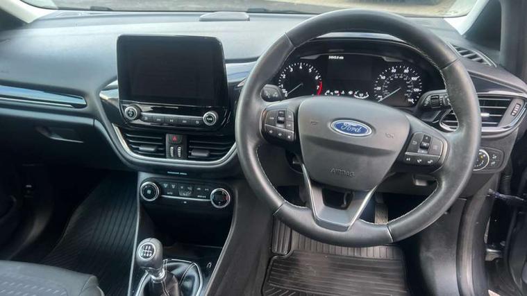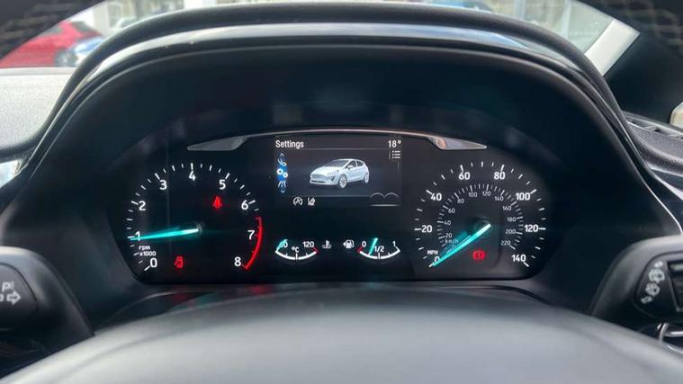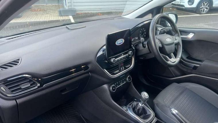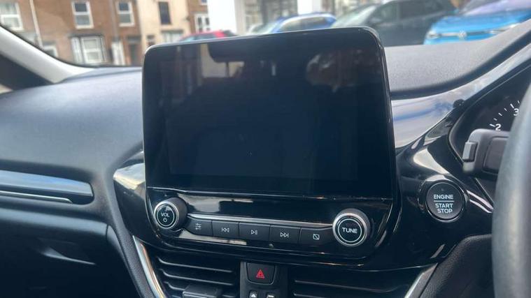 Bluetooth system, Electric power steering, Ford easy fuel, Ford SYNC 3 Navigation system incl 8" touchscreen, 7 speakers, FordPass connect, Apple carplay, android auto, voice control and emergency assistance, Trip computer, 2 USB ports, Auxiliary input socket, DAB Digital radio, Steering wheel mounted controls, Auto dimming rear view mirror, Body colour bumpers, Body colour door handles, Body colour electric adjustable heated door mirrors with integral indicators, Body colour rear spoiler, Chrome beltline trim, Chrome lower window surround, Cornering front fog lights, Electric front windows/one touch facility, LED Night signature to rear lights, LED rear lights, Power foldable door mirrors with puddle lights, Privacy glass, Quickclear heated windscreen, Rain sensing wipers and auto dimming rear view mirror, Rear privacy glass, Rear wiper, Tinted glass, Upper front grille chrome surround, 12V Accessory socket in centre console, 3 spoke leather trimmed steering wheel with audio control, 60/40 split folding rear seat, Adjustable head restraints, Ambient lighting, Boot carpet, Centre console with armrest and illuminated cupholders, Chrome inner door handles, Cloth upholstery, EATC - Electronic Auto Temperature control, Footwell illumination, Front and rear velour floor mats, Front map reading lights, Front seat and rear pockets, Height adjustable driver's seat, Illuminated glovebox, Leather gear knob, Leather trimmed handbrake handle, Load area light, Luxury woven headliner, Overhead console with sunglasses holder, Pollen filter, Rake/reach adjustable steering wheel, Rear centre head restraint, Driver assistance pack - Fiesta/Titanium/Titanium X/Active B+O/Active X/ST-Line X, NCAP Pack - Fiesta, 3 point seatbelts on all rear seats, ABS+EBA, Curtain airbags, Driver and passenger airbags, Drivers knee airbag, Electronic stability control with hill start assist, Front passenger airbag deactivation, Front side airbags, Seatbelt warning, Tyre pressure monitoring system, MyKey system, Remote central locking & engine immobiliser, Thatcham Cat.1 alarm, 16" 10 spoke alloy wheels,