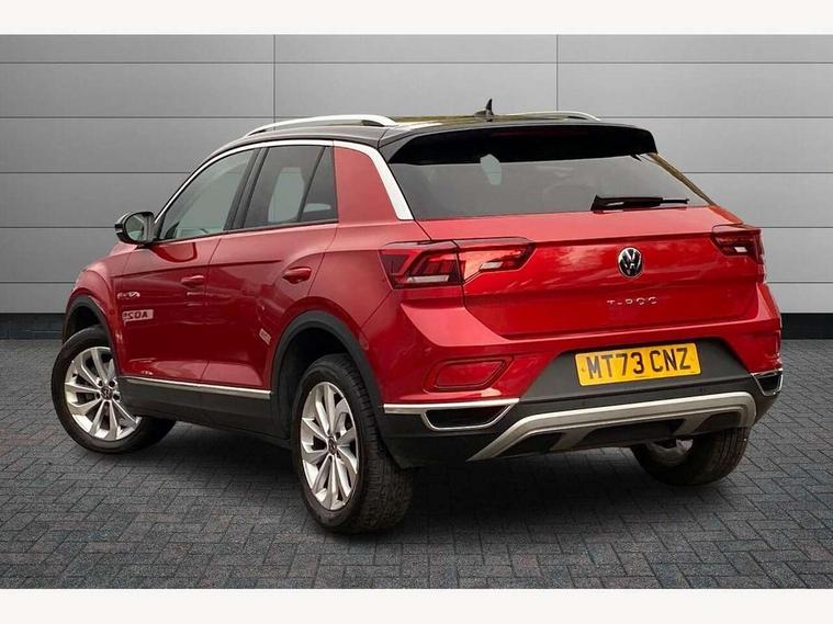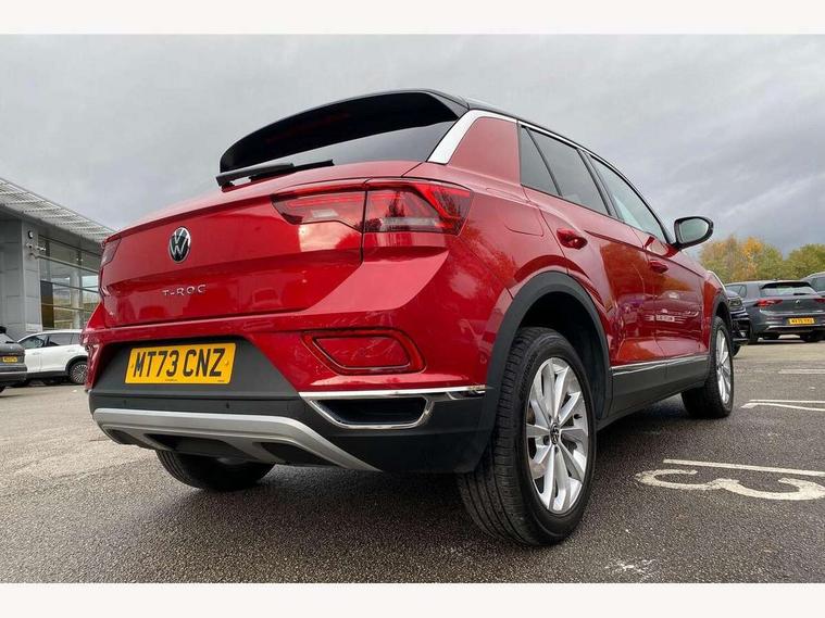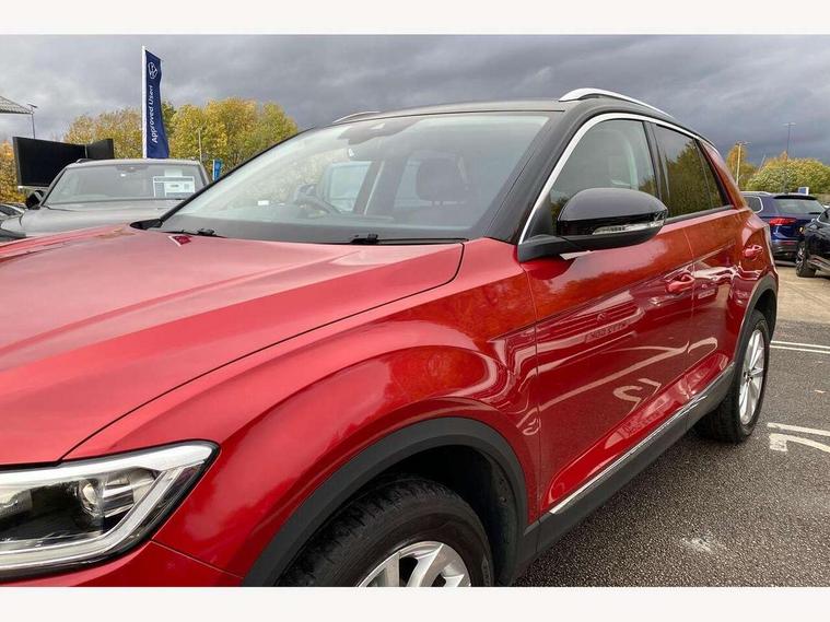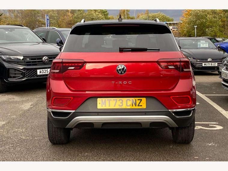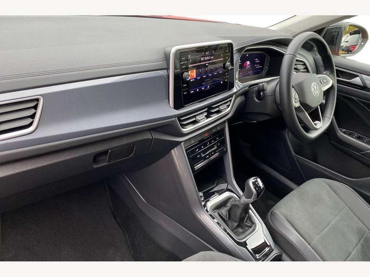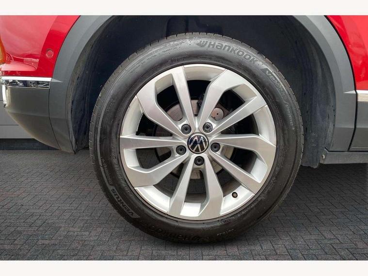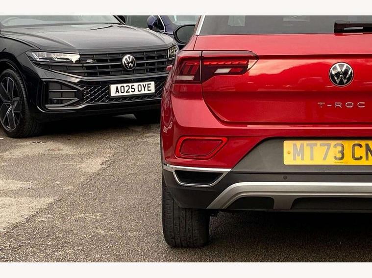 10.25" Digital cockpit pro, Bluetooth mobile phone interface, Driver alert system with fatigue detection, Driver tips and journey analysis, Emergency call service, Lane keeping system Lane Assist, Modified key software - reduce switch off time for key status change to Long no motion, Online services, Park assist including front and rear parking sensors, Service interval indicator, Tailgate/trunk lid release from outside, Think blue trainer driver tips and journey analysis, Warning sound and light for front seatbelts unfastened, Wireless app connect, Battery regeneration during braking, Start/stop function with battery regeneration, Diversity antenna for FM reception, Music playback - MP3, WMA and AAC files, Premium USB cable in choice of either Apple or Android smartphone compatibility, SD card slot, Simultaneous pairing of 2 compatible mobile devices, Title and cover art display, We Connect and We Connect Plus functionality, 3rd brake light, Auto dimming interior rear view mirror, Automatic hazard lights activation under emergency braking, Automatic headlight control with LED separate daytime running lights with coming/leaving home function, Body colour sports bumpers with silver metallic underbody fascia, Dynamic headlight range control with self adjusting whilst driving, Extended roof spoiler, Exterior mirrors aspherical on driver side, convex on front passenger side, External USB type C socket and charging sockets, Front windscreen wiper with intermittent wipe and 4 position delay, Heated rear window, LED rear combination lamps, LED rear number plate lights, LED tail lamp rear comination lamps, Light mode for poor weather, rain, fog or snow, Power windows with comfort operation and circuit breaker, Rain sensor, Rear exhaust tailpipe, Rear fog light on one side and reversing lights on both sides, Rear side wing doors, Rear wash/wipe with intermittent wipe setting, Remote electrically foldable door mirrors, puddle lights and reverse activated passenger's door mirror, 12V power socket in centre console, 3 rear head restraints, 3 seat bench in 2nd row, 4 load lashing points in luggage compartment, Air care climatronic air conditoning system with active combination filter and 2-zone temperature control, Chrome plated radiator grille inserts, air vent surrounds and light switch surrounds, Door and side trim panel with leatherette insert, Drawer under drivers seat, Front + rear carpet mats, Front centre armrest, Front comfort sports seats, Front cupholders x 2, Front footwell illumination, Instrument lighting, white adjustable panel illumination, Interior ambient lighting and surround lighting, Interior light delay, Isofix child seat preparation, Leather gearshift handle, LED interior light with switch off delay/dimmer and 2 front/rear LED reading lights, Load-through provision with cup holder when folded down ('Unsplit rear seat bench, split folding backrest, with centre armrest), Luggage compartment lighting, Non-folding front passenger seat backrest, Single front passenger seat, Storage compartment in left and right luggage area, Storage compartment in rear doors, Storage compartments in driver and front passenger doors, Sunvisors with illuminated vanity mirrors, Variable boot floor, height adjustable and removable, Driver assistance pack without proactive passenger protection - T-Roc, 3 point height adj front seatbelts + pretensioners, 3 point seatbelts in outer rear with ECE label, ABS, Child locks on rear doors, Driver and front passenger airbag with front passenger airbag deactivation, Driver and front passenger safety-optimised head restraints, Drivers seatbelt reminder, Electronic parking brake, Electronic Stability Control (ESC) inc EDL (Electronic Differential Lock) and ASR (Traction Control), Front and rear passengers curtain airbag system including front side airbags, Front assist with city emergency braking and pedestrian monitoring, Front seat side impact airbags, Predictive pedestrian protection, Rear disc brakes, Single tone horn, Tyre pressure loss indicator, Volkswagen roadside assistance, Anti-theft alarm system with interior monitoring, backup horn, and towing protection, Remote central locking with SAFELOCK, radio remote control with 2 remote control folding keys, Trims for alloy wheels,