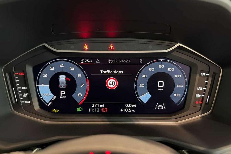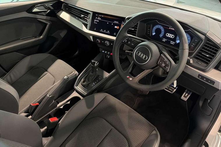 10.25" Digital instrument cluster display classis style instrument dials + speed, odometer, time, outside temperature, telephone menu + fuel level warning, Advanced driver attention and drowsiness monitor, Audi connect emergency call and service, Audi drive select, Audi remote connect and control, Audi smartphone interface, Bluetooth interface, Camera based traffic sign recognition, Cruise control, Driver's information system, Electromechanical power steering, Lane departure warning system, Rear parking sensor, Service interval indicator, Speed limiter, Start stop system with recuperation, Voice control system, Washer fluid level indicator, Sports suspension, 2 x USB type C connection points, 6 loudspeakers, DAB Digital radio, MMI radio plus with 10.1" colour MMI display screen and MMI touch, Auto dimming rear view mirror, Body coloured door mirrors, Door sill trims with aluminium inlays and S line logo in front, Electric front and rear windows, Electrically adjustable, heated, folding door mirrors with integrated LED side indicator, Front side air inlets in grained matt black and C frame in anthracite black, Headlight cleaning system, Heat insulating glass windscreen and side windows, Heated rear windscreen, High level LED brake light, LED daytime running lights, LED headlights with range control LED rear lights + dynamic rear indicators, Light and rain sensors, Privacy glass, Radiator grille and rear diffuser in matt anthracite black, Radiator protective grille frame in matt aluminium silver, Rear fog lights, Rear side wing doors, Rear wiper, S line badges on front wings, Side front spoiler lips in grained matt black, 12V socket in centre console with two cup holders, 3 rear seats with headrests, 3 seat bench in 2nd row, 3 spoke leather multi-function plus steering wheel features S badging and grips in perforated leather with contrast stitching, 40:60 Split folding rear seat or fully collapsed, Black cloth headlining, Front and rear velour black floor mats with contrast stitching in fine silver, Front head restraints, Front passenger seat, Height and reach adjustable steering wheel, Interior lighting includes roof module, front and rear reading lights and right luggage compartment lighting, ISOFIX child seat mounting for front passenger and outer rear seats including top tether attachment point of outer rear seats, Leather gear knob with aluminium trim, Leather handbrake grip, Manual air conditioning, Manual height adjustable for driver and front passenger seat, Manually adjustable lumbar support in front seats, Stainless steel pedals, Ambient lighting package - A1, Luggage compartment pack - A1, S line exterior styling pack - A1 Sportback, 3x3 point rear seatbelts, Audi pre-sense front with pedestrain and cyclist recognition, Brake assist function, Driver and front passenger airbag with front side and head airbags, Electronic Stability Control including ABS, EBD, ASR and EDL, Front passenger airbag deactivation switch, Hill hold assist, Manual rear child locks, Seatbelt height adjustment for front seats, Seatbelt monitoring, Tyre pressure loss indicator, Warning triangle and first aid kit, Anti theft alarm, Anti theft wheel bolts, Immobiliser, Remote control key with safelock, Aluminium trim for control switches, air vents and digital instrument cluster, Black dashboard, Silver grey inlays polygon structure in diamond paint finish, Structured grey accent surfaces insert of air vents, interior door handle recesses and centre console in quartz paint finish,