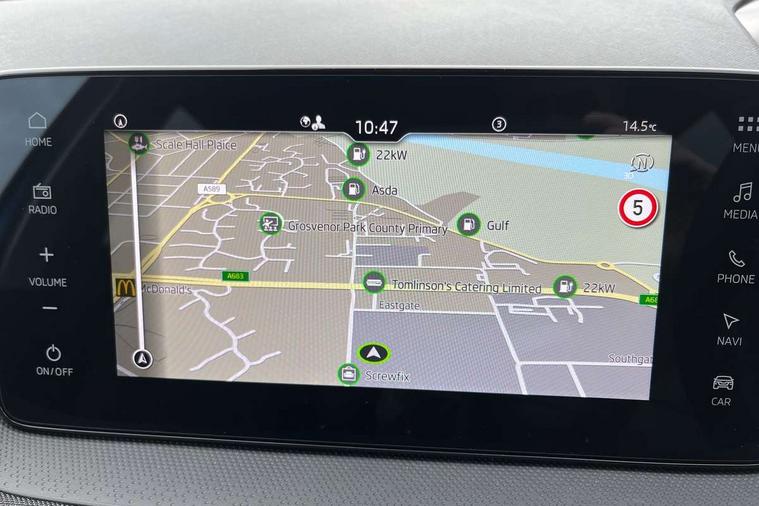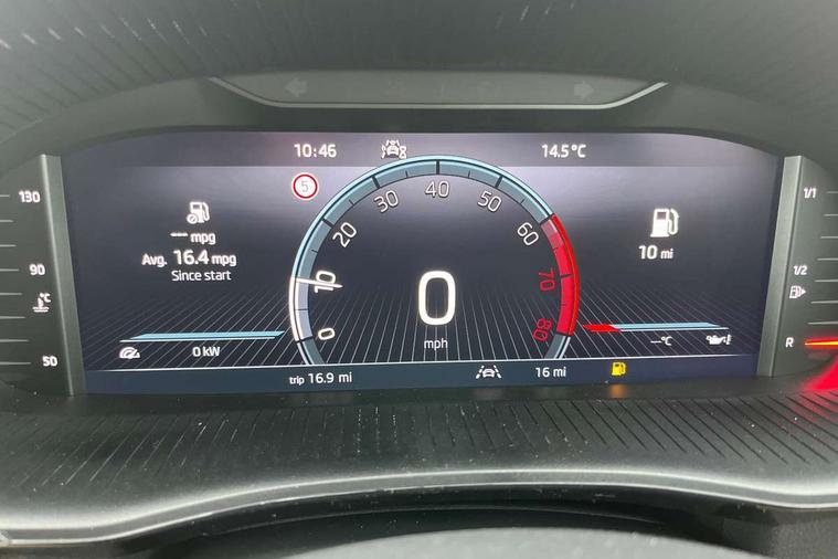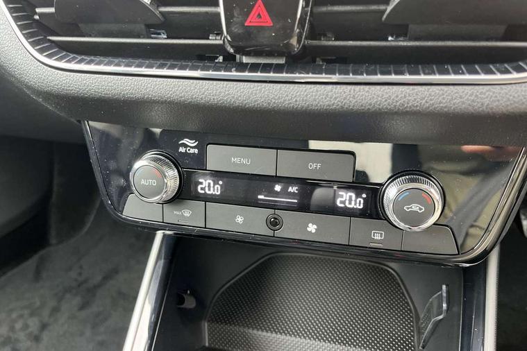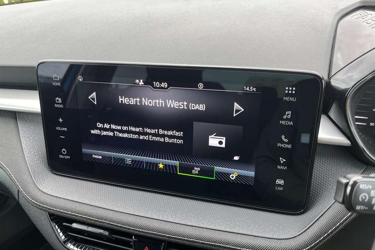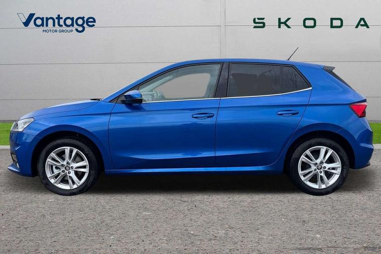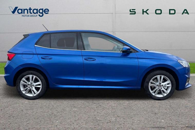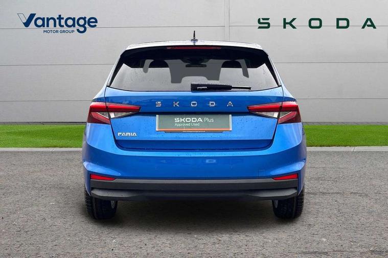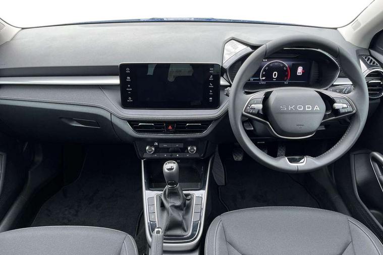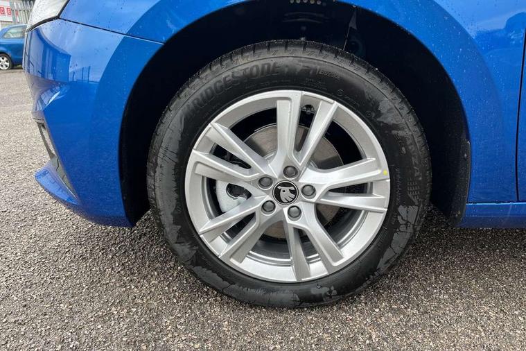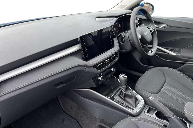 Advanced driver attention and drowsiness monitor, Bluetooth connection, Driver alert system, Electromechanical power steering, Exterior temperature gauge, Service interval indicator, Traffic sign recognition, Virtual cockpit with 10.25" colour display, Wireless SmartLink for Apple CarPlay and Android Auto, 6 Speakers (4 in front and 2 in rear), 9.2" colour display skoda navigation system with voice control and web radio, Auxiliary socket for external MP3 player, DAB digital radio reception, Auto dimming rear view mirror, Body colour door mirrors, Body coloured bumpers, Chrome window surround, Door mirror integrated indicators, Front and rear electric windows, Front window wiper intermittent control, Headlight range control - Automatic, Ice scraper in fuel cap, LED 3rd brake light, LED daytime running lights with coming and leaving home feature, LED rear lights, Privacy glass, Rear LED fog light, Rear side wing doors, Rear window wiper with washing nozzles, Roof mounted spoiler, SKODA tailgate lettering in chrome, Unique dark chrome design logo on alloy wheels, 2 LED reading lights in front and rear, 3 rear headrests, Backrest split and folding, Central console with fixed cup holder and storage box, Chrome handbrake release button, Comfort seats, Door sills with fabia badging, Dual zone air conditioning with climatronic electronic control, Fabric upholstery, Front centre armrest, Gearshift knob/handle in leather, Grain satin black interior door handles, Hand brake lever handle in leather, Height adjustable front headrests, Height adjustable front seats, Height adjustable steering wheel, ISOFIX and TopTether anchorage points to the outer rear seats, ISOFIX and TopTether on the front passenger seat, Luggage compartment lighting, Manually adjustable lumbar support in front seats, Pollen filter, Rear seat bench unsplit, Single front passenger seat, Skoda lettering on steering wheel, Storm grey headlining, Sun visors with mirror and airbag label on passenger side, Textile floor mats, Ticket holder, Umbrella in drivers door, Ambient lighting pack - Fabia Hatchback, 3-point height adjustable front seats belts with pretensioner and force limiter, Automatic warning lights in case of crash, Driver and passengers airbag with switch off function, e-Call+, ESC including ABS, MSR, ASR, EDS, HBA and XDS, Front and rear seat belt warning, FRONT ASSIST (AEB City and AEB Inter Urban), Front side airbags, Head airbags, One tone horn, Pedestrian protection, Three rear 3-points safety seat belts with pretensioner and force limiter including stop function for outer rear seat belts, Tyre pressure monitoring system, Anti-theft alarm system including immobiliser, interior monitoring, backup horn, and towing protection, Central locking with radio remote control, interior controls, SAFE function and 2 foldable keys, Chrome edged air vents, Grain satin black central console cover, Metallic grey upper decorative trim, Satin black door and side trim panel in front, Textile microsuede grey lower decorative trim with art grey stitching, Anti-theft wheel bolts protection, Super-low rolling resistance tyres,