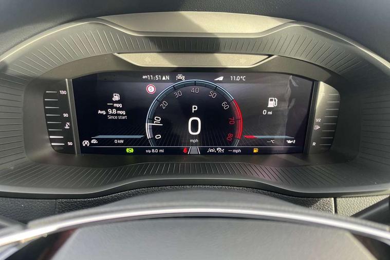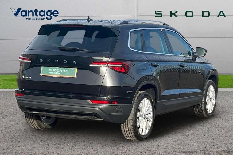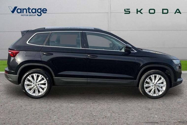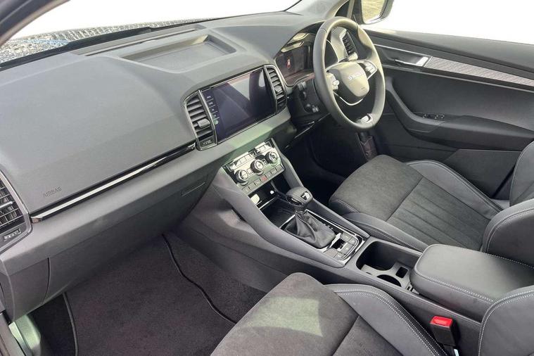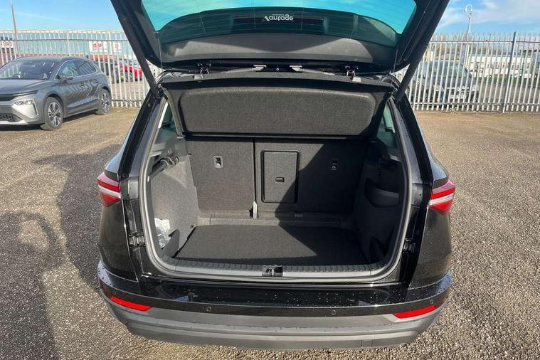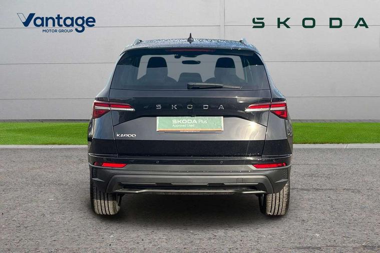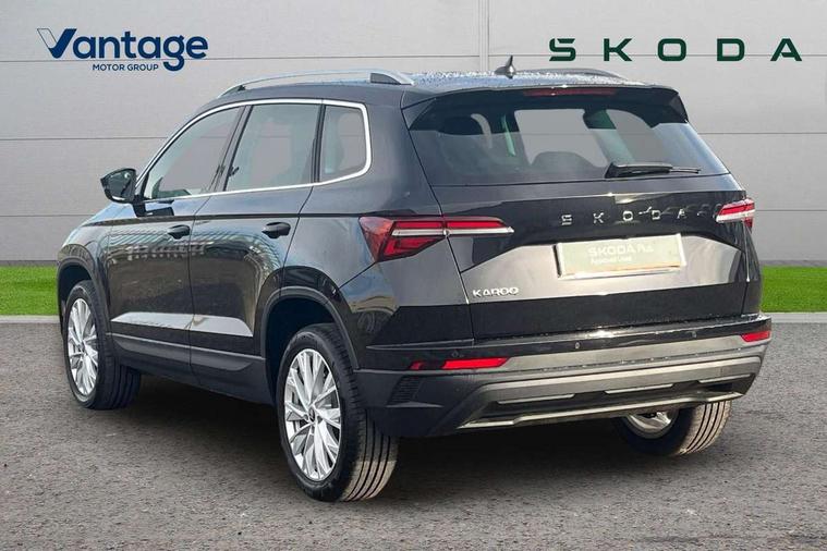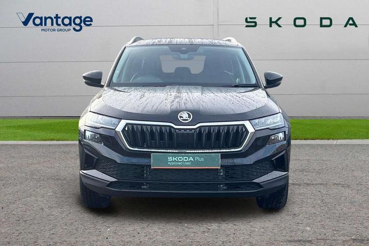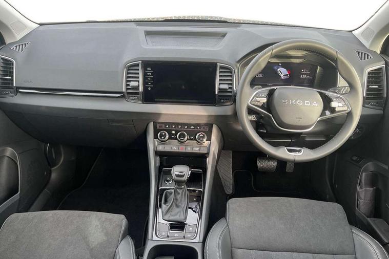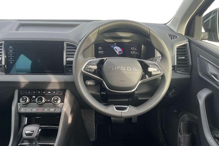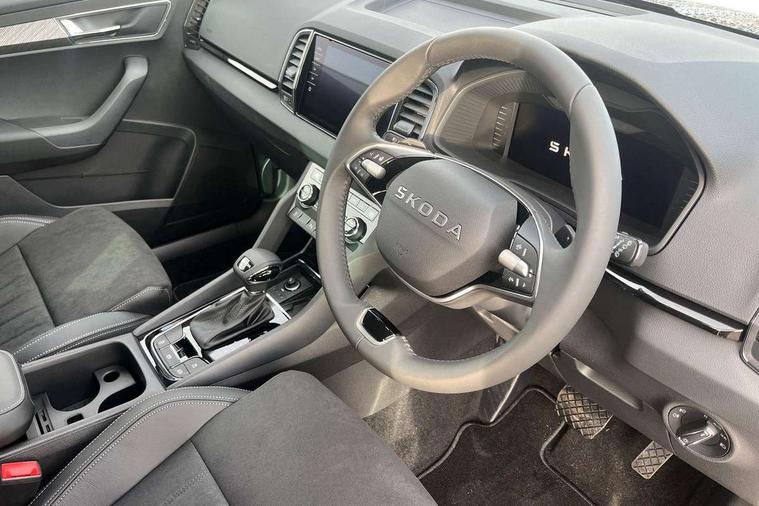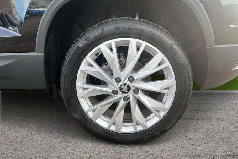 Advanced driver attention and drowsiness monitor, Drive Mode Selection including ECO function, Electro-mechanical PAS, Emergency services call system, Outside temperature gauge, Sensor for driver assistance systems, Service interval indicator, SmartLink wireless for Apple and wired for Android, Start/stop system with regenerative braking, Traffic sign recognition, USB C Port x 2 in front centre console, Virtual Cockpit - 10.25" digital display, Virtual pedal with electrically operated boot door, Wireless smartphone charging, DAB radio with Bluetooth, USB connection, Acoustic glass, Aero front windscreen wipers with intermittent function, Auto dimming rear view mirror with light and rain sensors, Black electric window control buttons, Body colour door mirrors and handles, Electric front and rear windows with child proof lock, Extended rear roof spoiler, Heated rear windscreen, LED daytime running lights, LED rear lights with high functionality welcome effect and dynamic indicators, Light assistant (coming/leaving home/tunnel light), Plastic scuff plates in door apertures, Privacy glass, Rear side wing doors, Rear window wiper with washer system and intermittent control, Safety reflectors on front doors, Third brake light, Unique dark chrome design logo on alloy wheels, 1.5 litre bottle holders in driver and front passenger door panels, 12V socket in boot, 12v socket in front centre armrest with storage compartment and rear air vents, 2 spoke leather heated multifunction steering wheel with DSG paddles, 2 x Tablet holder, 3 rear height adjustable headrests, 3 seat bench in 2nd row, 4 foldable roof handles with rear coat hooks, Black floor carpet, Cargo elements in boot, Chrome inner door handles, Decorative door sills with KAROQ badging, Foldable hooks in the boot, Front head restraints, Height adjustable front three point seats belts with tensioners, Height/reach adjust steering wheel, Ice scraper, Illuminated glovebox, Illuminated luggage compartment, Interior noise suppression, Isofix child seat preparation for front passenger seat, Isofix child seat preparation outer rear, Manual lumbar support for front seats, Pearl grey interior ceiling, Pen holder, Pollen filter, Rear boot cover, Rear package tray, Rear reading lights, Rubbish bin door, Safety vest holder, Single front passenger seat, Skoda lettering on steering wheel, Storage box in upper central dashboard closed, Sunvisors with illuminated vanity mirrors, Textile floor mats, Ticket holder, Columbus pack - Karoq, Design Pack - Karoq, Non Smokers pack, Parking pack - Karoq, Automatic door unlocking in case of crash, Automatic fuel cut off in case of crash, Driver airbag, Electronic parking brake with auto hold function, Emergency rear braking signal, ESC (incl. ABS+MSR+ASR+EDS+HBA+DSR+RBS+MKB), Front side airbags, Head airbags, Hill hold control, Knee airbags, Passenger airbag with switch-off function, Pedestrian monitor, Power operated child safety locks, Seatbelt reminder signalisation and pretensioner for all seats, Three point seatbelts rear, Two tone horn, Tyre pressure monitor, Alarm with interior monitoring, back up horn and tilt sensor with safe function, Electronic engine immobiliser, Keyless entry and start/stop, Remote central locking with 2 remote folding keys, Black centre console, Chrome framed air vents, Satin black dashboard, Anti-theft wheel bolts protection, Breakdown and tool kit,