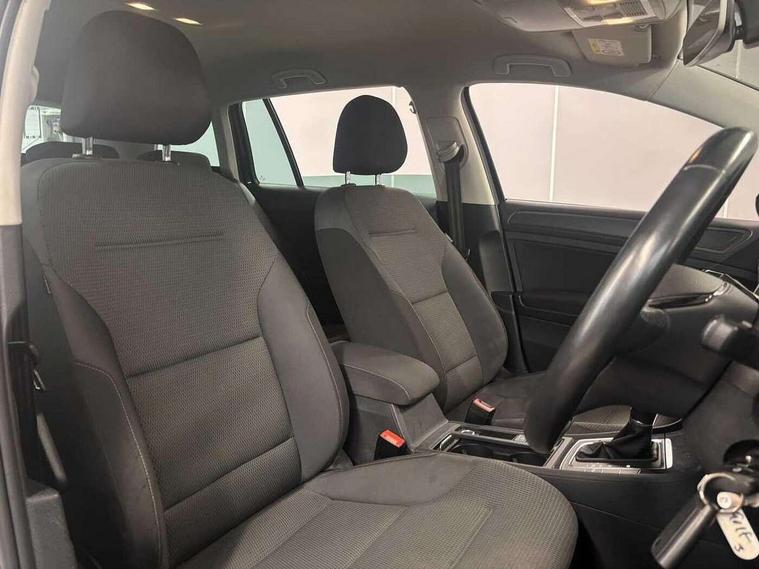 'Lights On' Reminder warning buzzer, ACC - Adaptive cruise control with front assist, forward collision warning, distance monitoring, city emergency brake and speed limiter, Bluetooth telephone and audio connection for compatible devices, Brake pad wear indicator warning light, Driver alert system, Driver profile selection, Driving Mode Selection with four preset modes - Eco, normal, sport or individual modes, Instrument cluster in white, Misfuelling protection device, Multifunction computer with visual gear change recommendation for fuel consumption, Power assisted speed sensitive electro-mechanical steering, Push tank flap, Speedo, rev counter, electronic odometer, trip, service interval display, exterior temperature and fuel gauge, Stop/start system, Warning buzzer and light for front seatbelts unfastened, Battery regeneration during braking, Diesel particulate filter, XDS electronic differential lock, Composition media system, DAB Digital radio receiver, Driver Personalisation profile selection, MP3/WMA compatability, Multi device interface (MDI) with USB connection, Personalisation 1.1 profile for media, Premium USB cable in choice of either Apple or Android smartphone compatibility, SD card slot, SMS Functionality, USB and SD card connectivity, Black front air intake and radiator grille with chrome insert, Black rear diffuser, Black roof rails, Body colour bumpers, Body colour door handles, Body colour door mirrors with integrated indicators, Dusk sensor + automatic driving lights, Electric front windows, Electric rear windows, Electrically adjustable and heated door mirrors, Fully galvanised body, Heated rear windscreen, Hidden exhaust pipe, High level 3rd brake light incorporating LED Technology, LED daytime running lights, LED front fog lights with static cornering light function, LED rear lights, Rear fog lamp, Rear tinted glass 65% light absorbing from B pillar backwards, Rear window aerial, Rear window wash/wipe with intermittent wipe, Reflectors in all doors, Tailgate with integrated rear roof spoiler, Windscreen wipers/ intermittent wipe + 4 position delay, 12V socket in luggage compartment, 3 rear headrests, 4 load lashing points in luggage compartment, 60/40 split folding rear seat backrest, Auto fold down lever in rear seat backrest, Bag hook in luggage compartment x 2, Cooled glovebox, Cupholder cover, Dust/pollen filter, Front and rear reading lights incorporating LED technology, Front centre armrest with storage compartment and two rear air vents, Front seat back storage pockets, Grab handles front x 2, rear x 2 with integrated coat hooks, Height and reach adjustable steering wheel, Illuminated vanity mirrors, Instrument lighting white adjustable panel illumination, Interior light delay, Isofix preparation for 2 rear child seats, Load through provision with rear centre armrest and cupholders x2, Luggage compartment lighting, Overhead storage box, Passenger underseat drawer, Pearl grey headlining, Storage box in luggage compartment, Storage compartment in roof console with cover, Storage compartments in centre console, Storage compartments in front doors, Storage compartments in rear doors, Stowable luggage compartment cover, Sun visors, Variable boot floor, height adjustable and removable, Convenience Pack - Golf, Light and Sight pack - Golf, Mirror pack - Golf, 3 rear three point seatbelts, Airbags - Driver's and front passenger's, curtain airbag, Driver's knee, front side impact and passenger's airbag deactivation switch, Anti-lock Braking System (ABS) with Hydraulic Brake Assist (HBA), Automatic post collision braking system, Child locks on rear doors, Driver/Passenger optimised head restraints, Electronic parking brake with auto hold, Electronic stability control (ESC) including Electronic differential lock (EDL) and ASR (Traction control) with deactivation via infotainment system, Front ventilated disc brakes and rear disc brakes, Pre crash preventive occupant protection, Three point height adjustable front seatbelts with tensioners, Tyre pressure loss indicator, Alarm with interior protection and deactivation via infotainment system, Electronic engine immobiliser, Remote central locking with 2 remote folding keys, Brushed dark silver decorative inserts in dash and door panels, Chrome plated air vent surround, Chrome plated electric mirror adjustment light switch surround, Polar night black centre console, Steel space saver spare wheel,