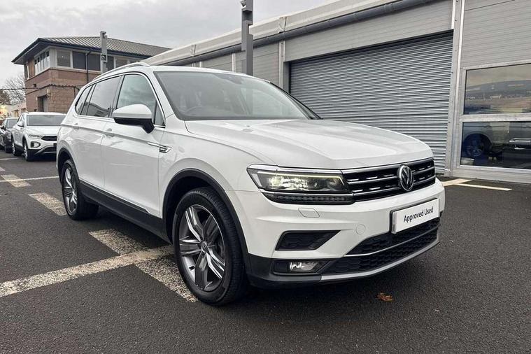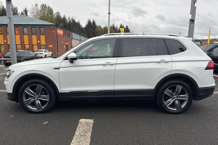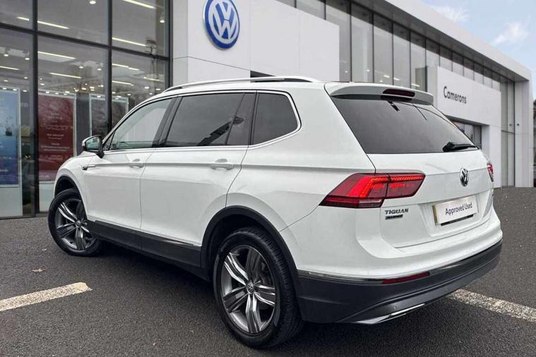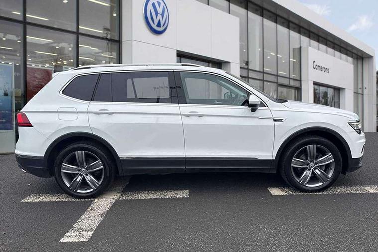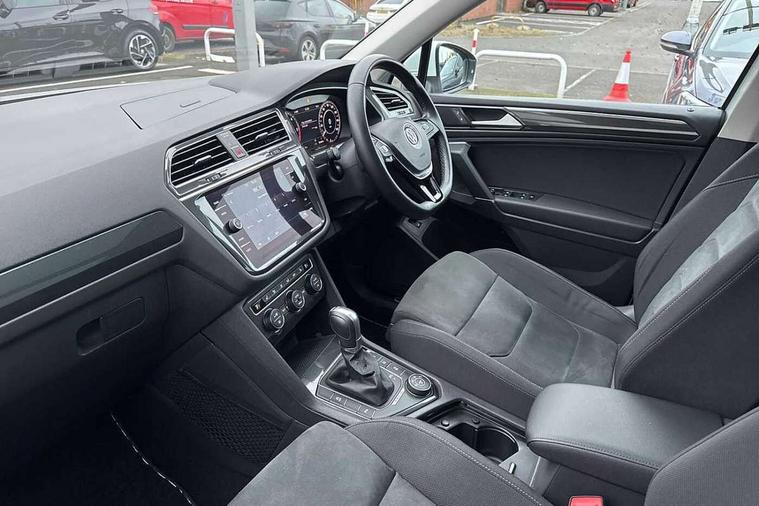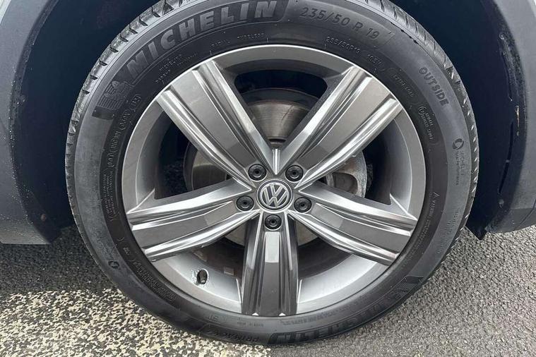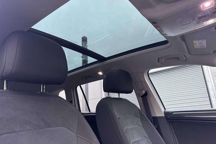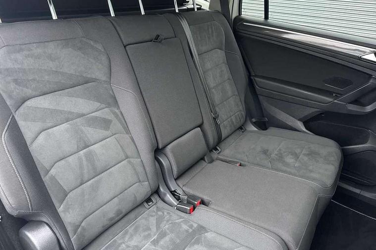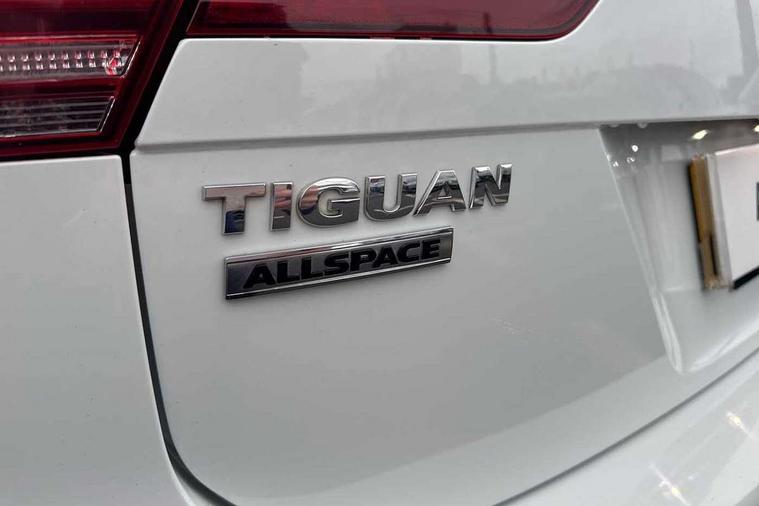 Active information display, Adaptive cruise control, App-Connect, Bluetooth phone integration system, Drive mode selector, Driver profile selection, Fatigue detection system, Front and rear parking sensors, Fully electric tailgate + keyless entry and start, Instrument cluster, Lane assist, Low washer fluid warning light, Outside temperature display, Service interval indicator, Speed limiter, Warning lights, Diesel particulate filter, XDS electronic differential lock, 2x USB sockets in front, Aux-in socket, DAB Digital radio, SD card slot, 3D effect LED rear lights, Auto dimming interior mirror, Automatic activation of hazard warning lights, Black door protector with chrome inserts, Body colour door handles, Body colour door mirrors, Body coloured bumpers, Chrome side body trim, Chrome side window surrounds, Chrome trimmed radiator grille, Coming/leaving home lighting function, Dusk sensor + auto driving lights, Electric folding door mirrors, Electric heated + adjustable door mirrors, Electric panoramic sunroof with sunblind, Front and rear electric windows, Heated rear window, LED headlights with dynamic light assist daytime running lights and cornering front fog lights, Rain sensor windscreen wipers, Rear tinted windows from B pillar back, Rear windscreen washer and wiper with interval delay, Silver rear diffuser trim, Silver roof rails, Silver under body guard, Trailer Stability Programme, Windscreen wipers/ intermittent wipe + 4 position delay, 12V Accessory socket in centre console, 12V socket in luggage compartment, 2 head restraints in 3rd row, 2 individual 3rd row seats, 3 head restraints in 2nd row, 3 zone climate control, 4 load lashing points, 40:20:40 split folding rear seats, Bag hook in luggage compartment, Driver + front passenger lumbar support, Foldable passenger seatback, Front + rear carpet mats, Front centre armrest with 12v socket, Front centre armrest with storage + rear 2 air vents + cupholders, Front seatback folding tables, Front sports seats, Height/reach adjust steering wheel, Illuminated driver/passenger vanity mirrors, Illuminated scuff plates, Interior light with delay, Isofix Preparation 2 Rear child seats, Leather gear knob, Load through provision with 2 cupholders when folded, Lockable cooled glovebox, Luggage compartment lighting, Luggage compartment side storage, Map pockets on front seats, Passenger seat height adjuster, Passenger underseat drawer, Rear cupholders, Removable luggage cover, Sliding/reclining rear seats, Storage compartment in driver's door, Storage compartment in passenger's door, Storage tray on dashboard, Sunglasses storage, Variable boot floor, Ambient lighting pack - Tiguan, 3 point seatbelts on all seats, ABS+EBD+Brake assist, Active bonnet, Active pedestrian safety system, Curtain airbags, Driver/Front Passenger airbags, Driver/Passenger whiplash optimised head restraints, Drivers knee airbag, DTC - Drag torque control, Electronic parking brake with auto hold, ESP with EDL + ASR, First aid kit, Front side airbags, Head airbag system, Height adjustable front 3 point seatbelts + pretensioners, Hill hold control, Passenger airbag deactivate switch, Passenger knee airbag, Pre crash system, Rear side airbags, Seatbelt warning lamp and buzzer, Two tone horn, Warning triangle, Alarm with interior protection, Electronic engine immobiliser, Remote central locking with 2 remote folding keys, Chrome door trim inserts, Piano black interior trim, Steel space saver spare wheel,