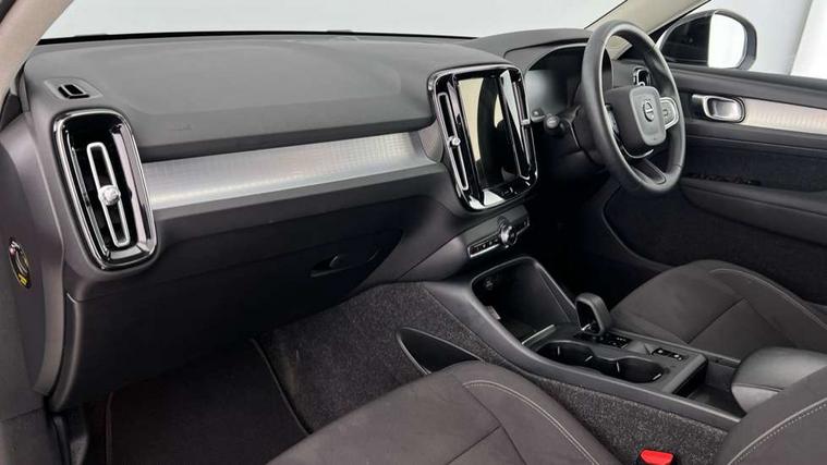 12.3" Active TFT crystal driver's instrument display, 9" centre console portrait touch screen, Adjustable steering wheel force, Bluetooth hands free telephone kit, Drive mode selector, E-call, Lane keep assist with driver alert control, Oncoming Lane Mitigation, Power operated tailgate, Sensus navigation with European mapping and traffic information, Speed limiter, Speed sensitive steering, Voice activated control for key functions, Volvo on call, 7m 10amp charge cable with 3 pin plug and 7m 1 phase 16amp type 2/mode 3 charge cable, Dynamic chassis, Electric front axle drive, Recharging port located in nearside front wing, DAB Digital radio, Low speed exterior sound speaker, Steering wheel mounted remote controls, Adaptive brake lights with high level LED brake lights, Auto dimming interior mirror, Automatic headlamp levelling, Chrome window surround, Colour coordinated auto folding and heated power door mirrors, Front aluminium tread plates, Front and rear electric windows, High gloss black front grille with chrome inserts, High gloss black sensus surround deco, High Gloss silver front and rear skid plate, Home safe and approach lighting, Integrated roof rails in silver, LED Headlights + Active high beam incorporating daytime running lights, Rain sensor with automatic windscreen wiper activation, Rear side wing doors, Rear wiper, Roof antenna, Roof spoiler, Visible VIN plate, 12V socket in front tunnel console and luggage compartment, 2 zone electronic climate control and rear air vent, 3 seat bench in 2nd row, 3 Spoke tailored steering wheel with chrome trim, 60/40 versatile split folding rear seat, A-pillar parking ticket holder, Bright metal luggage threshold, Centre console cupholders and storage, Floor mats, Front footwell illumination, Front headrests, Front reading light and theatre lighting, Glovebox bag hook, Height/reach adjustable steering column, Height/tilt adjustable driver's seat, High gloss centre tunnel deco, Illuminated glovebox, Illuminated luggage compartment, Illuminated vanity mirrors, Isofix attachments on outer rear seats, Leather faced upholstery, Load protection net, Multi directional lumbar support, Orrefors Crystal gear lever knob, Power driver seat with memory + exterior mirrors memory, Rear armrest / integral cup holders / storage tray, Rear coat hook, Single front passenger seat, Underfloor cargo storage, Vanity mirror with ticket holder, Park assist pack - XC40, 3x3 point rear seatbelts, City safety includes pedestrian, cyclist and large animal detection and front collision warning with full auto brake, Drivers knee airbag, Dual stage driver/passenger airbags, Electronic parking brake with auto hold, First aid kit, Front and outer rear seatbelt reminder and pretensioners, Front seats SIPS airbags, Hill descent control, Hill start assist, Inflatable curtain, Passenger airbag cut-off device, Road sign information display, Run off Road Mitigation, Run off Road Protection, SIPS (Side Impact Protection System), Slippery road and hazard light alert, Stability and Traction Control with Spin control, Engine Drag Control and Corner Traction Control, Tyre pressure monitoring system, Vehicle deceleration control with Anti-lock Brake System, Electronic Brake Distribution and Emergency Brake Assist, Warning triangle, WHIPS whiplash protection system - front, Anti-theft alarm including immobiliser/volume sensor + level sensor, Care key with user defined top speed, Key integrated remote control central locking + fuel flap with deadlocking system and auto open/close power windows, Locking wheel nuts, Private locking for tailgate, Driftwood inlays,