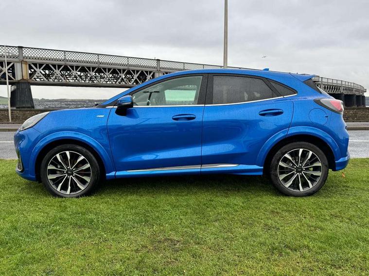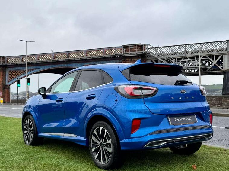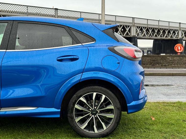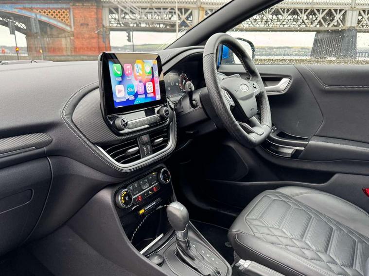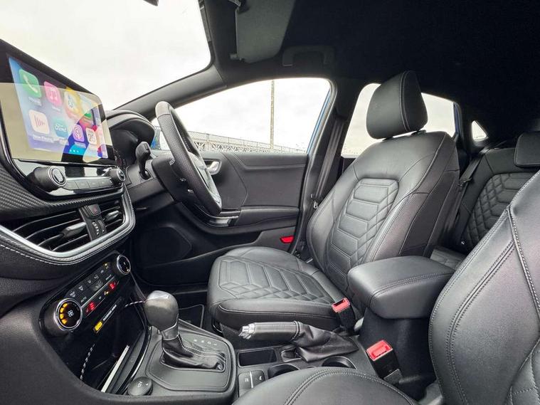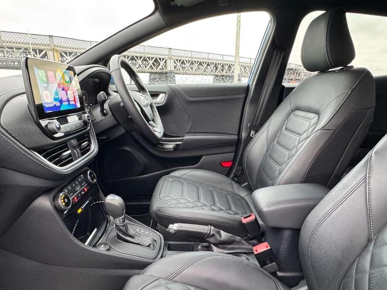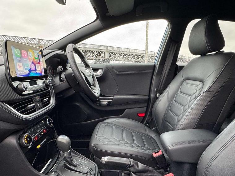 Driver impairment monitor, Emergency call service, Ford easy fuel, Front and rear parking sensors, Full digital 12.3" instrument cluster, Lane keeping aid with lane departure warning, Power assist steering, Selectable drive modes(Normal, sport, Eco, trail, slippery), Speed sign recognition, Sport suspension, Automatic headlights with auto high beam, Automatic rain sensing wipers, Bodyside chrome styling, Fixed LED signature headlamps, Front fog lamps, Gloss black with chrome elements on front and rear bumpers, High chrome waistline, LED daytime running lights, LED rear lamps, Power foldable heated door mirrors with puddle lamps and puma logo protection, Privacy glass to side rear windows and tailgate glass, Quickclear heated windscreen, Rear side wing doors, Rear wiper, Third brake light, Vignale body styling kit with unique grille and large body colour rear spoiler, 3 seat bench in 2nd row, Centre console with armrest and stowage, Ford megabox extended bootspace, Front and rear floor mats, Front and rear head restraints, Manual 4 way driver seat adjust with lumbar adjustment and massage function, Manual 4 way passenger seat adjust with lumbar adjustment and massage function, Premium sensico leather upholstery with metal grey stitching, Premium sensico perforated flat bottomed steering with metal grey stitching, Premium sensico wrapped instrument cluster, Single front passenger seat, Wireless charging pad with electronic air temperature control (EATC), B&O Premium Audio system + Ford SYNC 3 navigation pack - Puma, Winter pack - Puma, 3 rear seatbelts, Child safety lock, Electronic stability control (ESC) and hill start assist, Pedestrian/cyclist detection & post-collision braking, Pre collision assist system, Tyre pressure monitoring system (TPMS), Keyless entry and power start button, Thatcham alarm, Carbon look interior deco spears,