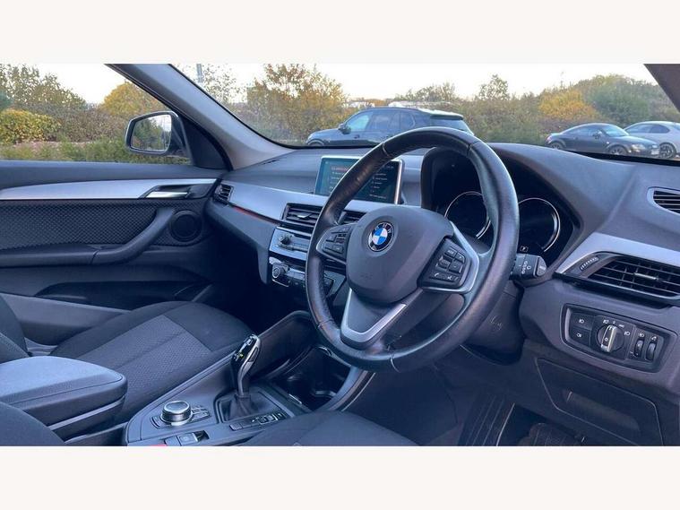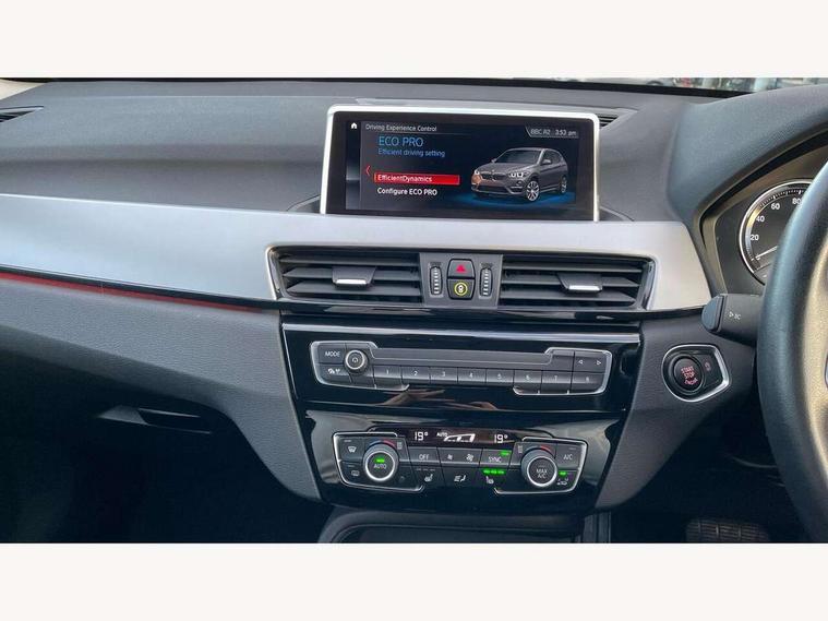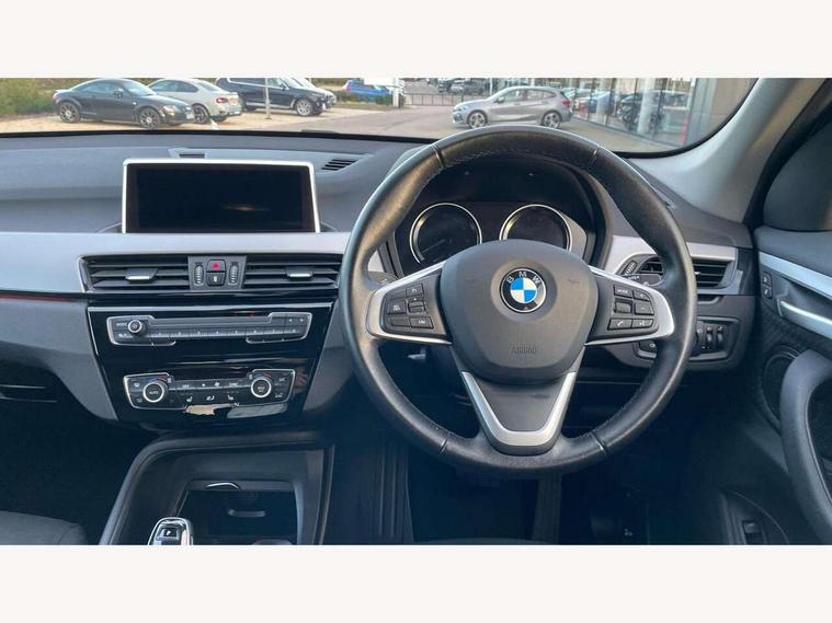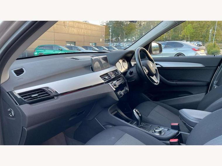 Active Guard incl speed limiting and lane departure functions with auto steering, and front collision warning with brake intervention, Ambient temperature display, Apple CarPlay, Arrow pointers, north up, direction of travel and perspective map displays, Attentiveness assist, Automatic tailgate opening, BMW ConnectedDrive, BMW Online services, BMW remote services, BMW Teleservices, Brake pad wear indicator in front and rear, Characteristic map controlled oil pump system, Cruise control with brake assist, Front axle single joint with specific axle kinematics to minimise drive influences on steering + provide increased rigidity agile driving behaviour, Front/rear park distance control (PDC), Instrument cluster with Black optic display featuring superimposed dials and 5.7" colour display, Instrument cluster with speedometer with miles per hour read out, tachometer and fuel gauge, Integrated hard drive with map data updates via USB interface, Lights on warning by audio warning signal when ignition is switched off, On board computer, Operation by iDrive with direct selection buttons and 8 programmable buttons, Optimum shift indicator, Outside temperature gauge, Park assist system, Personal Profile - automatic lock when driving away selectable, Real time traffic information, Rigidly mounted rear subframe - Multi link construction with separate spring / damper configuration and excellent driving characteristics, Service interval indicator, Servotronic PAS, Tyre puncture warning system, 12V compressor with integrated sealant injection bottle and hose, Aluminium lightweight construction including crankcase, Anti-roll bars, Balancer shaft, Double VANOS, Drive performance control with ECO PRO comfort + sport mode, High precision injection, Performance Control, Seven speed dual clutch automatic transmission (DCT), Standard suspension, Stop/start function, Turbocharger with Valvetronic, Twin tube gas filled shock absorbers with degressive characteristic curve, BMW professional radio includes amplifier power 100w, Two mide range speakers in door trims and two woofers as central bass speaker under front seats, DAB Digital radio, Adjustable headlights, Aero curtain, Automatically dimming rear view mirror, Black roof rails, BMW Icon design LED daytime driving lights, Body colour bumpers, Body colour door handles, Body colour door mirrors, Direction indicator side lights integrated exterior mirrors, Dynamic brake lights, Electric windows - front and rear, with open/close fingertip control, anti-trap facility and comfort closing, Electrically adjustable door mirrors with aspheric on driver side, convex on passenger side with integrated indicators, Follow me home headlights, Front air guide finished in black silver, Front and rear bumper system, Green tinted heat protection glazing glass, Headlight beam throw control, Heated door mirrors, Heated windscreen washer jets, High level third brake light, Kidney grille with 14 chrome black vertical bars, LED direction indicator lights in headlight eyebrow, LED front fog lights, Lightweight engineering, Model designation, Rain sensor including auto headlights activation, Rear fog lights, Rear window aerial, Rear window wash/wipe, Reversing light in rear light cluster, Roof mouldings in matt black, Shark fin antenna, Sill cover finished matt black, Single chrome exhaust tailpipe, Two eye face design on light, Visible VIN plate, Welcome lighting, 12v power point in centre console, 2 cup holders in front, 3 rear headrests, 3 spoke sport leather steering wheel, 40:20:40 split folding rear bench seat, Black door sill finishers with BMW designation, Boot light, Centre armrest in 20 degree part rear seat backrest, Child seat ISOFIX attachment for two outer rear seats and front passenger seat with anchorage points, Conditioned based service, Driver/front passenger seat backrest back with luggage net, Dual zone automatic air conditioning, Four grab handles integrated in roof linings, Front and rear side armrests integrated into door trim, Front centre armrest/sliding cover, Front centre interior light over interior mirror and rear centre automatic interior light when door is opened/ignition switched off or via remote key, Front standard seats, Front/rear adjustable head restraints, Illuminated glovebox, Leather gearknob/gaiter/handbrake grip, Luggage area underfloor compartment, Luggage compartment access via recessed handle below tailgate, Luggage compartment lighting, Manually adjustment steering wheel column, Multifunction steering wheel, Rear coded belt buckles, Standing free front adjustable armrest and fixed in different positions, Steering wheel gearshift paddles, Velour floor carpets, Extended storage package - X1, ABS/EBD, Audio/visual collision warning system, Automatic Stability Control (ASC), Battery safety cut-off, BMW emergency call, Brake drying, Brake energy regeneration, Braking readiness, Collision mitigation braking system, Cornering brake control (CBC), Crash Sensor - activates hazard/interior lighting + unlocks doors, Driver/Front Passenger airbags, Driver/front passenger side airbags, Dynamic brake control, Dynamic stability control + (DSC+), Dynamic Traction Control - DTC, Electronic differential lock control (EDLC), Electronic parking brake, Front and rear head airbags, Front passenger airbag deactivation, Front seatbelt force limiters, Front ventilated disc brakes, Hill start assist, Pyrotechnically pre-tensioned front seatbelts, Rear disc brakes, Rear door child safety locks, Seatbelt security check for driver and front passenger, Side impact protection, Three point seat belts in all seats, Twin horns, Tyre pressure monitor, Warning triangle and first aid kit, Central locking switch for all doors, fuel filler cap and luggage compartment, Check control system for monitoring of lights and door/luggage compartment open warning, Engine immobiliser, Locking wheel bolts, Remote control Thatcham category 1 alarm, Remote control with integrated two key, St