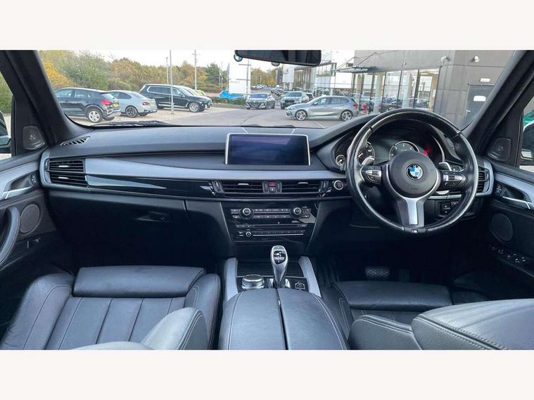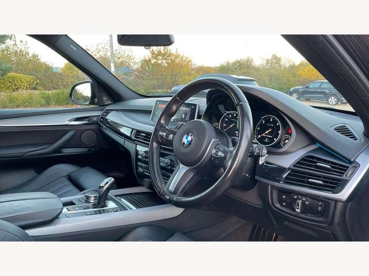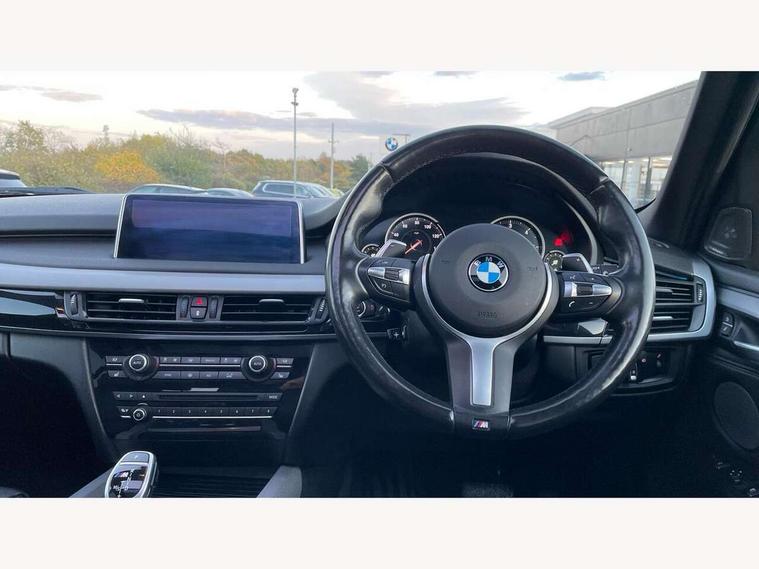 20GB Hard drive, 6.5" colour display screen, BMW online + Apps interface, BMW remote services, BMW Teleservices, Brake force display, Check control system, iDrive controller and display with 10.2" colour display monitor, Lights on warning, M Servotronic power steering, On board computer, Outside temperature gauge, Park distance control, Professional multimedia navigation system, Real time traffic information, Remote tailgate release, Service interval indicator, Stop/start button, Voice control system, Adaptive M suspension, Diesel particulate filter, Sport automatic transmission, Auxiliary point for auxiliary devices, BMW professional twin tuner radio with single CD player and MP3 CD playback facility, DAB Digital radio, Auto dimming rear view mirror, Auto upper tailgate release, Body colour bumpers, Body colour door handles, Clear indicator lenses, Door mirror integrated indicators, Double kidney grille with chrome surround and titanium slats, Downlights in exterior door handles, Electric folding/heated door mirrors + electrochromic on drivers side, Electric front/rear windows with anti-trap, Electric headlight adjustment, Ferric grey mirror caps, Follow me home headlights, Green tinted glass, Headlight washer jets, Heat insulated glass, Heated washer nozzles, Individual door sill finishers, Intermittent rear wash/wipe, M aerodynamic body kit, Rain sensor with auto light activation system, Stainless steel exhaust pipes, Two piece tailgate, 12V accessory power point in centre console, 12V socket in luggage compartment, 2 individual folding 3rd row seats, 2 x 12V socket in rear centre console, 40:20:40 split folding rear seats, Ambient interior lighting, Anthracite Velour floor mats, Boot lashing points, Electric front seats + driver memory, Front and rear cupholders, Front armrest with storage bin, Front/rear courtesy lights with soft on/off dimming, Front/rear reading lights, Gearshift paddles on steering wheel, Heated front seats, Height adj rear head restraints, Illuminated glovebox with lock, Isofix child seat preparation, LED footwell lights, Luggage compartment cover, M leather steering wheel, Reach + rake adjustable steering column, Securing rings in luggage compartment, Storage bins on all doors, Sunvisors with illuminated vanity mirrors, Tilt/height adjustable front head restraints, Toolkit located in luggage compartment, Extended storage pack - X5, 3 rear 3 point seatbelts, ABS, ADB - Automatic Differential Brake, Automatic Stability Control (ASC), BMW emergency call, Child locks on rear doors, Cornering brake control (CBC), Crash Sensor - activates hazard/interior lighting + unlocks doors, Driver/Front Passenger airbags, DSC - Dynamic Stability Control, Dynamic brake control, Dynamic Traction Control - DTC, Electronic brake force distribution, Electronic parking brake, Front and rear head airbags, Front passenger airbag deactivation, Front passenger seat occupancy sensor, Front side airbags, Height adjustable front seatbelts, Hill start assist, Pyrotechnically pre-tensioned front seatbelts, Tyre pressure monitor, Warning triangle and first aid kit, Locking wheel nuts, Remote central locking, Thatcham cat 1 remote alarm/immobiliser, Run flat tyres,
