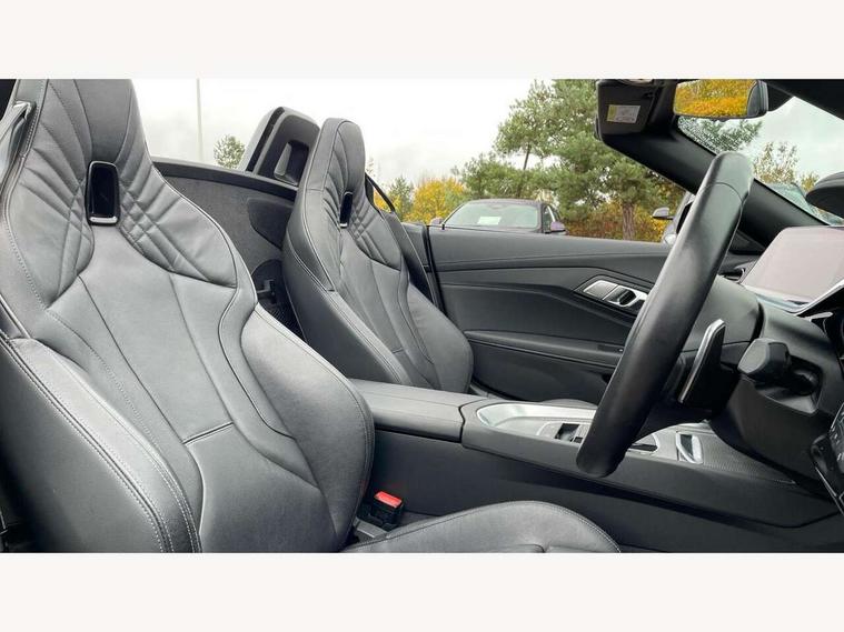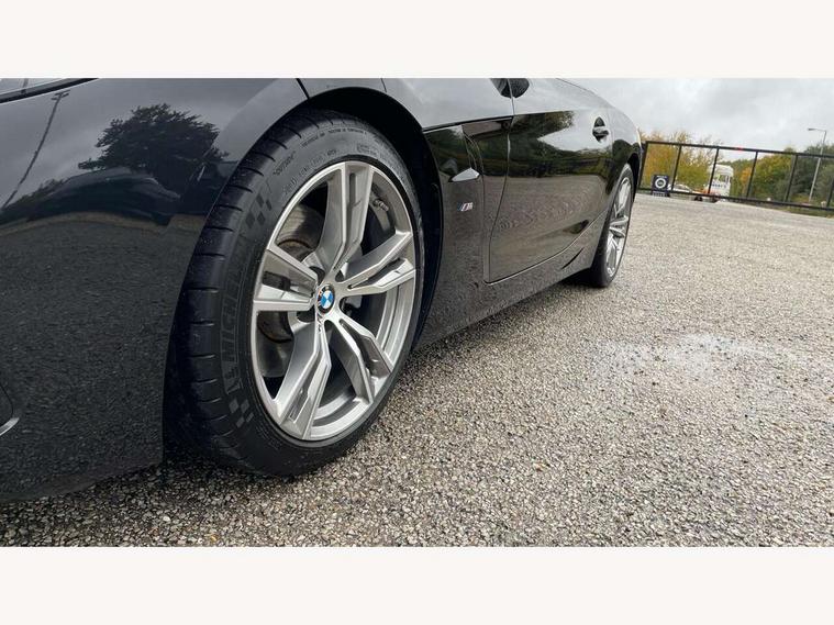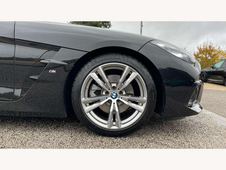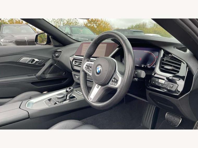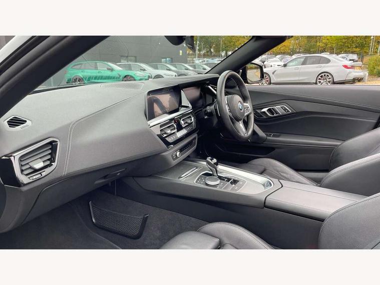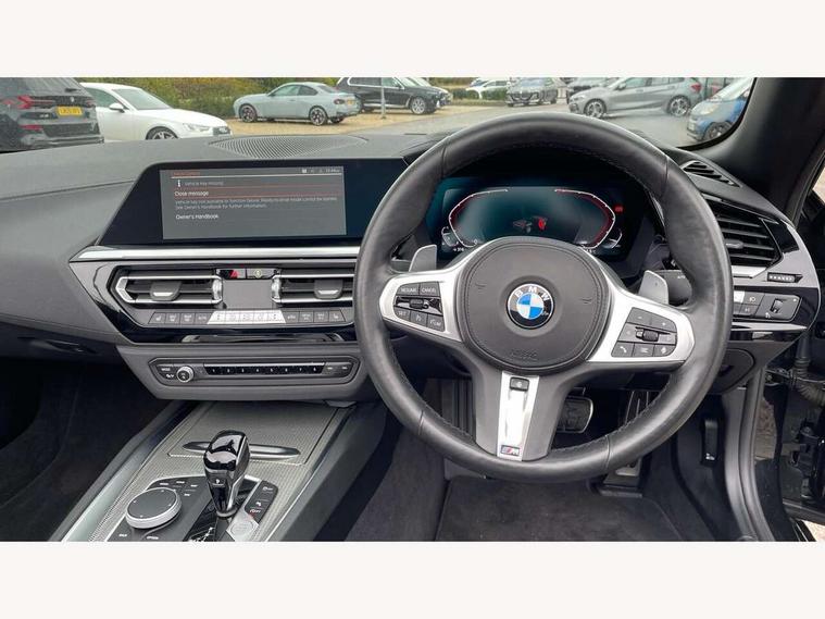 Active guard plus incl speed limit assist, lane departure warning with steering impulse and front collision warning with brake intervention, BMW ConnectedDrive online services, BMW Live Cockpit Professional with nav function/12.3" high resolution instrument +10.25" control display/Intelligent Voice Assist/2 USB/WiFi interface, BMW Teleservices, Condition based service, Electric power steering, Fuel gauge, iDrive touch controller with turn and press function, Instrument cluster, Language version English, Oil sensor for level and grade, warning by check control system, Oil temperature gauge, Optimum shift indicator, Pull away assistant, Run flat indicator, Speed limiter, Speedometer with mph readout, Tachometer, Variable sport steering, Double joint spring, Double VANOS, Drive performance control with ECO PRO comfort + sport mode, Eight speed steptronic sport transmission, with gearshift paddles, Electronic differential lock, Fuel tank breather system, High precision injection, M sport suspension, 2x USB Type C ports in front centre console for charging and data transfer, 2x USB Type C ports in rear centre console for charging, DAB tuner, USB connection, Automatic headlight beam throw control with load dependent regulating reaction, dynamic compensation of braking dive and acceleration squat, Door sill finishers with M designation, Door sill strips, Dynamic braking lights comprising activated hazard warning flashers, Electric folding door mirrors, Electric heated rear window, Exhaust tailpipe - split left and right, Exterior mirror housing finished in body colour, Fingertip control / anti-trap function on electric window, Follow me home headlight function, Front and rear bumper system with replaceable deformation elements, Green tinted heat protection glazing, Heated windscreen washer jets, High gloss black exterior trim, Interior rear view electrochromatic mirror with automatic anti dazzle function, Kidney grille in mesh design, LED 3rd brake light, LED daytime driving lights, LED Indicators, LED rear lights, Lightweight engineering, M aerodynamic body kit, M Sport exterior styling, Matt black window recess finisher, Model logo, Rain sensor, Rear boot, Reversing light, Tailgate release handle, Two stage brake force display, Visible VIN plate, Welcome lighting, Wind deflector, Windscreen wipers with adjustable interval, 12V power point in luggage area, 12V power socket in front storage compartment, 2 cup holders in front centre console, Activation of interior lighting, Additional storage compartment - 4 lashing eyes, strap and storage net, Ambient lighting, Battery in luggage compartment, BMW ID, Child seat ISOFIX attachments for passenger seat, Driver and front passenger heated seats, Front and rear armrests integrated in door trim + centre console includes storage compartment and rear centre armrest includes 2 cupholders, Front and rear velour floor mats, Front headrests, Height adjustable mechanically and infinitely variable steering column, Illuminated glovebox, Luggage compartment light, M sport leather steering wheel, M Sport seats for driver and passenger, Microfilter and active carbon filter, Multifunction steering wheel, Single front passenger seat, Sunvisors with vanity mirrors and ticket pocket, Through load system, Two zone automatic air conditioning, Vernasca leather upholstery, Connected package professional - Z4, 3 point front seat belts, Airbags - Front driver and passenger, front and side impact protection, Anti lock braking system (ABS) with brake assist, Automatic Stability Control (ASC), BMW emergency call, Brake energy regeneration, Braking readiness, Cornering brake control (CBC), Crash sensor activating central locking release, hazard warning lights, fuel cut off, interior lighting, safety battery terminal clamp and airbags, Curtain airbags, Deactivation of fuel pump in the event of a crash, Dry braking, Dynamic brake control, Dynamic stability control + (DSC+), Dynamic Traction Control - DTC, Electromechanical parking brake with automatic drive away release and auto hold function, Front and rear brake discs with interior ventilation, Head airbags, Plastic fuel tank, Pyrotechnic seat belt tensioners, Roll over protection, Seat belt force limiter, Seat belt stopper, Seat occupancy protection, Side airbags for driver and passenger, Two tone horn, Tyre pressure monitoring with three level warning strategy, Warning triangle, Centre lock switch, Closing system with central locking, Electronic vehicle immobiliser, Start/stop button with Comfort Go keyless engine start and auto Start/stop deactivation button, Thatcham cat 1 remote alarm, Sensatec dashboard, 18" Double spoke alloy wheels in bicolour ferric grey - style 798M, Reduced rolling resistance tyres, Tool kit, Tyre repair kit,