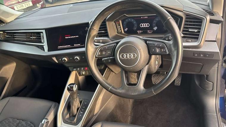 10.25" Digital instrument cluster display classis style instrument dials + speed, odometer, time, outside temperature, telephone menu + fuel level warning, Audi drive select - power steering assistance + engine + gear shift 3 preset modes (auto, dynamic, efficiency and an Individual mode), Audi smartphone interface with connect compatible smartphone via USB directly MMI display + Nav, music, third party apps controlled via MMI controller, Automatic start/stop system, Bluetooth interface, Cruise control, Driver's information system, Electromechanical power steering, Emergency e-call, Lane departure warning system, Rear parking sensor, Service interval indicator, Speed limiter, Voice control system, Washer fluid level indicator, Dynamic suspension, 2 x USB type C connection points, 6 passive loudspeakers, DAB Digital radio, MMI radio plus with 10.1" colour MMI display screen and MMI touch, Auto dimming rear view mirror, Body coloured bumpers, Body coloured door mirrors, Electric front and rear windows, Electrically adjustable, heated, folding door mirrors with integrated LED side indicator, Front side air inlets in grained matt black and C frame in anthracite black, Heat insulating glass windscreen and side windows, Heated rear windscreen, High level LED brake light, LED headlights with LED rear lights + dynamic rear indicators + headlight adjustment and high beam, turning light + LED daytime running lights, Radiator grille and rear diffuser in matt anthracite black, Radiator protective grille frame in matt aluminium silver, Rain and light sensors, Rear fog lights, Rear side wing doors, Rear wiper, Side front spoiler lips in grained matt black, 12V socket in centre console with two cup holders, 3 rear seats with headrests, 3 seat bench in 2nd row, 3 spoke leather multifunction plus steering wheel, 40:60 Split folding rear seat or folded fully, Black front and rear floor mats, Door sill trims with aluminium inlay, Driver and passenger seat with manual height adjust with forward and backwards adjustment, Front head restraints, Front passenger seat, Grey cloth headlining, Height and reach adjustable steering wheel, ISOFIX child seat mounting for front passenger and outer rear seats including top tether attachment point of outer rear seats, Leather gear knob with aluminium trim, Leatherette handbrake grip, Luggage compartment light with front and rear reading lights, Manual air conditioning, Manually adjustable lumbar support in front seats, Novum cloth upholstery with front sport seats, Luggage compartment pack - A1, 3x3 point rear seatbelts, Audi pre-sense front with pedestrain and cyclist recognition, Brake assist function, Driver and front passenger airbag with front side and head airbags, Electronic Stability Control including ABS, EBD, ASR and EDL, Front passenger airbag deactivation switch, Hill hold assist, Manual rear child locks, Seatbelt height adjustment for front seats, Seatbelt monitoring, Tyre pressure warning light, Warning triangle and first aid kit, Anti theft alarm, Anti theft wheel bolts and loose wheel warning, Immobiliser, Remote central locking with 2 foldaway keys, Aluminium trim for control switches, air vents and digital instrument cluster, Black dashboard, Silver grey accent areas including air vents, door handle recesses and centre console in diamond paint finish, Slate grey inlays polygon structure in fine paint finish,
