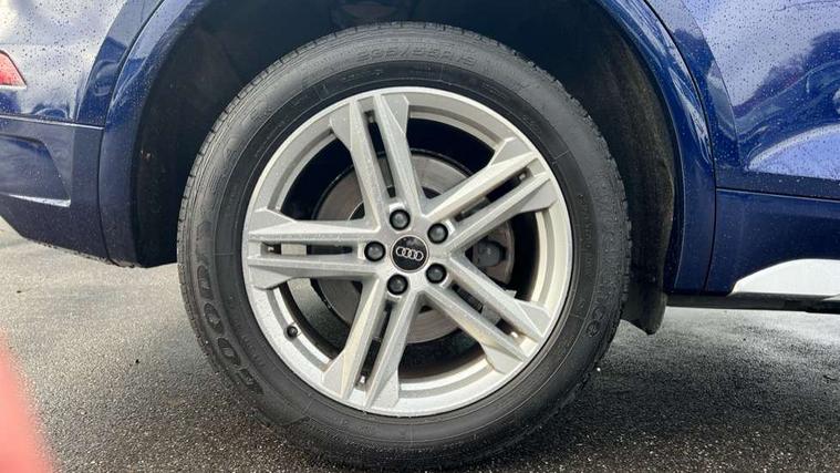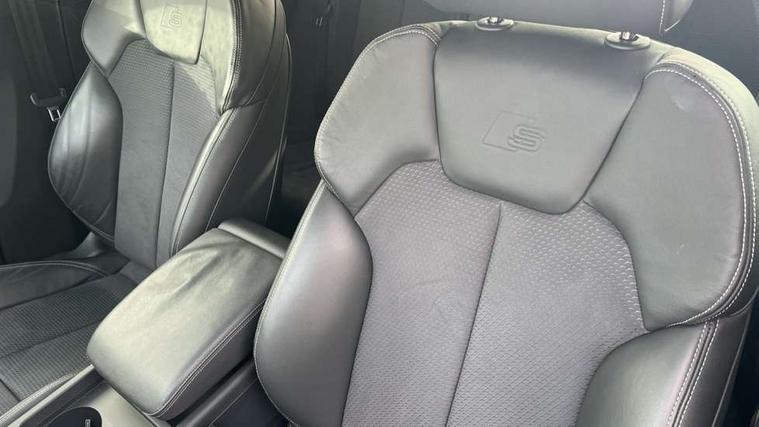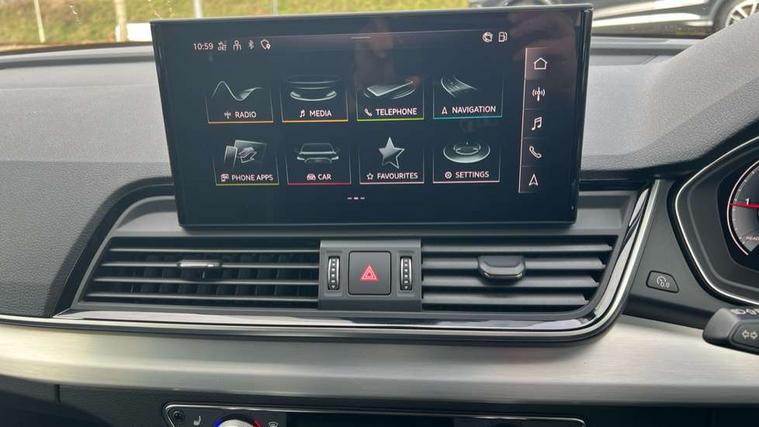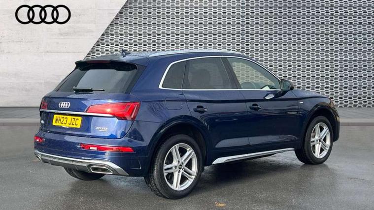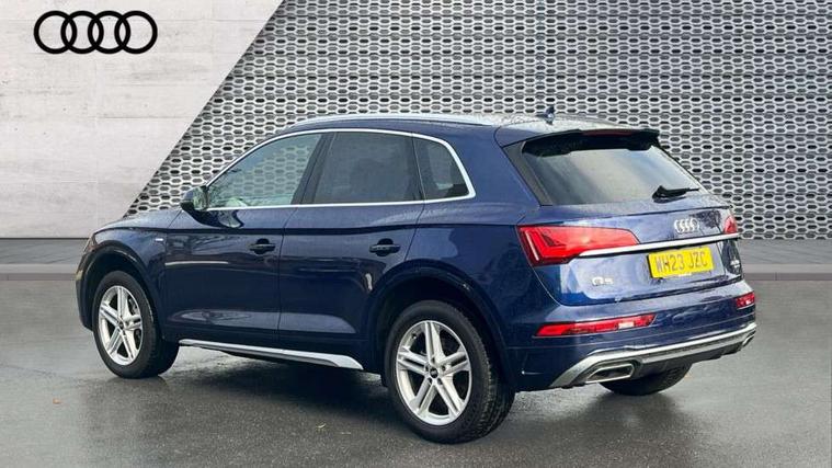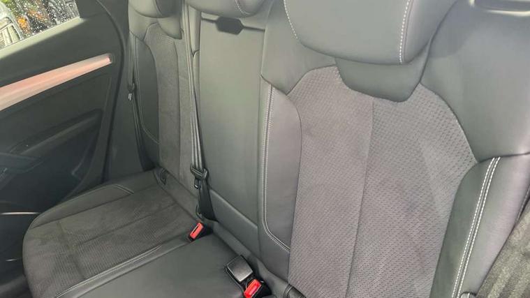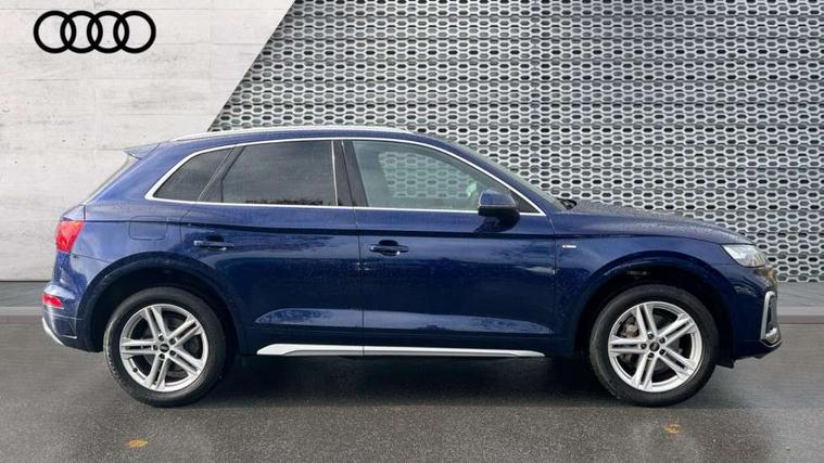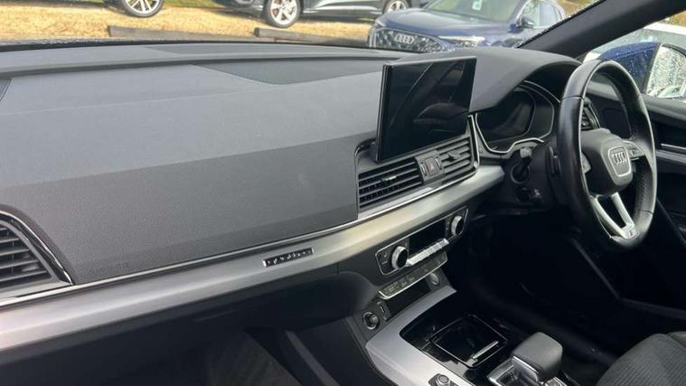 Acoustic front and rear parking sensor, Audi connect safety and service (e-call), Audi drive select, Audi virtual cockpit plus with 12.3" screen and three different layout designs, Audi wireless smartphone interface, Automatic start-stop system with coasting functionality and efficiency programme, Bluetooth interface, Camera based traffic sign recognition, Electro - mechanical power assisted steering, Lane departure warning, MMI navigation plus with 10.1" touch screen, Power tailgate, Reversing camera, Service interval indicator, Voice control system with Audi hotword activation "Hey Audi", Diesel particulate filter, Quattro on demand, S line sports suspension, 2 x USB charging port with aux input socket, 8 loudspeakers, DAB Digital radio, 3rd brake light, Acoustic windscreen, Aluminium roof rails, Auto dimming door mirrors, Auto dimming frameless rear view mirror, Automatic headlight adjustment, Automatic headlights and windscreen wipers, Body colour bumpers, Body colour door mirrors, Body colour rear diffuser with matt aluminium silver surrounds, Body colour underbody protection, Chrome plated exhaust trims, Daytime running lights, Door sills in Selenite silver, Electric adjustable/heated/folding door mirrors, Front air inlet surrounds in aluminium, Front and rear electric windows, Front radiator grille in honeycomb design, LED headlights and LED tail lights, Loading edge protection in stainless steel, Lower bumpers painted in contrast Manhattan grey, Rear chrome trim strip below lights, Rear privacy glass and rear side windows, Rear side wing doors, Rear wiper, Roof bars, S Line badges on the front wing panels, S Line front and rear bumpers, S Line rear spoiler, S Line side skirts, 3 rear headrests, 3 spoke leather multifunction steering wheel with S badging perforated leather grips, Black cloth headlining, Comfort front centre armrest, Contrast stitching on seats, steering wheel and gear lever gaiter, Deluxe 3 zone electronic climate control, Front head restraints, Front sport seats with S embossed logo, Front/rear floor mats, Gear lever in black leather, Heated front seats, Height/reach adjustable steering column, Illuminated door sill trims with S logo, Luggage compartment cover, Manual seat adjustment with 4-way electric lumbar support, Single front passenger seat, Stainless steel pedals, Sunvisors with vanity mirrors, High gloss pack - Q5, LED interior light pack - Q5, 3 point seatbelts on all seats, 6 airbags - Driver, front passenger, curtain and side airbags, Attention and drowsiness assist, Electrically operated child locks on rear doors, Electromechanical parking brake, Electronic stabilisation control including ABS, ASR and EDL, First aid kit with warning triangle and vests, Front passenger airbag deactivation, Hill descent control, Hill hold assist, ISOFIX child seat mounting for front passenger seat and ISOFIX child seat mounting with Top Tether for outer rear seats, Multi collision brake assist, Pop-up bonnet for pedestrian protection, Pre sense city, Seatbelt monitoring, Tyre pressure warning, Anti theft alarm, Anti-theft wheel bolts, Remote central locking, Remote control key with SAFELOCK and keyless go, Air vents inserts and centre console in gloss black, Matt brushed aluminium inlays, Tool kit, Tyre repair kit,