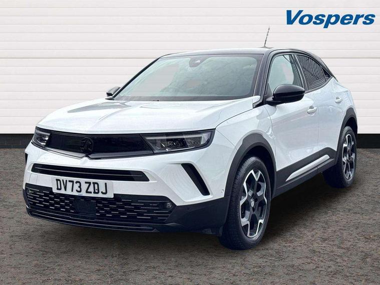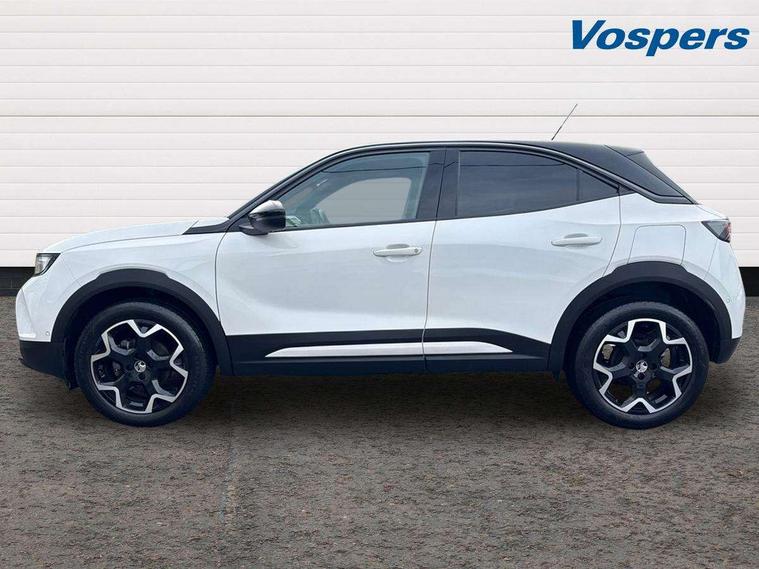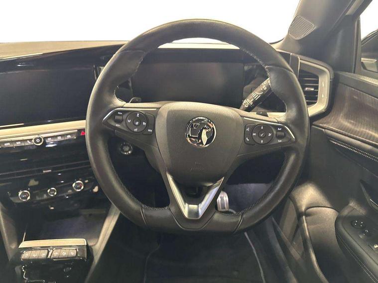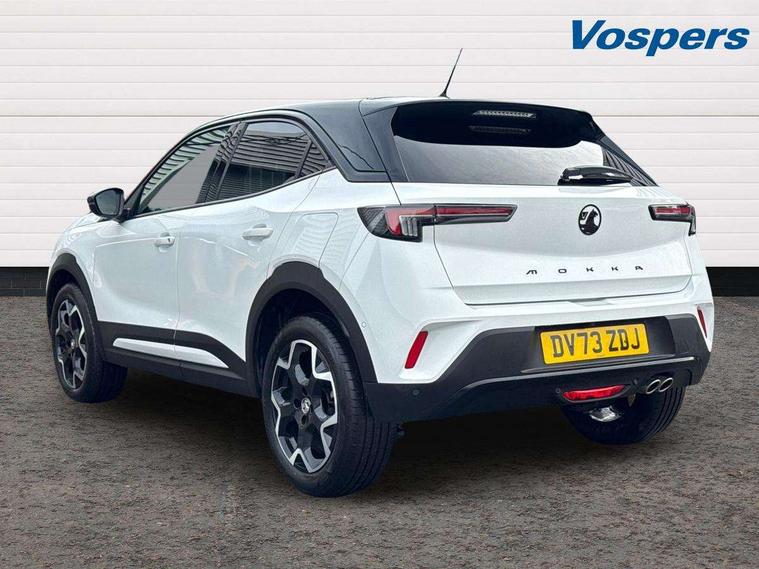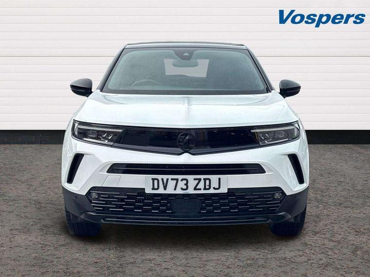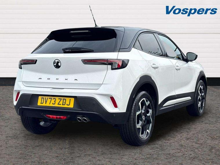 12" digital instrument cluster, Adaptive cruise control with speed limiter, Advanced Park Assist, Digital instrumentation with digital speedometer, rev counter, fuel and water temperature gauge, Driver drowsiness alert system, Driver information display with multi function trip computer, audio info, digital clock and outside air temperature with ice warning function, Engine start/stop button, EV information display, Extended traffic sign recognition, Front and rear parking distance sensors, Front camera and radar system, Lane keep assist system (LAS) with Lane departure warning system (LDWS), Lane positioning assist, Lights on audible warning, Panoramic rear view camera, Power assisted speed sensitive steering, RDS with traffic programme, Side blind spot alert and flank guard, Smartphone integration compatible with Apple CarPlay and Android Auto, Sports switch with engine sound enhancement, Start/stop system, Vauxhall connect with e-Call, Wireless charging for smartphone, 8 speed automatic transmission, 6 speakers, AM/FM stereo radio with 36 station presets, DAB Digital radio, Flexible Roof Mounted Radio Aerial, Front USB connection, Mobile phone portal - bluetooth connect, vehicle microphone, handsfree calls, SMS read out and reply, phone book access, Multimedia Navi Pro with 10" colour touchscreen, Steering wheel mounted controls, Two rear USB sockets, Adaptive brake lights, Automatic headlamp levelling, Automatic lighting control with tunnel detection, Automatically dimming anti dazzle rear view mirror, Black door mirror housings, Black front and rear bumper inserts, Black Griffin logo and vizor frame, Black upper window moulding, Body colour door handles, Body colour front and rear bumpers, Dark tinted rear side windows + tailgate window, Electric adjustable/heated/folding door mirrors + puddle lights, Electrically operated front and rear windows with safety auto reverse and one touch up/down facility, Hazard warning lights, Heated rear window+rear wash/wipe, High beam assist with anti glare, Integrated black tailgate spoiler, IntelliLux Matrix LED headlights with adaptive forward lighting, LED 3rd brake light, LED daytime running lights, LED front fog lamps, LED side repeat indicators, LED tail lights, Rear foglight, Rear side wing doors, Reversing light, Solar heat absorbing windscreen and windows, Two speed rain-sensitive windscreen wipers with variable intermittent wipe, Windscreen and side window demist vents, 12V Accessory socket, 3 seat bench in 2nd row, 3 spoke flat bottomed leather steering wheel with satin chrome bezel, 4 speed fan with illuminated controls, 6 way manual adjustable driver fore/aft, up/down with reclining seatback, 6 way manual adjustable front passenger fore/aft, up/down with reclining seatback, 60/40 split folding rear seat, Air recirculation system, Alcantara/leather upholstery, Alloy sports pedals, Black headliner, Cabin particulate filter - removes dust, airborne particles and pollen, Centre console with two cup holders at front and one in rear, Chrome effect interior door handles, Door pockets with two litre capacity, Driver and passenger sun visors with vanity mirror, Driver seat lumbar support and massage function, Electronic climate control (ECC), Four adjustable facia vents, Four load restraint lashing eyes, Front centre armrest with storage, Front head restraints, Front map reading lights, Front seat back storage pockets, Fully carpeted load area, Heated front seats, Heated steering wheel, Interior courtesy light, Interior tailgate handle, Luggage compartment cover, Luggage compartment lighting, Movable boot floor, Reach + rake adjustable steering column, Single front passenger seat, Steering wheel mounted paddle shift, Three height adjustable rear seat head restraints, Twin gas assisted tailgate struts, Black Pack with badge - Mokka, 2x Isofix child seat fitting on outer rear seats, 3x3 point rear seat belts, Anti-lock braking system (ABS), Child proof locks on rear doors, Cornering brake control, Deactivation switch for front passenger front and side impact airbags, Drag torque control, Driver and front passenger airbags, front seat side impact airbags, full size curtain airbags, Electronic brake force distribution, Electronic Stability Programme (ESP), Emergency brake assist, Enhanced automatic emergency braking with pedestrian detection, Forward collision alert at all speed, Hill start assist, Inertia reel lap and diagonal seatbelts for all seats, Seatbelt unfastened audible warning and warning light, Straight line stability control, Traction control, Tyre pressure monitoring system, Electronically protected audio equipment, Engine deadlock immobiliser, Freewheeling door locks, Key left in ignition audible warning, Keyless entry and start, Locking wheel nuts, Remote control central locking, Remote control ultrasonic security alarm system, Visible vehicle identification number, Atlantis black trim inserts of front doors, Black facia with silver trim insert, Instrument panel bar in polar silver, 18" bi colour alloy wheels,