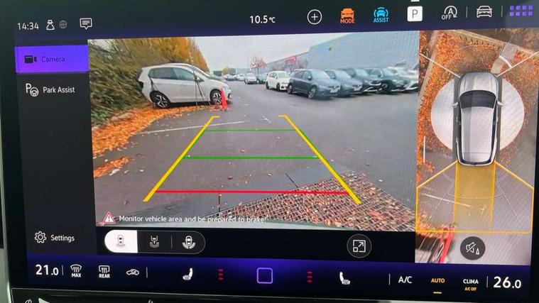 Adaptive cruise control ACC including speed limiter, Advanced driver attention and drowsiness monitor, App-Connect incl. App-Connect Wireless for Apple CarPlay and Android Auto, Area view camera [PAV], Bluetooth phone integration system, Comfort drive travel assist, Digital Cockpit Pro - 10.25" high resolution dash display screen with customisable menus and information, Dynamic road sign display, E-Sim card for online connectivity, eCall emergency call service, eCall emergency call system, Extended safety system (proactive passenger protection system), Full electric tailgate operation, Head up Display, Inductive smartphone charging without external antenna connection, Lane change system, Side assist, Rear traffic alert and Exit warning system, Lane keeping system Lane Assist, Multifunction front facing camera, Navigation system, Oncoming vehicle braking when turning including swerve support, Park assistance plus with front and rear parking sensors, Power assisted steering with speed sensitive, Rear view camera, Rev counter, Service interval indicator, Speed limit display, Start/stop system with regenerative braking, Trip computer, Voice control and enhancer, Warning signal and warning light for front and rear seatbelts not fastened, Wireless App-Connect, Front wheel drive, 15" Infotainment display, 8 Speakers, DAB radio, Diversity antenna for FM reception, Ambient lighting with logo projection, Auto dimming interior rear view mirror, Automatic headlight control system, Body colored bumpers in R-Line style, Body colour door handles, Body coloured door mirrors with integrated indicators, Chrome moldings on the side windows, Coming/leaving home lighting function, Dynamic headlight range control with dynamic cornering light, Exterior mirrors power folding, auto-dimming on drivers side with surround lighting and memory feature, Front and rear electric windows, Heat insulating darkened glass in side and rear windows, Heated windscreen washer jets, High Beam Assist, automatic sensing for switching between dipped and main beam, High level 3rd brake light, High-resolution matrix beam plus digital projection, Highway light, Illuminated door handle recesses, Illuminated lightline between headlamps and illuminated door handle recesses, IQ.Light - HD matrix headlamps with poor weather light, entry and exit lighting, Laminated safety glass from B-pillar backwards 90% tinted, Laminated safety glass windshield, heat and sound insulating, LED rear lights with welcome farewell lights with illuminated Volkswagen Logo, LED separate daytime running light, Rear fog light on one side, reversing light on both sides, Rear side wing doors, Rear wiper, Remote electrically foldable door mirrors, puddle lights and reverse activated passenger's door mirror, Silver roof rails, 12V outlet in center console rear and in luggage compartment, 12V socket in centre console, 2 USB-C ports in the front, 2 USB-C charging sockets on the centre console in rear, charging capacity up to 45 W, 3 bench rear seats in 2nd row, 3 rear headrests, 30 colours options interior ambient lighting, Air Care Climatronic 3 zone automatic climate control with enhanced air filter and controls in the rear, Carpet mats, front and rear, Centre console with illuminated storage compartment with sliding cover and two drinks holders, Door and side trim panel with leatherette insert, Door sill protectors, Drivers seat with manual adjustment of seat travel and height and backrest angle with thigh support longitudinally sliding, Front centre armrest, Front massage seats, Front sports comfort seats, Heated front seats, Heated steering wheel, Height adjustable front seats, ISOFIX anchors for child seats on outer rear seats and front passenger seat compatible with i-Size, Leather wrapped multifunction steering wheel with paddle shift, Mechanical rear seat release, Power adjustable lumbar support in front, Rear bench seat asymetrically split folding, longitudinally movable and folding with load-through hatch and center armrest, Safety optimised front head restraints, Single front passenger seat, Sun visors with illuminated vanity mirrors, Variable luggage compartment floor, 3 point seat belt for centre rear seats, 3 Point seat belts in front with pretensioners, 3 point seatbelts in outer rear with ECE label, Autonomous emergency braking front assist with pedestrian and cyclist monitoring, Driver/Front Passenger airbags, Electronic parking brake with auto hold, Front disc brakes, Front passenger airbag deactivation, Manual rear child locks, Rear disc brakes, Two tone horn, Tyre pressure loss indicator, Warning triangle, Anti theft alarm system with interior monitoring, backup horn and towing protection, Anti theft wheel bolts, Central locking system keyless entry, Chrome elements on the mirror switch and power window switches, door pulls interior door handle in matte chrome, Decorative inserts Cross in dash and front door panels, Tool kit for tyre mobility set,