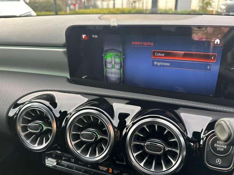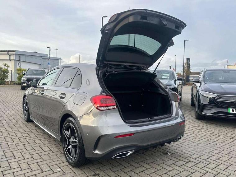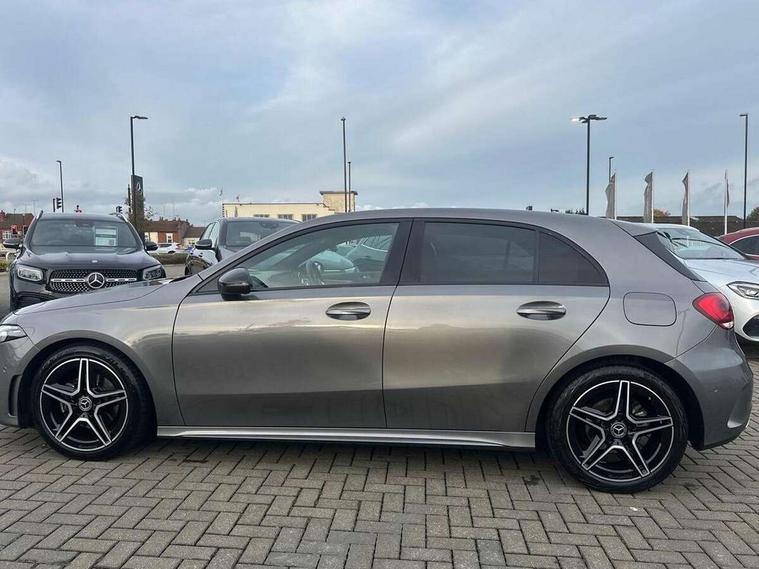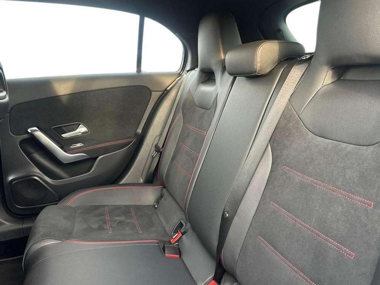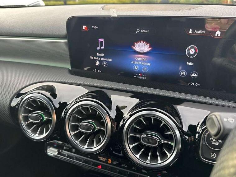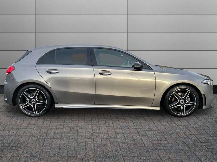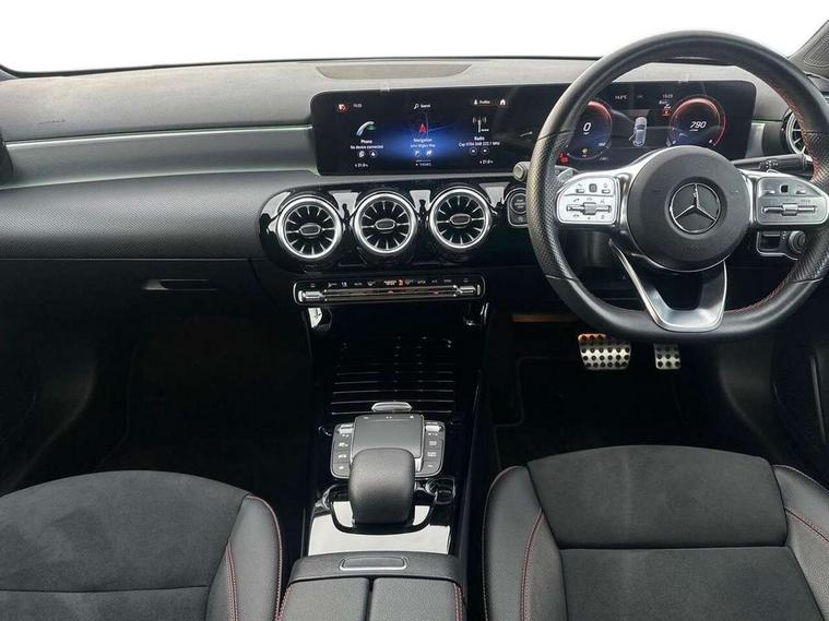 10.25" Digital instrument cluster display screen, 10.25" media display, 180 degree rear view camera with parking guidelines, Active parking assist with visual and audible warning of detected obstacles, Attention assist, Brake pad wear indicator warning light, Car wash mode, Cruise control + speed limiter, Direct steering, Dual bluetooth interfaces, DYNAMIC SELECT with a choice of driving modes (ECO, Comfort, Sport and Individual), ECO start/stop function, Fluid level warning indicator for fuel, oil, coolant and washer fluid, Hard-disk navigation, Hey Mercedes Voice activation, Lamp failure indicator, Lane keeping system, Mercedes me connect including emergency call system, accident recovery, breakdown and maintenance management, Mercedes me remote services, Outside temperature gauge, Owners manual in English, Pre-installation for private car sharing, Preinstallation for Mercedes Benz link, Service indicator (ASSYST), Smartphone integration with Apple CarPlay and Android auto, Speed limit assist, Speed sensitive power steering, Trip computer, Ultrasonic sensors positioned in the front and rear bumpers, Lowered comfort suspension, Rear axle torsion beam, 2 USB ports (type C) in rear stowage compartment and one in front of center console, 6 speakers, DAB Digital radio, MBUX multimedia system with DAB digital radio and touchpad including satellite navigation, Mercedes-Benz sound system - 100W, 4 Electric Front and Rear windows, Adaptive brake lights, AMG bodystyling - Front apron with splitter in chrome, rear apron with chrome trim and chrome visible trim elements in tailpipe, Automatic headlights, Black weather strip, Body colour bumpers, Body colour door handles with chrome inserts, Body colour side skirt, Electric adjustable and heated door mirrors with integrated LED side indicators, Exclusive diamond radiator grille, Exhaust system - Twin visible tailpipes in polished stainless steel, Headlamp assist automatic headlamp activation, Heated glass rear windscreen + timer control, LED High level third brake light, LED high performance headlamps with integrated LED daytime running lights, LED tail lamp, Privacy glass, Radio aerial, Rain sensing windscreen wipers with two sensitivity settings, Rear fog lights, Rear side wing doors, Rear wiper, 3 seat bench in 2nd row, 3 Spoke flat bottom leather multi function steering wheel with perforated leather in grip area, 40:20:40 split folding rear seats, Artico man-made leather/Microfibre Dinamica upholstery with red contrast stitching, Auto Mercedes-Benz child seat recognition sensor, Black air vents with surround in silver chrome, Black roof lining, Brushed stainless steel sports pedals with rubber studs, Controller on centre console with chrome surround, Floor mats with AMG lettering, Front centre armrest with storage compartment, Front seat backs luggage nets, Galvanished gear shift paddles on steering wheel, Heated front seats, Height/reach adjustable steering column, Illuminated Mercedes Benz lettering front door sills with changeable cover, Interior lighting - 64 colour Ambient lighting, Interior mirror with reading lamps in black and frameless, Manual height adjustable front seats, Rear head restraints, Seat occupancy sensor for front passenger seat, Single front passenger seat, Sports seats with integrated headrests, Stowage compartment in centre console with retractable cover, Sunvisors with illuminated vanity mirrors, Touchpad on center console, Twin front cupholders, Two zone thermotronic luxury automatic climate control, Light and sight pack - A Class, Mirror package - A Class, Night pack - A Class Saloon/Hatchback, Seat comfort pack - A Class, 3 rear 3 point seatbelts, ABS with Brake Assist, Active bonnet, Active brake assist includes forward collision warning system with autonomous braking, Adaptive brake assist with hold function and hill start assist, Black seatbelts, Childproof locks manually operated for rear doors and electrically operated for rear power windows, Crash responsive emergency lighting, Driver and passenger head and side airbags, Drivers knee airbag, Dual stage driver/passenger airbags, Electronic parking brake, ESP curve dynamic assist, ESP with ASR, Front and rear seatbelt reminder, Front brake callipers with Mercedes Benz lettering, ISOFIX and top tether child seat fixing points in two outer rear seats, Tyre pressure monitoring system, Warning triangle and first aid kit, Window airbags, Alarm system/interior protection/immobiliser, Keyless Go, Remote central locking and crash sensor with emergency opening function, Urban guard vehicle protection system with immobiliser and interior protection, Matrix look light longitudinal grain aluminium trim element, 18" AMG 5 twin spoke light alloy wheels aerodynamically optimised painted in black with highsheen finish, Summer tyres, Tirefit sealant kit,