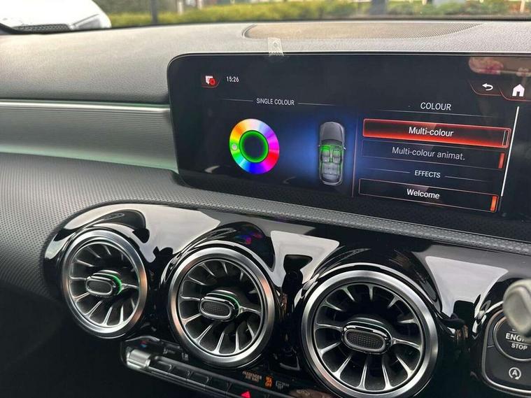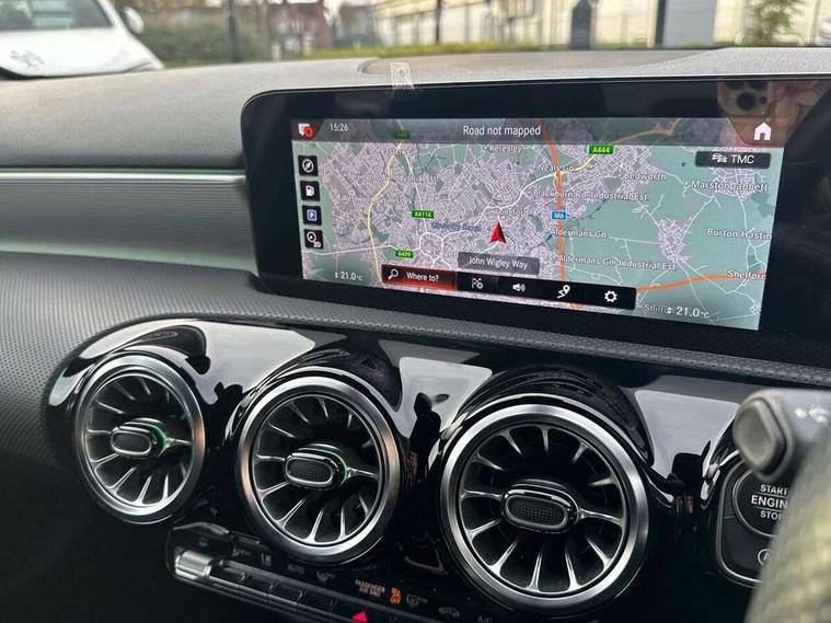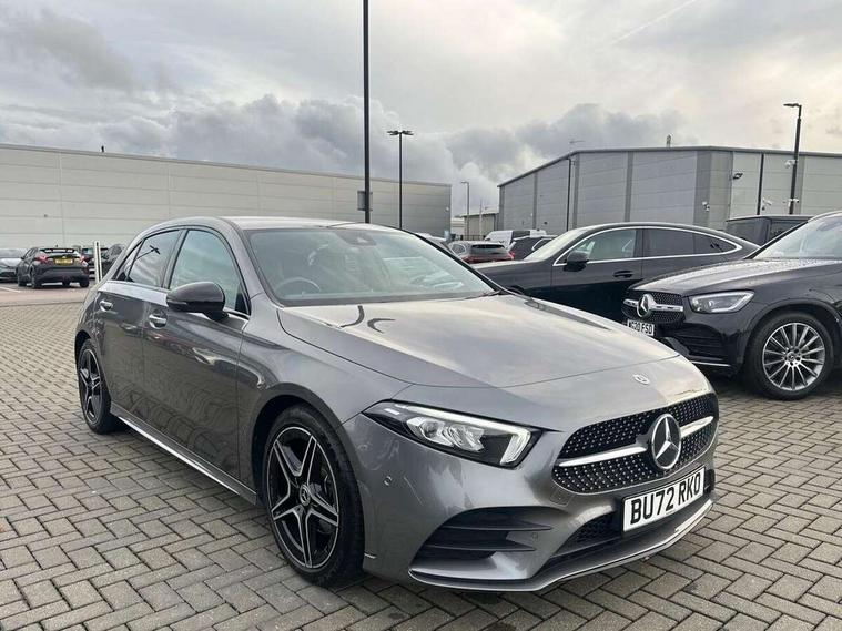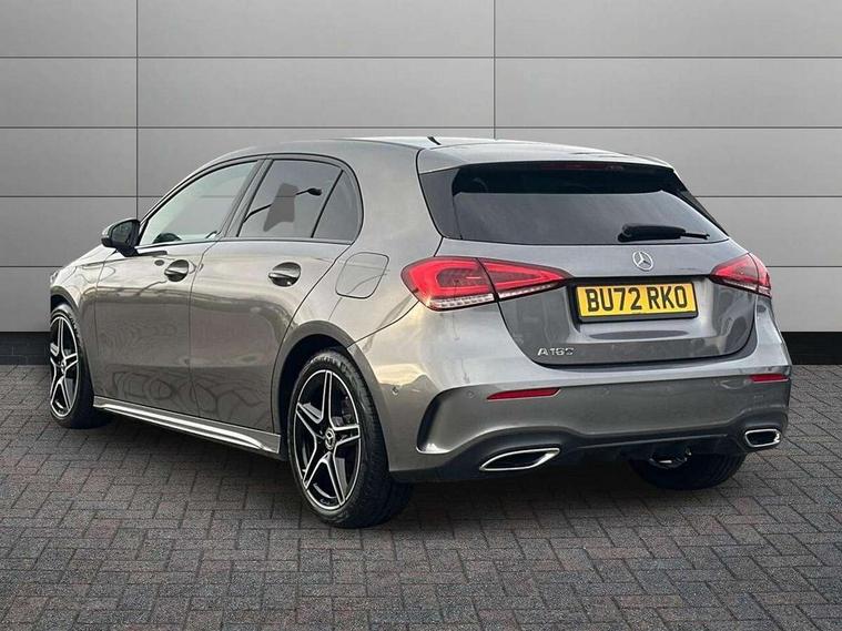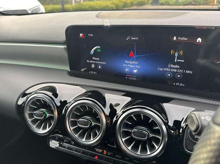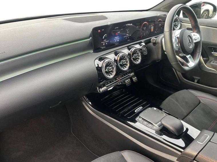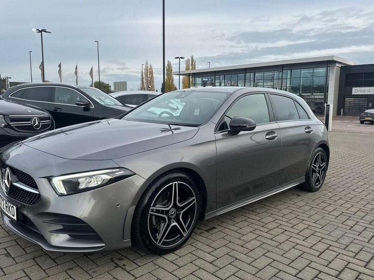 10.25" Digital instrument cluster display screen, 10.25" media display, 180 degree rear view camera with parking guidelines, Active parking assist with visual and audible warning of detected obstacles, Attention assist, Brake pad wear indicator warning light, Car wash mode, Cruise control + speed limiter, Direct steering, Dual bluetooth interfaces, DYNAMIC SELECT with a choice of driving modes (ECO, Comfort, Sport and Individual), ECO start/stop function, Fluid level warning indicator for fuel, oil, coolant and washer fluid, Hard-disk navigation, Hey Mercedes Voice activation, Lamp failure indicator, Lane keeping system, Mercedes me connect including emergency call system, accident recovery, breakdown and maintenance management, Mercedes me remote services, Outside temperature gauge, Owners manual in English, Pre-installation for private car sharing, Preinstallation for Mercedes Benz link, Service indicator (ASSYST), Smartphone integration with Apple CarPlay and Android auto, Speed limit assist, Speed sensitive power steering, Trip computer, Ultrasonic sensors positioned in the front and rear bumpers, Lowered comfort suspension, Rear axle torsion beam, 2 USB ports (type C) in rear stowage compartment and one in front of center console, 6 speakers, DAB Digital radio, MBUX multimedia system with DAB digital radio and touchpad including satellite navigation, Mercedes-Benz sound system - 100W, 4 Electric Front and Rear windows, Adaptive brake lights, AMG bodystyling - Front apron with splitter in chrome, rear apron with chrome trim and chrome visible trim elements in tailpipe, Automatic headlights, Black weather strip, Body colour bumpers, Body colour door handles with chrome inserts, Body colour side skirt, Electric adjustable and heated door mirrors with integrated LED side indicators, Exclusive diamond radiator grille, Exhaust system - Twin visible tailpipes in polished stainless steel, Headlamp assist automatic headlamp activation, Heated glass rear windscreen + timer control, LED High level third brake light, LED high performance headlamps with integrated LED daytime running lights, LED tail lamp, Privacy glass, Radio aerial, Rain sensing windscreen wipers with two sensitivity settings, Rear fog lights, Rear side wing doors, Rear wiper, 3 seat bench in 2nd row, 3 Spoke flat bottom leather multi function steering wheel with perforated leather in grip area, 40:20:40 split folding rear seats, Artico man-made leather/Microfibre Dinamica upholstery with red contrast stitching, Auto Mercedes-Benz child seat recognition sensor, Black air vents with surround in silver chrome, Black roof lining, Brushed stainless steel sports pedals with rubber studs, Controller on centre console with chrome surround, Floor mats with AMG lettering, Front centre armrest with storage compartment, Front seat backs luggage nets, Galvanished gear shift paddles on steering wheel, Heated front seats, Height/reach adjustable steering column, Illuminated Mercedes Benz lettering front door sills with changeable cover, Interior lighting - 64 colour Ambient lighting, Interior mirror with reading lamps in black and frameless, Manual height adjustable front seats, Rear head restraints, Seat occupancy sensor for front passenger seat, Single front passenger seat, Sports seats with integrated headrests, Stowage compartment in centre console with retractable cover, Sunvisors with illuminated vanity mirrors, Touchpad on center console, Twin front cupholders, Two zone thermotronic luxury automatic climate control, Light and sight pack - A Class, Mirror package - A Class, Night pack - A Class Saloon/Hatchback, Seat comfort pack - A Class, 3 rear 3 point seatbelts, ABS with Brake Assist, Active bonnet, Active brake assist includes forward collision warning system with autonomous braking, Adaptive brake assist with hold function and hill start assist, Black seatbelts, Childproof locks manually operated for rear doors and electrically operated for rear power windows, Crash responsive emergency lighting, Driver and passenger head and side airbags, Drivers knee airbag, Dual stage driver/passenger airbags, Electronic parking brake, ESP curve dynamic assist, ESP with ASR, Front and rear seatbelt reminder, Front brake callipers with Mercedes Benz lettering, ISOFIX and top tether child seat fixing points in two outer rear seats, Tyre pressure monitoring system, Warning triangle and first aid kit, Window airbags, Alarm system/interior protection/immobiliser, Keyless Go, Remote central locking and crash sensor with emergency opening function, Urban guard vehicle protection system with immobiliser and interior protection, Matrix look light longitudinal grain aluminium trim element, 18" AMG 5 twin spoke light alloy wheels aerodynamically optimised painted in black with highsheen finish, Summer tyres, Tirefit sealant kit,