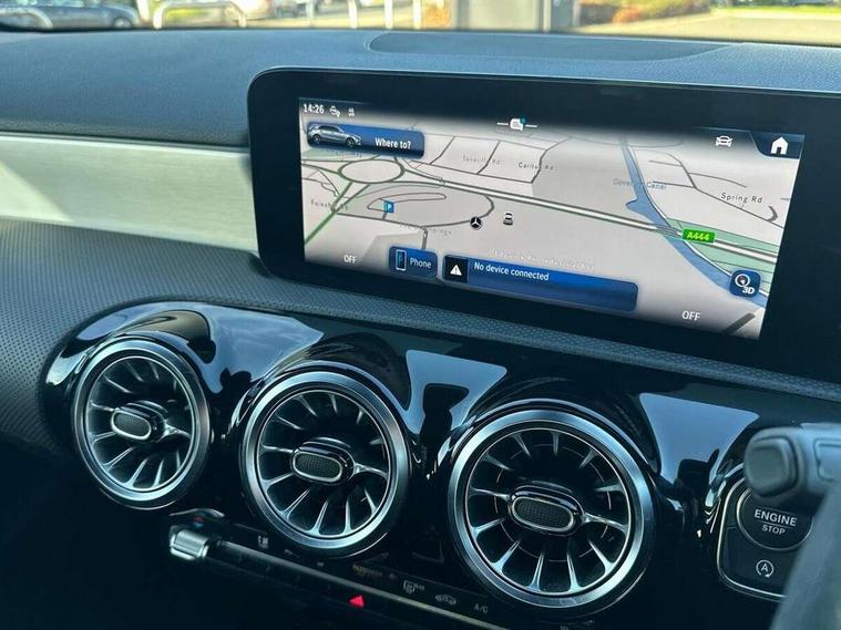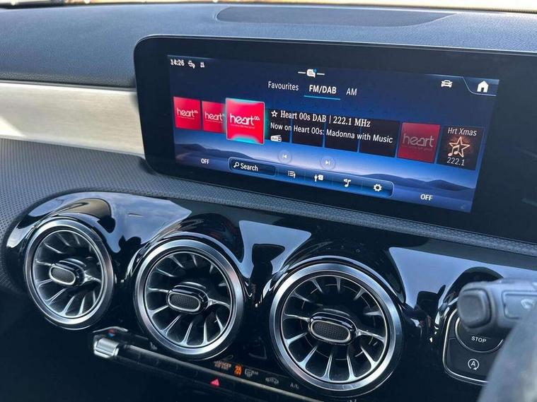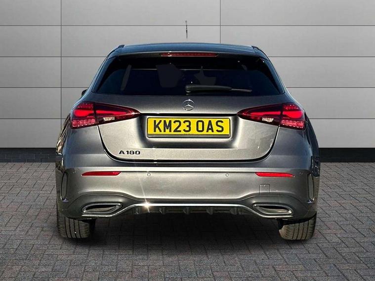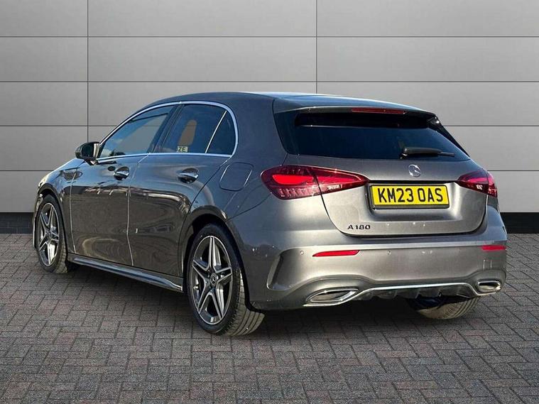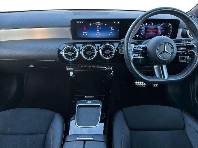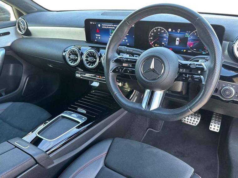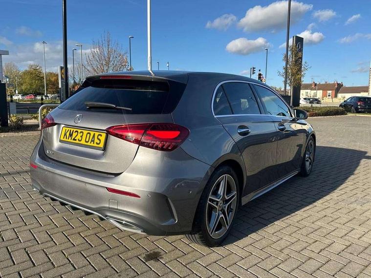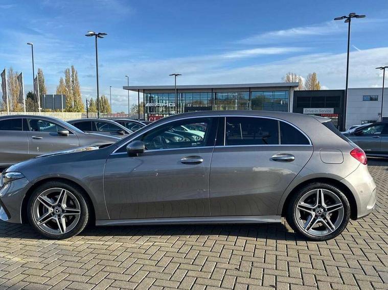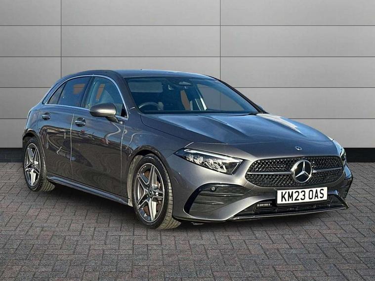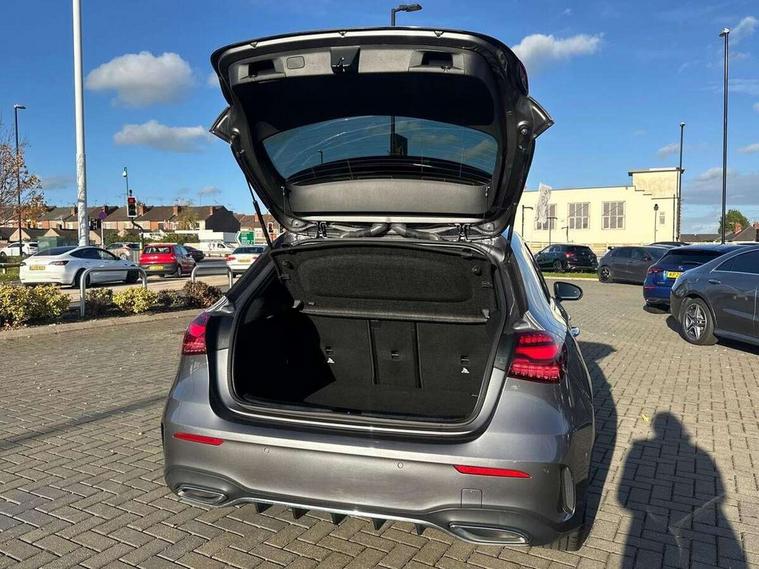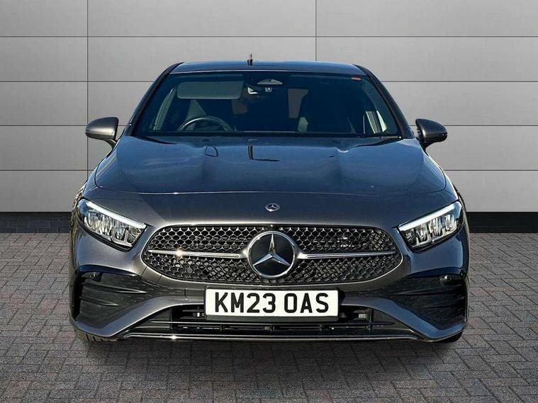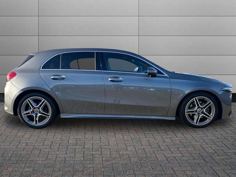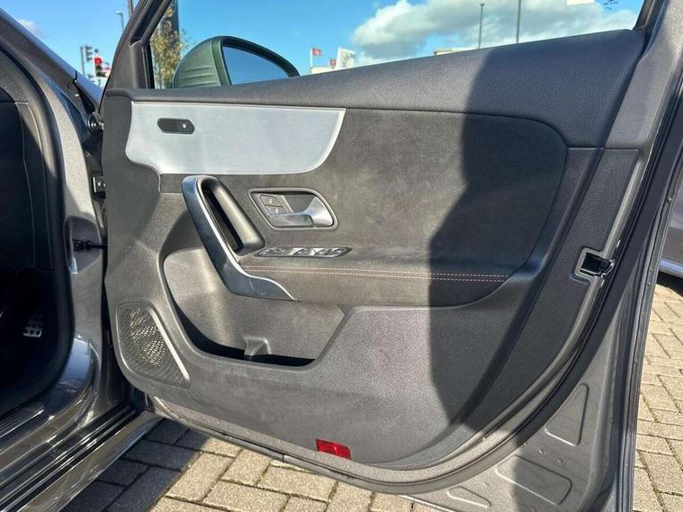 10.25 inch touchscreen central media display, 10.25" Digital instrument cluster display screen, Attention assist, Brake pad wear indicator warning light, Car wash mode, Cruise control + speed limiter, Direct steering, Direction indicators with lane change function, Dual bluetooth interfaces, DYNAMIC SELECT with a choice of driving modes (ECO, Comfort, Sport and Individual), Easy pack tailgate hands-free access, ECO start/stop function, Engine start/stop button, Fingerprint scanner, Fluid level warning indicator for fuel, oil, coolant and washer fluid, Hard-disk navigation, Hey Mercedes Voice activation, Lamp failure indicator, Lane keeping system, Mercedes me connect including emergency call system, accident recovery, breakdown and maintenance management, Mercedes me remote services, Outside temperature gauge, Owners manual in English, Pre-installation of private car share, Preinstallation for Mercedes Benz link, Remote boot closing, Service indicator (ASSYST), Smartphone integration with Apple CarPlay and Android auto, Speed limit assist, Speed sensitive power steering, Trip computer in multifunction display with current consumption indicator, Wireless charging, Lowered comfort suspension, DAB Digital radio, MBUX multimedia system, Mercedes Benz sound system (100 W) with 6 speakers, 4 Electric Front and Rear windows, Adaptive brake lights, AMG body styling - AMG front apron with front splitter and AMG rear apron and visible exhaust tailpipe trim elements, Body colour bumpers, Body colour door handles with chrome inserts, Body colour side skirt, Body coloured door mirrors, Chrome beltline strips, Diamond radiator grille with pins in fine star pattern, Electric adjustable and heated door mirrors with integrated LED side indicators, Exhaust system with 2 visible tailpipe trim elements and rear apron, Headlamp assist automatic headlamp activation, Heat insulating dark tinted rear and rear side windows, Heated glass rear windscreen + timer control, LED High level third brake light, LED High Performance headlamps including integral LED daytime running lamps and adaptive highbeam assist, LED tail lamp, Privacy glass, Radio aerial, Rain sensing windscreen wipers with two sensitivity settings, Rear fog lights, Rear side wing doors, Rear windscreen wiper, Window line trim strip in black, 3 seat bench in 2nd row, 3 Spoke flat bottom leather multi function steering wheel with perforated leather in grip area, 4 way lumbar support, 40:20:40 split folding rear seats, Air conditioning - One zone THERMATIC automatic climate control with automatically controlled air distribution, Automatic child seat recognition sensor, Black air vents with surround in silver chrome, Black roof lining, Brushed stainless steel sports pedals with rubber studs, Floor mats with AMG lettering, Front centre armrest with stowage, Front door sills with Mercedes Benz lettering, Front seat backs luggage nets, Galvanished gear shift paddles on steering wheel, Heated front seats, Height/reach adjustable steering column, Interior lighting - 64 colour Ambient lighting, Interior mirror with reading lamps in black and frameless, Rear armrest with 2 cupholders, Seat occupancy sensor for front passenger seat, Single front passenger seat, Sports seats with integrated headrests, Stowage compartment in centre console with retractable cover, Sunvisors with illuminated vanity mirrors, Twin front cupholders, Light and sight pack - A Class, Mirror package - A Class, Parking pack - A Class, Seat comfort pack - A Class, USB pack plus - A Class, 3 rear 3 point seatbelts, ABS with Brake Assist, Active bonnet, Active brake assist includes forward collision warning system with autonomous braking, Adaptive brake assist with hold function and hill start assist, Black seatbelts, Bonnet with power domes, Childproof locks manually operated for rear doors and electrically operated for rear power windows, Crash responsive emergency lighting, Driver and passenger head and side airbags, Drivers knee airbag, Dual stage driver/passenger airbags, Electronic parking brake, ESP curve dynamic assist, ESP with ASR, Front and rear seatbelt reminder, ISOFIX and top tether child seat fixing points in two outer rear seats, Tyre pressure monitoring system, Warning triangle and first aid kit, Window airbags, Alarm system/interior protection/immobiliser, Guard 360 degree vehicle protection, Keyless entry lock/unlock, Keyless Go, Remote central locking and crash sensor with emergency opening function, Light longitudinal grain aluminium trim, 18" AMG 5 twin spoke light alloy wheels, aerodynamically optimised, painted in termolite grey with high sheen finish, Summer tyres, Tirefit sealant kit,