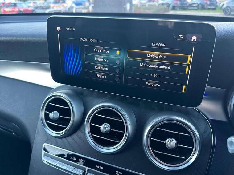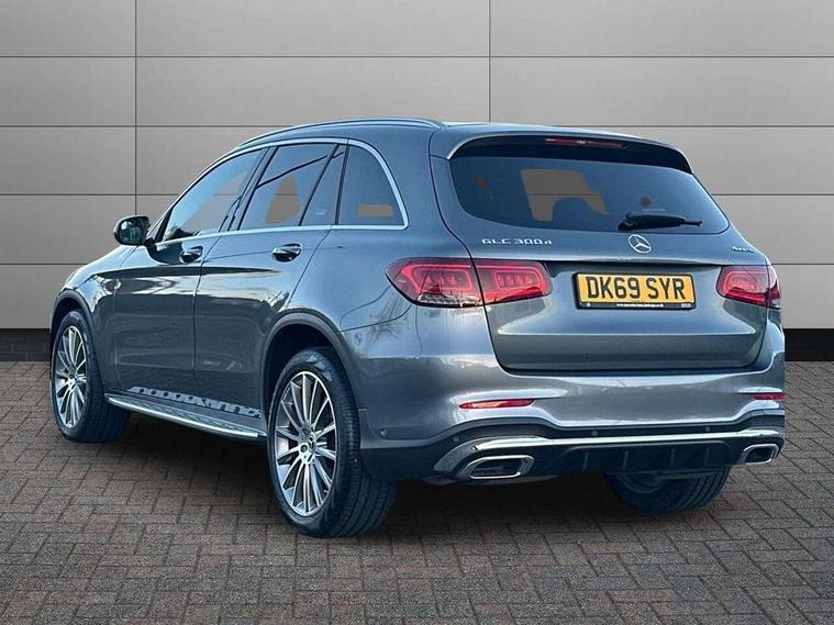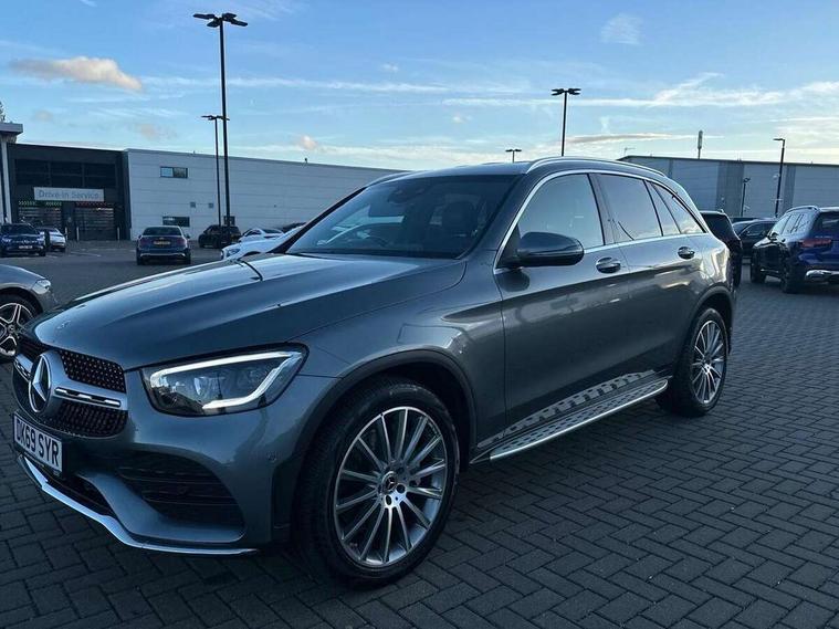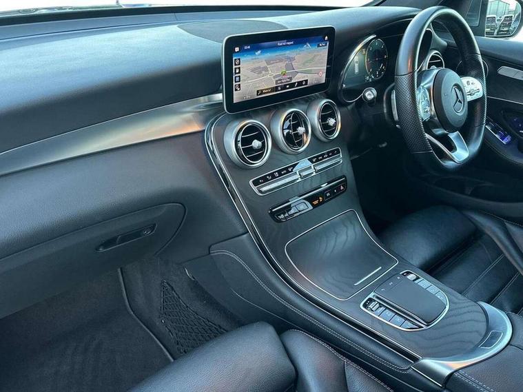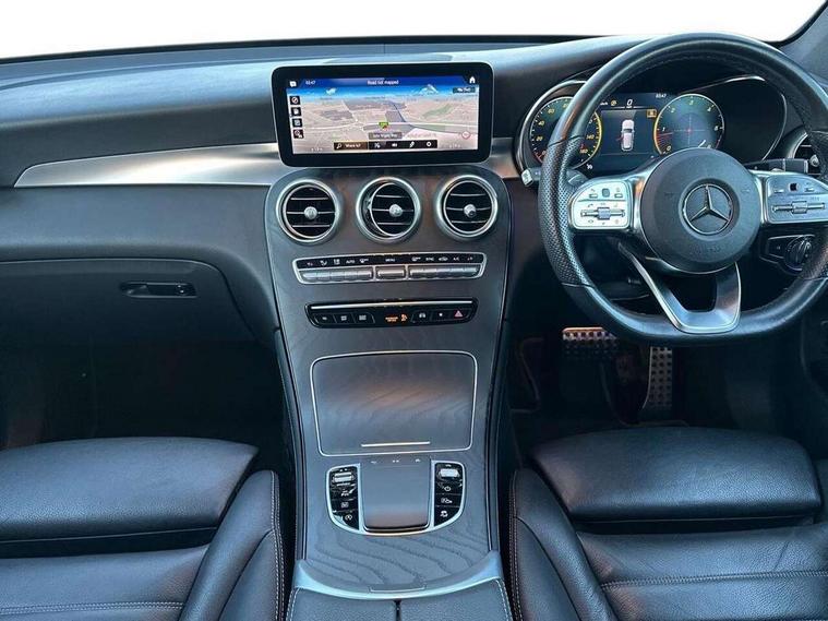 Active parking assist with parktronic system, Attention assist, Bluetooth interface for hands free telephone, Collision prevention assist plus, DYNAMIC SELECT with a choice of driving modes (ECO, Comfort, Sport, Sport+ and Individual), ECO start/stop function, Hard disk navigation, Hey Mercedes Voice activation, Instrument cluster with12.3-inch digital instrument cluster display. High resolution instrument cluster screen with choice of three display styles, MBUX augmented reality for navigation, Mercedes connect me with remote online services, Multi function trip computer, Outside temperature display, rear seatbelt status indicator, Power opening/closing tailgate, Remote boot release, Reversing camera, Service indicator (ASSYST), Smartphone integration with Apple CarPlay and Android auto, Traffic sign assist, Wireless charging, 50 litre fuel tank, Diesel particulate filter, Sports suspension tuned for improved handling and driving dynamics, DAB Digital radio, MBUX multimedia system with DAB digital radio and touchpad including satellite navigation, Media display 10.25-inch touchscreen display, Mercedes Benz sound system (225w) includes mid-range sound system, Pre installation for Mercedes Benz Link, USB ports x 2 in centre console, Adaptive brake lights, Aluminium roof rails, AMG bodystyling - AMG front apron with sporty air intakes and chrome trim element, AMG diffuser-look rear apron with insert in black, Body colour door mirrors, Body coloured bumpers, Electric windows one touch open/close, Electrically adjustable and heated door mirrors, Exhaust tailpipe finisher, Front and rear exterior chrome trim, Headlamp assist automatic headlamp activation, LED tail lamp, Multi beam LED headlamps with 84 indiviually control LED, daytime running lamps, Active Light, cornering light, enhanced fog lamp, adaptive Highbeam Assist, Privacy glass (to rear of B post), Radiator diamond grille, Rain sensor windscreen wipers, Range adjustable headlights, Rear wiper, Running boards, Tinted glass all round, Two chrome plated tailpipe trim elements, 2 way rear head restraints, 3-spoke multifunction AMG steering wheel in black nappa leather with flattened bottom section, chrome inserts and perforated leather in grip area, 40:20:40 split folding rear seats, Ambient lighting, AMG floor mats with edging and embroidered AMG lettering, AMG sports seats, Automatic child seat recognition sensor, Automatic climate control, Black roof lining, Dividing net - rear, Double cup holder in centre console, Front armrest with storage box, Front door sills with Mercedes Benz lettering, Front seats with electric adjust (backrest, height and seat cushion inclination) with 4 way electric lumbar support and manual cushion depth adjust, Gearshift paddles, Heated front seats, Height/reach adjustable steering column, Illuminated and lockable glove compartment, Leather upholstery, Rear top tether child seat ISOFIX attachment, Sports pedals with stainless steel surfaces and rubber studs, Sunvisors with illuminated vanity mirrors, Easy-pack load compartment cover, Interior lighting pack - GLC, Mirror pack - GLC, Storage pack - GLC, 3 rear 3 point seatbelts, Active bonnet, Adaptive brake system with HOLD function and brake drying in the wet, ASR, Black seat belts, Brake calipers with Mercedes-Benz lettering + perforated brake discs, Child proof door locks, Dual-stage airbags - driver and front passenger, driver knee bag and window bags for driver, front passenger and rear passengers, Electronic parking brake, Electronic stability programme (ESP) with curve dynamic assist and cross wind assist, Front and rear seatbelt reminder, Front passenger seat occupancy sensor, Hill hold function, Tyre pressure monitoring system, Warning triangle and first aid kit, Alarm system/interior protection/immobiliser, Automatic door locking, KEYLESS-GO starting function, Remote central locking, Open pore black ash wood trim, 20" AMG multi spoke alloy wheels painted in titanium grey with high sheen finish and run flat tyres,