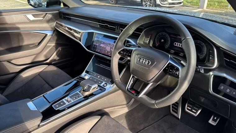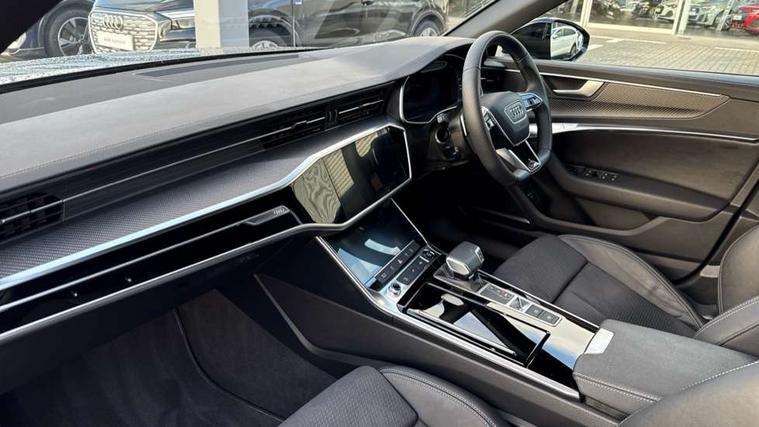 Audi connect safety and service (e-call), Audi connect with Amazon Alexa Integration, Audi drive select, Audi parking system plus - acoustic and visual park assist system for front and rear, Audi virtual cockpit, Automatic start/stop system with coasting functionality, Bluetooth interface, Camera based traffic sign recognition, Lane departure warning system, MMI navigation plus with 10.1" and 8.6" touch screens, Power operated tailgate, Progressive steering, Rear view camera, Service interval indicator, Smartphone interface includes wireless Apple carplay/Android Auto, Voice control system, Sports suspension, Audi front music interface, Audi sound system, Auxiliary input socket, DAB Digital radio, USB connection, Audi beam, Black roof rails, Body colour rear roof spoiler, Electric front/rear windows, Electrically adjustable heated and folding + automatically dimming exterior mirrors with memory function, Frameless auto dimming interior rear view mirror, Front intermittent wipers, Heat insulating darkened glass in side and rear windows, Heat insulating glass in windshield, LED rear lights with dynamic indicators, LED signature front daytime running light, LED third brake light, Matrix LED headlights, Matt black rear diffuser with diffuser strip and tailpipes in chrome, Matt black side air intake grille with inlay in matt aluminium, Omission of output/technology badging, Privacy glass, Radiator grille in anthracite black matt, single frame in chrome and horizontal struts in matt aluminium silver, Rain and light sensors, Rear side wing doors, Rear wiper, 2 zone deluxe electronic climate control, 40/20/40 split folding 3 rear seat bench in 3 parts with rear centre armrest, Audi phone box light, Black cloth headlining, Electrically adjustable front seats including seat height, fore/aft position, backrest angle and 4-way lumbar with memory for driver's seat, Front and rear floor mats, Front centre armrest, Front head restraints, Heated front seats, Height/reach adjust steering wheel, Illuminated door sill trims with S logo, Illuminated sun visors with vanity mirrors, Leather gear knob, Luggage compartment system, Rear headrests, Single front passenger seat, Stainless steel pedals and foot rest, Tool kit and car jack, Black styling package plus - A6 Black edition, LED Interior Ambient Lighting Pack - A6, Non smoking pack - A6, S line exterior style pack - A6, 3 point seatbelts on all seats, Airbags - Front side, front and rear including head, Audi pre-sense front, EBD - Electronic brakeforce distribution, Electromechanical parking brake, Electronic Stability Control (ESC) including ABS, ASR and EDL, Extended pedestrian protection measures, ISOFIX child seat mounting for front passenger seat and ISOFIX child seat mounting with Top Tether for outer rear seats, Manual child proof rear door locks, Seatbelt monitoring, Tyre pressure warning light, Warning triangle and first aid kit, Anti theft alarm with tow away protection, Anti-theft wheel bolts and wheel loosening detection, Immobiliser, Keyless Go, Remote central locking, Carbon twill inlays,