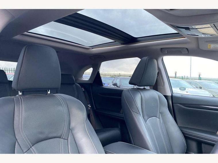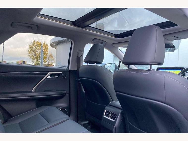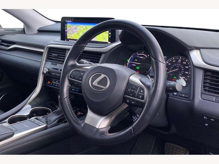 12.3" Touchscreen display and remote touch interface, 4 driving modes EV/Eco/Normal/Sport, Analogue clock with GPS function, Apple car play/Android Auto, Bluetooth mobile phone connectivity, Electric power steering, Emergency call service, Front and rear parking sensors with intelligent clearance sonar, Lane change flasher function, Lexus link connected services with available optional wifi, Lexus Premium Navigation with full European map capability, street view and connected services, Multi-information display 4-inch TFT, Push button starter, Reversing camera with back guide lines, Wireless Smartphone charger, E-Four Automatic transmission, Vehicle Dynamics Integrated Management (VDIM), Vehicle Stability Control (VSC), 12 speakers Pioneer audio, AUX socket with VTR compatibility, DAB Digital radio, DVD, Front and rear USB ports, 3 eye LED headlights with auto high beam, Auto dimming rear view mirror, Front and rear electric windows, Headlight washers, Heated, auto-folding door mirrors, auto dimming with rerverse tilt and memory, LED brake lights and rear lights with emergency brake signal, LED cornering headlights, LED daytime running lights, LED front and rear sequential indicators, LED front fog lights, Power back door with kick sensor, Privacy glass, rear doors and tailgate, Puddle lights, Rain sensor windscreen wipers, Rear side wing doors, Rear wash/wipe, Roof rails, 2 map pockets in the rear, 2 way electric lumbar support, 2 way manually adjustable front headrests, 2 way manually adjustable rear headrests, 2 x fixed shopping bag hooks in boot, 2 x Sunvisors with vanity mirror and lamp, 3 seat bench in 2nd row, 3 x 12V power sockets, 4 x tie down hooks in the boot, 40:20:40 split folding rear seats, 60/40 split folding rear seat with 40/20/40 folding ability, 8 way electrically adjustable front seats, Card holder installed in driver and passengers sun visors, Centre and rear armrest with 2 cupholders, Centre armrest with storage box, Climate concierge, Driver seat memory function, Driver's seat easy access auto retraction function, Dual zone climate control air conditioning system with S flow and Nanoe technology, Electrically adjustable leather steering wheel with paddle shifts and auto retraction function, Electrically adjustable steering column, Glasses holder in roof lighting panel, Heated front seats, Heated steering wheel, Isofix standard child seat restraint mounting, Leather gear lever, LED interior illumination, Rear armrest with storage, Self charging hybrid, Single front passenger seat, Sliding/reclining rear seats, Small compartment to right of steering wheel, Smooth leather upholstery, Textile carpet mats, Ventilated front seats, 3 point ELR front and rear seatbelts with pretensioners, ABS, Curtain airbags, Driver and front passenger 2 stage airbag, Driver/front passenger side airbags, Drivers knee airbag, EBD + Brake Assist, Electronic parking brake, Electronically controlled braking, Front passenger seat cushion airbag, Hill assist control, Lexus safety system - dynamic radar cruise control, pre collision system day and night, lane tracing assist, road sign, automatic high beam, OTA, Passenger airbag cut-off device, Rear door child safety locks, Rear passenger side airbags, Traction control, Tyre pressure warning, WIL whiplash protection front seats, Anti theft system with alarm, intrusion sensor, tilt sensor, glass breakage sensor and engine immobiliser, Locking wheel nuts, Security window etching, Smart keyless entry, Two motion door lock with double lock, Black grain inlay, 20" Alloy wheels, Temporary spare wheel,