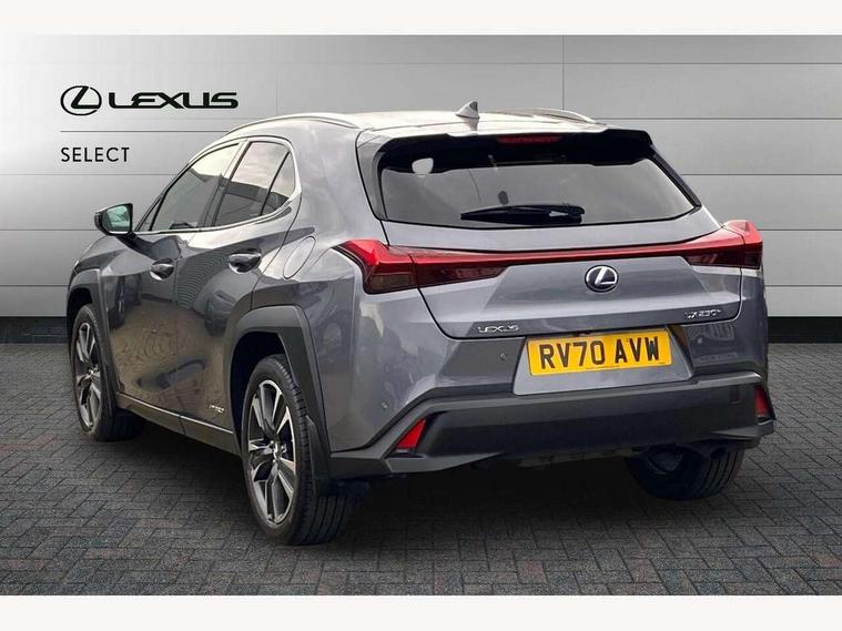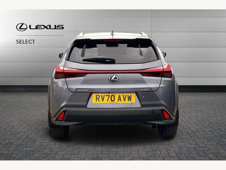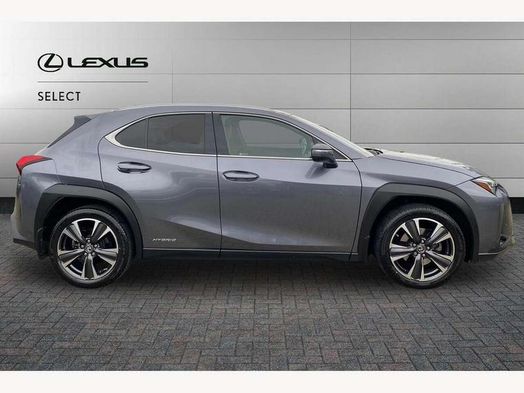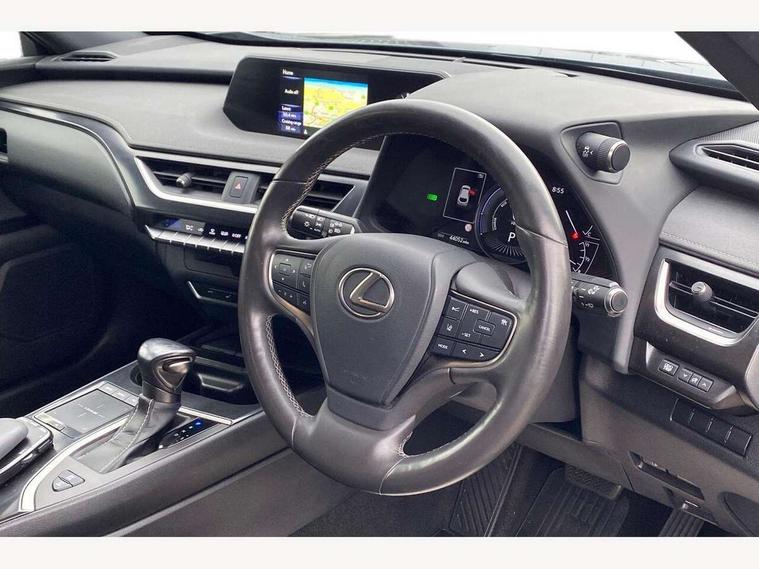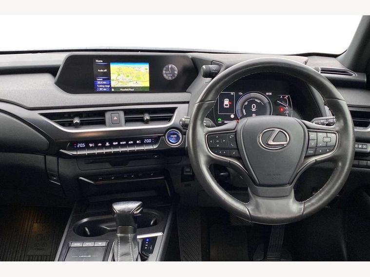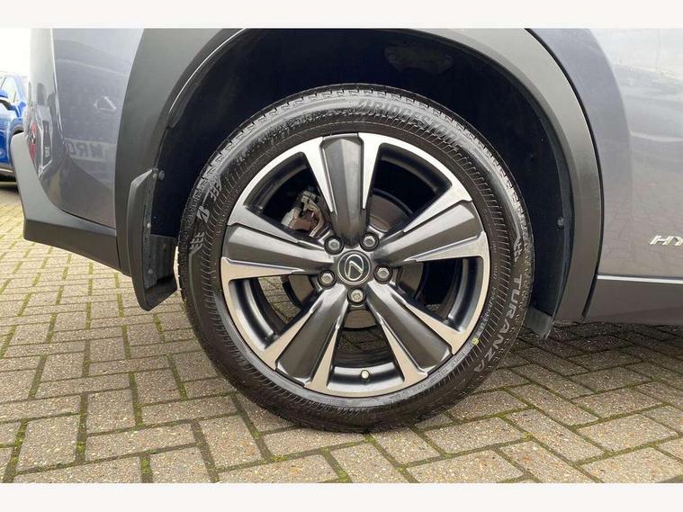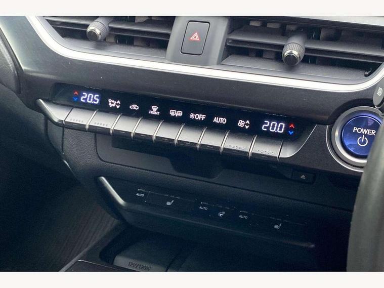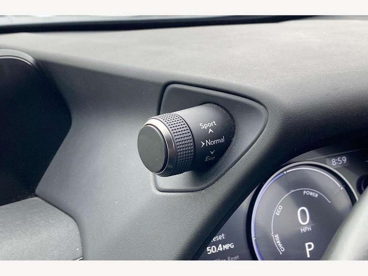 4 driving modes EV/Eco/Normal/Sport, 7" Lexus media display, 7" TFT instrument cluster, Analogue clock with GPS function, Apple car play/Android Auto, Compatible mobile phone bluetooth with audio streaming, E-call, Electric power steering (EPS) with speed sensitive features, Lane change flasher function, Lexus link connected services, Lexus safety systems + includes dynamic radar cruise control, pre collision system day and night, lane tracing assist, road sign assist, Push button start, Remote touch interface, Reversing camera with back guide lines, Trip computer, Vehicle Dynamics Integrated Management (VDIM), Vehicle Stability Control (VSC), 2 front USB and 2 rear USB charging points, 6 speakers, AM/FM and DAB radio, AUX socket with VTR compatibility, CD player, Acoustic windscreen, Aero stabilising arch mouldings, Aero stabilising rear lights, Aero ventilated wheels, Aluminium roof rails, Bi-LED (low and high beam) headlights with Auto High Beam (AHB), Body adhesive, laser screw welding and laser brazed roof structure, Electric adjustable/heated door mirrors, Front and rear one touch power windows, with anti-jam protection, Headlight cleaners, LED daytime running lights, LED front and rear fog lights, LED tail lights, Light green UV glass, Rain sensor windscreen wipers, Rear wiper, Shark fin roof aerial, Single hidden exhaust pipe, Towing preparation, 12V accessory port centre console and luggage compartment, 2 cup holders in the front and rear centre console, 2 x folding shopping bag hooks in boot, 2 x sun visors with vanity mirror and lamp, 4 x tie down hooks in the boot, 5 headrests, 6 way driver and passenger manually adjustable front seats, 60/40 split folding rear seat, Card holder installed in driver and passengers sun visors, Centre armrest with storage, Driver and passenger door pocket, Dual zone electronic climate control + Nano-E humidity sensor, Glovebox, Leather gear lever, Leather steering wheel, LED interior illumination, Map pockets in the rear of passenger's front seat, Premium fabric upholstery, Rear air vents with 2 USB chargers, Rear armrest with 2 cupholders, Storage tray under audio panel, Textile carpet mats, Tilt/reach adjustable steering column, Under deck storage, Under desk side storage, 2 x Isofix child rear seat restraints, 3x3 point rear seatbelts, Anti-lock braking system (ABS), BAS (Brake Assist System), Driver and front passenger 2 stage airbag, Driver and front passenger knee airbag, Driver/front passenger side airbags, EBD - Electronic brakeforce distribution, ECB (Electronically Controlled Brake System), Electric parking brake, Front adjustable seatbelt anchor points, Front and rear curtain shield airbags, Front outer seatbelt+pre-tensioners, force limiter+tension reduction: 3-point with active safety link to PCS, Hill start assist control (HAC), Passenger airbag cut-off device, Rear outer seatbelt+pre-tensioners, force limiter+tension reduction: 3-point with active safety link to PCS, Centre belt w/o pre tensioner+force limiter, Secondary Collision Brake (SCB), TRC (Traction Control), Tyre pressure warning, 2 x remote key fobs, Anti theft system : Alarm instruction sensor, glass breakage sensor and engine immobiliser, Locking wheel nuts, Remote central door locking, Speed sensitive auto door locking, Two motion door lock with double lock, VIN Window etching, 17" Alloy wheels, Tyre repair kit,
