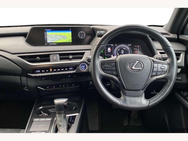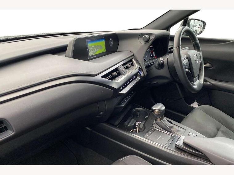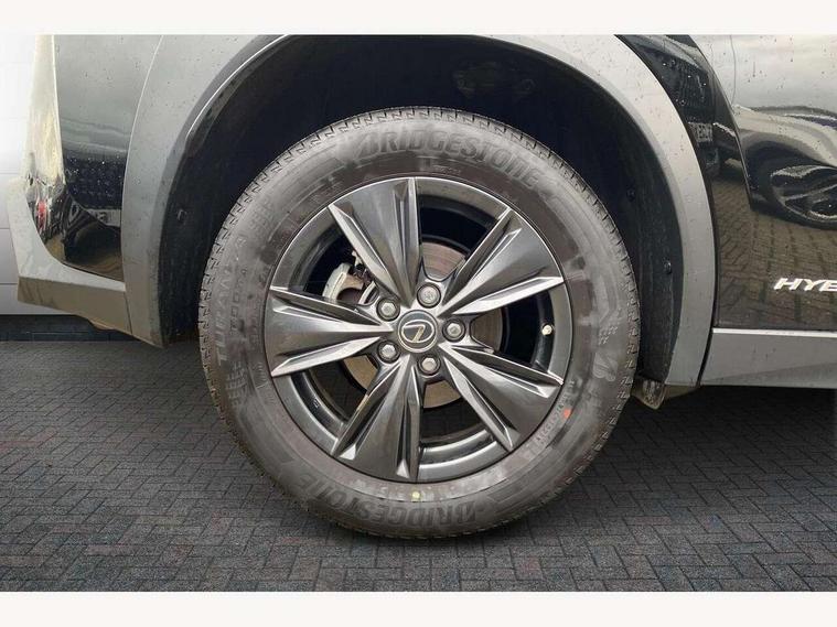 4 driving modes EV/Eco/Normal/Sport, 7" Lexus media display, 7" TFT instrument cluster, Analogue clock with GPS function, Apple car play/Android Auto, Compatible mobile phone bluetooth with audio streaming, E-call, Electric power steering (EPS) with speed sensitive features, Lane change flasher function, Lexus link connected services, Lexus navigation system, Lexus safety systems + includes dynamic radar cruise control, pre collision system day and night, lane tracing assist, road sign assist, Push button start, Remote touch interface, Reversing camera with back guide lines, Trip computer, Vehicle Dynamics Integrated Management (VDIM), Vehicle Stability Control (VSC), 2 front USB and 2 rear USB charging points, 6 speakers, AM/FM and DAB radio, AUX socket with VTR compatibility, CD player, Acoustic windscreen, Aero stabilising arch mouldings, Aero stabilising rear lights, Aero ventilated wheels, Aluminium roof rails, Bi-LED (low and high beam) headlights with Auto High Beam (AHB), Body adhesive, laser screw welding and laser brazed roof structure, Electric adjustable/heated door mirrors, Front and rear one touch power windows, with anti-jam protection, Headlight cleaners, LED daytime running lights, LED front and rear fog lights, LED tail lights, Light green UV glass, Rain sensor windscreen wipers, Rear wiper, Shark fin roof aerial, Single hidden exhaust pipe, Towing preparation, 12V accessory port centre console and luggage compartment, 2 cup holders in the front and rear centre console, 2 x folding shopping bag hooks in boot, 2 x sun visors with vanity mirror and lamp, 4 x tie down hooks in the boot, 5 headrests, 6 way driver and passenger manually adjustable front seats, 60/40 split folding rear seat, Card holder installed in driver and passengers sun visors, Centre armrest with storage, Driver and passenger door pocket, Dual zone electronic climate control + Nano-E humidity sensor, Glovebox, Leather gear lever, Leather steering wheel, LED interior illumination, Map pockets in the rear of passenger's front seat, Premium fabric upholstery, Rear air vents with 2 USB chargers, Rear armrest with 2 cupholders, Storage tray under audio panel, Textile carpet mats, Tilt/reach adjustable steering column, Under deck storage, Under desk side storage, 2 x Isofix child rear seat restraints, 3x3 point rear seatbelts, Anti-lock braking system (ABS), BAS (Brake Assist System), Driver and front passenger 2 stage airbag, Driver and front passenger knee airbag, Driver/front passenger side airbags, EBD - Electronic brakeforce distribution, ECB (Electronically Controlled Brake System), Electric parking brake, Front adjustable seatbelt anchor points, Front and rear curtain shield airbags, Front outer seatbelt+pre-tensioners, force limiter+tension reduction: 3-point with active safety link to PCS, Hill start assist control (HAC), Passenger airbag cut-off device, Rear outer seatbelt+pre-tensioners, force limiter+tension reduction: 3-point with active safety link to PCS, Centre belt w/o pre tensioner+force limiter, Secondary Collision Brake (SCB), TRC (Traction Control), Tyre pressure warning, 2 x remote key fobs, Anti theft system : Alarm instruction sensor, glass breakage sensor and engine immobiliser, Locking wheel nuts, Remote central door locking, Speed sensitive auto door locking, Two motion door lock with double lock, VIN Window etching, 17" alloy wheels, Tyre repair kit,