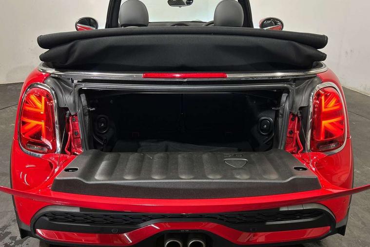 Apple CarPlay, Automatic start/stop function with brake energy recuperation, Compatible mobile phone bluetooth with audio streaming, Cruise control with brake assist, Electro-mechanical speed dependant steering assistance, Instrument cluster, MINI Driving Modes - centre toggle switch to control driving setting (sport, mid and green), Mini E-call, MINI TeleServices, On board computer, Rear park distance control, Service interval indicator, Double Vanos system, Fully variable valve control, High precision injection, Performance Control, Steptronic transmission with double clutch, 8.8" touchscreen with LED ring, FM tuner and DAB digital radio, Automatic headlight activation switch, Bonnet scoop, Chrome border honeycomb structure radiator grille with S badge, Chrome plated fuel cap, Dynamic brake lights, Electric windows, Fully electric black softtop with integrated sunroof functionality, Heated rear window, Heated windscreen washer jets, LED headlight with closed ring and daytime driving lights, Metal door sill strips with Cooper S imprint, Model logo Cooper S on right of tailgate, Rain sensor window wipers, Rear boot, Rear fog lights, Rear LED lights with union jack design, Side scuttle panel with integrated indicator, Sun/heat protection glass, Third brake light, Two central exhaust tailpipes with chrome finisher, White indicator lenses, 12V Accessory socket in centre console, 2 seat bench in 2nd row, 4 lashing eyes in luggage compartment, 50/50 split folding rear seats, Chrome interior highlights, Colour line - Carbon black, Cupholders, Easy Load boot handles, Front and rear head restraints, Front and rear isofix with front passenger airbag deactivation, Front seatback storage pockets, Glove compartment, Height and length steering column adjustment, Interior lighting with 12 different colours running across the dashboard, underneath door bezel illuminated laser engraved design on central display, Leather gearshift lever and handbrake gaiters, LED reading lights, vanity mirror lights, front foot well light and spotlight on front seats, Manual air conditioning, Mechanical seat adjustment, driver seat height adjust, forward/back and front seats backrest, Multifunction steering wheel, Single front passenger seat, Sports steering wheel, Storage compartments in doors, Sunvisors with vanity mirrors, Velour floor mats, Convertible pack with comfort access - Mini Convertible, 3 point seatbelts on all four seats, 6 Airbags - front, side and seat belt tensioners, Active rollover protection, Anti-lock braking system (ABS), DSC - Dynamic Stability Control, Front and rear disc brakes, Hill start assist, Two tone horn, Tyre pressure monitoring system, Alarm system with tilt sensor, monitoring doors, bonnet interior and tailgate, Electronic vehicle immobiliser, Keyless Go, Piano black interior trim, Tool kit, Tyre repair kit,