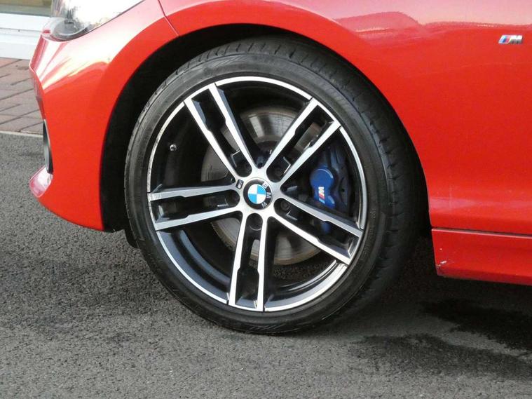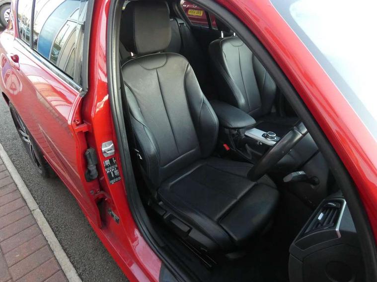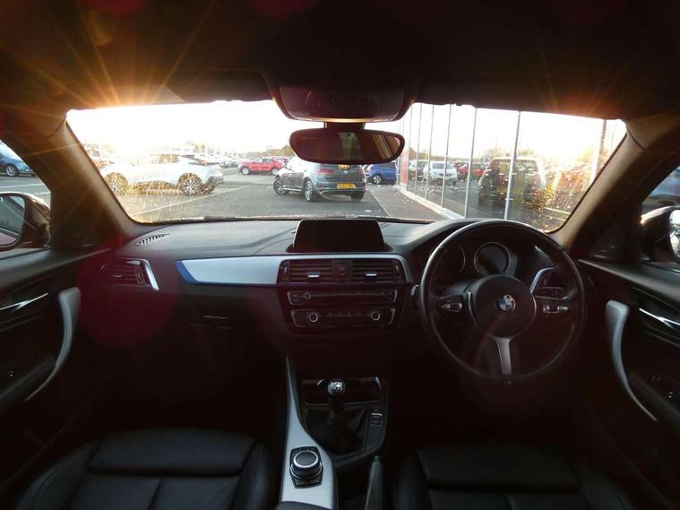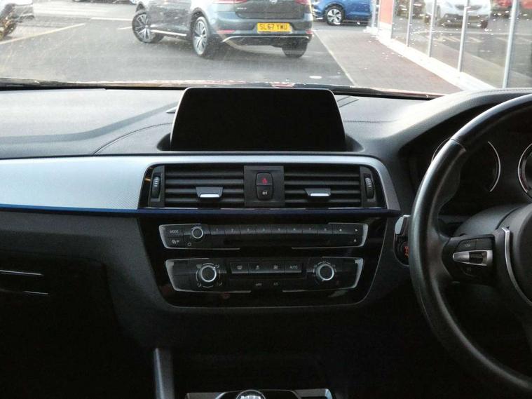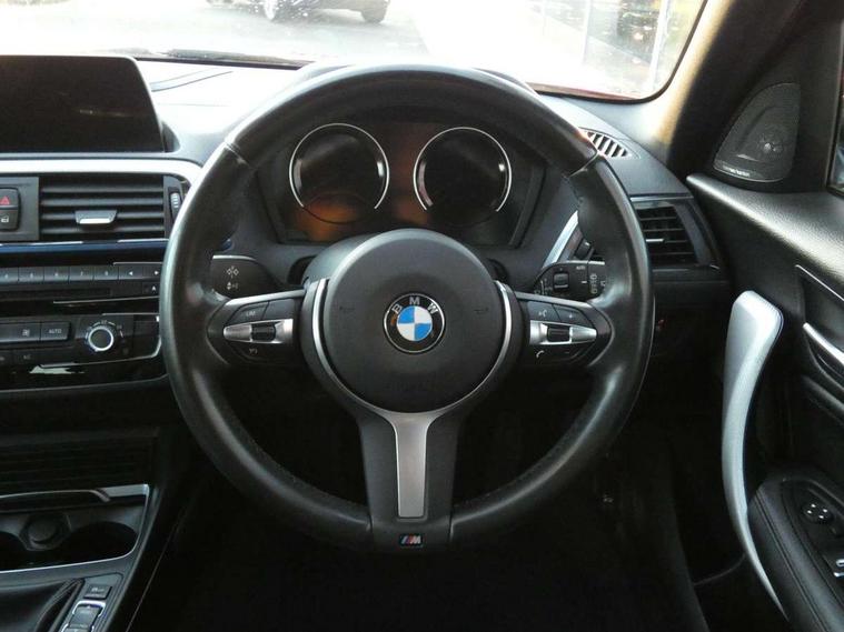 Automatic start/stop system, BMW Online services, BMW remote services, BMW Teleservices, Brake force display, Brake pad wear indicator in front and rear, Check Control warning system for monitoring of lights and door/luggage compartment open warning, Cruise control with brake assist, Eco pro mode, Instrument cluster with speedometer with miles per hour read out, tachometer and fuel gauge, Lights on warning by audio warning signal when ignition is switched off, Oil temperature display via on board computer in instrument cluster, On board computer - average speed+fuel consumption, service interval, clock/date, odometer/trip meter, outside temperature display and ice warning, On board diagnostics, Optimum shift indicator, Personal Profile, Real time traffic information, Servotronic PAS, Speed limiter, Battery age recognition function, Drive Performance Control, BMW professional radio with CD player, DAB Digital radio, Harman/Kardon loudspeaker system, Body colour door handles, Body colour front and rear bumpers, Body colour mirror caps, Body colour roof mouldings, Clear lenses direction indicator lights, Dark chrome exhaust tailpipe, Darkened rear lights with LED light bars, Daytime driving lights, Direction indicator side lights in exterior mirrors, Dynamic brake lights, Electrically adjustable heated door mirrors and washer jets, Follow me home headlights, Front and rear bumper system with replaceable deformation elements, Front and rear electric windows with open and close fingertip control, anti trap facility and comfort closing, Green tinted heat protection glazing, Headlight beam throw control, Heated windscreen washer jets, High gloss black kidney grille with black slats, High level third brake light, Lightweight engineering, M aerodynamic bodystyling, Nearside reverse light in rear light cluster, Offside rear fog lights, Rain sensor including auto headlights activation, Rear window aerial, Rear window wiper, Shark fin antenna, Sun protection glass, Visible VIN plate, Welcome lighting, 12V power socket in centre console, 12V power socket in passenger footwell, 60/40 split folding rear seat, Ambient lighting - switchable BMW classic orange/ cold white LED, Anthracite headlining, Anthracite Velour front and rear floor mats, Conditioned based service, Door sill finishers with illuminated M designation, Four grab handles integrated in roof lining, Front and rear side armrest integrated into door trim, Front folding sliding armrest with storage compartment, Front head restraints, Front sports seats with electric side bolster adjustment, Front storage compartment in centre console and in door trim, Front/rear courtesy lights with soft on/off dimming, Gearshift lever with M designation, Glove box handle with chrome surround, Glovebox, Interior light in front centre interior mirrors and rear centre auto interior light activation when door is opened when ignition switched off, Isofix child seat for two outer rear seats, Leather gear knob and handbrake grip, Luggage compartment access via BMW roundel, Luggage compartment lighting, M sports multi function leather steering wheel, Manually adjustable steering column, Multi-function controls for steering wheel, Rear folding head restraints, Sunvisors with vanity mirrors and ticket pocket, Two cupholders with sliding cover and inlay mat, Two sills lashing eyes in the luggage compartment, 3 point seatbelts on all seats, front pyrotechnic belt tensioners, stopper and belt force limiters, rear coded belt buckles, Active differential brake (ADB), electronic differential lock in DSC-OFF mode, Airbags - Front driver and passenger, front and rear head, front side, curtain head protection, Anti lock braking system (ABS) with brake assist, Automatic Stability Control (ASC), Battery safety cut-off, BMW emergency call, Brake drying, Brake energy regeneration, Braking readiness, Cornering brake control (CBC), Crash sensor activating central locking release, hazard warning lights, Driver and front passenger seat belt security check, DSC+, Dynamic brake control, Dynamic Traction Control - DTC, Front passenger manual airbag deactivation, Front ventilated brake disc, Hill start assist, M Sport braking system, Rear brake discs, Rear child proof door locks, Side impact protection, Twin horns, Tyre pressure monitoring system, Warning triangle and first aid kit, Automatic drive away locking facility, Central locking switch for all doors, fuel filler cap and luggage compartment, Locking wheel bolts, Remote central locking with two Integrate key, one button for opening and closing all lock, open and close window, button for open luggage compartment, Remote control integrated key with blue inset, Start/stop button with comfort go keyless engine start and auto start stop deactivation button, Thatcham Cat.1 alarm and immobiliser, Reduced rolling resistance tyres, Run flat tyres,