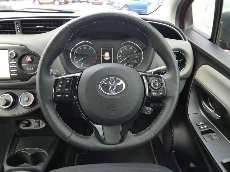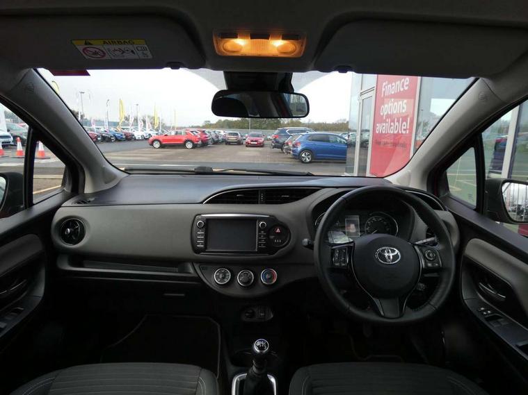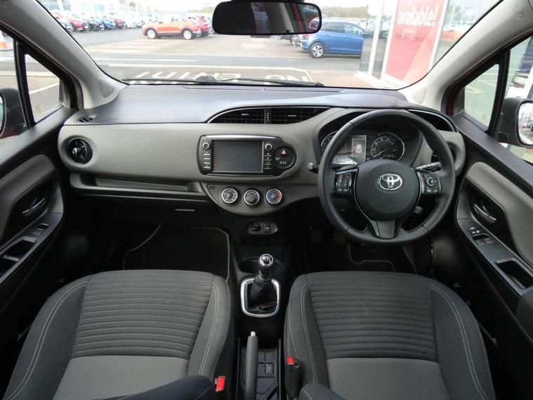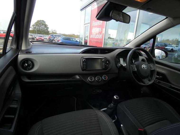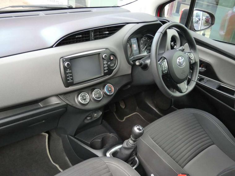 4.2" coloured LED TFT multi information display, Adjustable speed limiter with switch on steering wheel, Analogue speedometer, Analogue tachometer, Bluetooth connectivity, Cruise control with switch on steering wheel, Electric power steering, External temperature gauge, Fuel indicator with low level warning, Key reminder warning, Lights on warning, Multi information display switches on steering wheel, Reversing camera, Road sign assist - RSA, Touch 2 multimedia system with 7" display, Trip computer, 6 speakers, DAB Digital radio, Steering wheel mounted audio/telephone switches, USB connection, Auto up and down function on drivers window, Automatic wipers, Body colour bumpers, Body colour door handles, Body coloured door mirrors, Chrome fog light surround, Daytime running lights, Electric adjustable heated door mirrors, Electric front windows, Follow me home headlights, Front fog lights, Green tinted glass, Headlight cut-off reminder, LED High mounted stop lamp, Projector headlights, Rain sensitive windscreen wipers, Rear combination lights bulb type, Rear window defogger, Rear wiper, Turning signal integrated indicators in door mirrors, 12v power outlet - front, 3 adjustable rear headrests, 3 spoke leather steering wheel, 60/40 split folding rear seat, Active headrests, Boot light, Driver and front passenger personal light, Driver and front passenger Whiplash Injury Lessening seats, Driver/passenger vanity mirrors with covers, Front and rear cup holders, Front map reading lights, Front seats with lumbar support, Glovebox, Height adjustable driver's seat, Height adjustable front head restraints, Illuminated entry system, Isofix seat fixing, Leather gearshift, Manual air conditioning, Removable rear parcel shelf, Sliding front seats, Spirit fabric upholstery, Tilt/telescopic steering column, 3 point seatbelts on all rear seats, ABS+EBD+Brake assist, Collision mitigation braking system, Emergency brake light system (EBS), Front passenger airbag on/off switch, Front seatbelt reminder, Height adjustable front seatbelts with pre-tensioners and load limiters, Hill start assist control (HAC), Rear child proof door locks, Rear seat belt reminder, Road sign information display, Seatbelt warning lamp and buzzer, Supplemental restraint system (SRS) airbags - 7 airbags including driver, front passenger, curtain, side and knee airbags, Toyota safety sense including Road sign assist, Pre collision system, auto high beam and lane departure alert), Tyre pressure warning system, Vehicle stability control VSC + traction control, Engine immobiliser, Power and remote door locking, Instrument panel in grey, Space saver spare wheel,