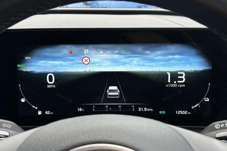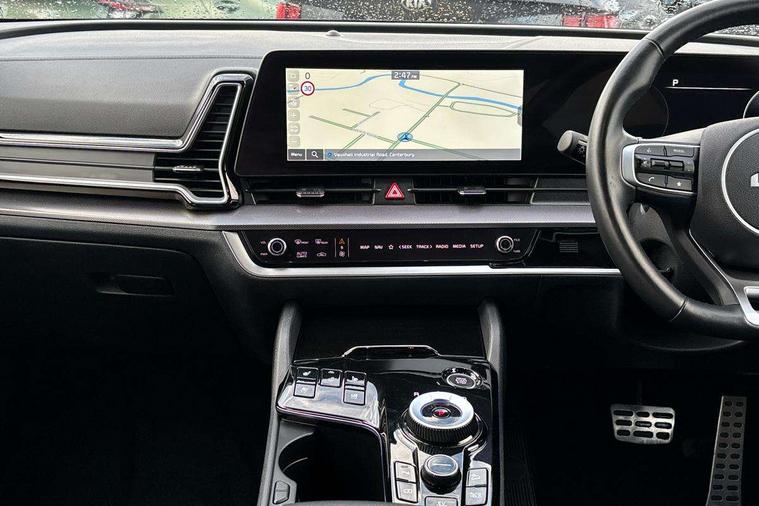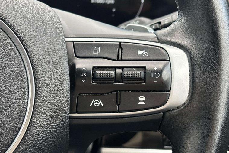 12.3" Display with navigation, 12.3" supervision colour cluster display, 360 degree around view monitor, Apple car play/Android Auto with voice control, Blind spot collision avoidance assist, Blind spot view monitor, Drive mode selector, Driver attention warning, E-call, Forward collision avoidance assist (FCA) - city/pedestrian/cyclist/junction covering, Front and rear parking sensors, Highway Driving Assist (HDA), Intelligent speed limit assist, Kia Connect (UVO), Lane Following Assist (LFA), Lane keep assist, Low washer fluid warning, Motor driven power steering, Parking collision avoidance assist (PCA), Rear cross traffic collision avoidance assist (RCCA), Remote smart parking assist, Reversing camera system integrated into centre fascia screen, Safe exit warning (SEW), Smart cruise control with stop and go functionality, Smart power tailgate, Tailgate, Trip computer, Windscreen washer level indicator, Wireless Smartphone charger, Intelligent Stop and Go, Terrain mode select (Mud, Snow, Sand), Bluetooth audio streaming, DAB Radio with MP3, Harman Kardon premium sound system, Rear USB port, Steering wheel mounted audio controls, USB C type charging ports on centre console, USB C type charging ports on side of front seats, USB port for connection of a media device, All round electric windows with drivers and front passenger auto up/down and safety function, Auto dimming rear view mirror, Automatic headlight control system, Automatic window defogger, Backlite glass heated with timer, Black and body coloured bumpers, Body colour exterior door handles, Body colour radiator upper garnish and door garnish, Dual LED headlights with adaptive driving beam, Electrically adjustable/heated/folding door mirrors with LED indicators, Front and rear chrome skid plates, Gloss black door mirrors, Gloss black radiator grille, Gloss black side sill and wheel arch body mouldings, Glossy black roof rack, GT-Line exterior styling, High beam assist, Interior electrochromic mirror, LED daytime running lights, LED front fog lamps, LED High mounted stop light, LED rear combination lamp, Panoramic sunroof with tilting and sliding function with electric blind, Rain sensing wipers with aero blades, Rear fog lamp, Rear privacy glass, Rear side wing doors, Rear spoiler, Rear wiper, Satin finished beltline, Silver window surround, Tinted rear glass, Trailer stability assist, 10 way driver/8 way passenger electrically power adjustable seats, 12V power socket in front centre fascia and luggage compartment, 3 seat bench in 2nd row, 3 x passenger assist grips, 40/20/40 split folding rear seat, All-round height adjustable headrests, Aluminium pedals, Ambient lighting, Automatic air conditioning, Black headlining, Centre console storage box, Cupholders in rear armrest, Door courtesy lamps, Drink holder at centre armrest, Driver and front passenger side sunvisors with illuminated vanity mirrors, Driver seat memory function, Drivers seat power lumbar support, Front and rear door storage, Front seat and rear pockets, Gear shift indicator, Glovebox illumination, GT-Line Interior Styling, Heated front and outer rear seats, Heated steering wheel, Interior door lock/unlock function, ISOFIX Child seat top tethers and anchor fixings outer rear seats, Leather steering wheel, LED front cabin light, LED interior personal lamp, LED lighting in overhead console, Luggage area LED light, Luggage area load cover, Luggage area parcel shelf, Luggage board, Luggage net with hooks, Metal paint interior door handles, Paddle shift controls, Rear air conditioning, Rear cabin light, Rear coat hooks, Single front passenger seat, Suede leather upholstery, Tilt/telescopic adjustable steering wheel, Ventilated front seats, Ventilation ducts to rear compartment, Active front headrests, All round 3-point seatbelts, Anti-lock braking system (ABS), Dual front side airbags, Dual horn, Dynamic brake control, Electronic parking brake with auto hold function, Electronic stability control with downhill brake control, Front passenger airbag cut-off switch, Front seatbelt pretensioners + load limiters, Height adjustable front seatbelts, Hill start assist control (HAC), Impact sensing auto door unlocking, Multi collision brake assist, Rear airbags, Rear door child safety locks, Rear seat alert system, Seatbelt reminder warning, Traction control, Twin curtain airbags, Twin front airbags, Tyre pressure monitoring system, Vehicle stability management, Advanced anti-theft system including immobiliser and alarm, Door deadlocks, Engine Start/Stop Button with Smart Entry System, Locking wheel nuts, Smart key with motion sensor, Speed sensitive auto door locking, Visible vehicle identification number, Aluminium pattern finish centre fascia and door garnish, 19" GT-Line alloy wheels, Tyre mobility kit,
