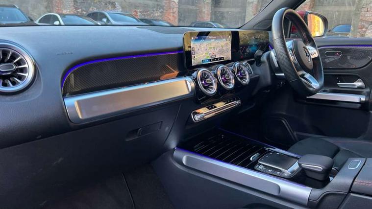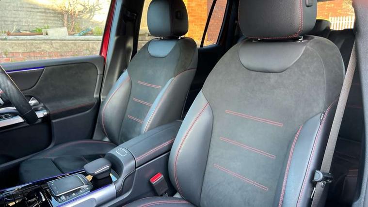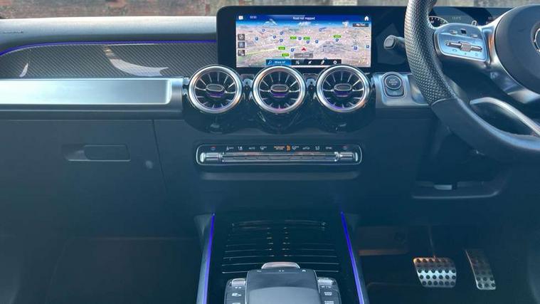 10.25" Digital instrument cluster display screen, 10.25" Digital media screen display, Active lane keeping assist, Attention assist - Monitors steering behaviour and long journey fatigue, Brake pad wear indicator warning light, Car wash mode, Cruise control with limiter, DYNAMIC SELECT with a choice of driving modes (ECO, Comfort, Sport and Individual), ECO start/stop function, Fluid level warning indicator for fuel, oil, coolant and washer fluid, Hard disk navigation, Hey Mercedes Voice activation, Lamp failure indicator, Mercedes me connect including emergency call system, accident recovery, breakdown and maintenance management, Mercedes me remote services, Outside temperature gauge, Owners manual and service booklet in English, Parameter steering system, Pre-installation of private car share, Preinstallation for parking damage notification, Radio aerial integrated into front and rear windshields, Service indicator (ASSYST), Smartphone integration with Apple CarPlay and Android auto, Speed limit assist, Trip computer in multifunction display with current consumption indicator, 23.8 litre AdBlue fuel tank, Comfort suspension, Rear axle multi-link, DAB digital radio tuner, MBUX multimedia system with DAB digital radio and touchpad including satellite navigation, Mercedes Benz sound system (225 W) with 10 speakers, 1 central speaker, speakers on doors, a tweeter on door, one sub woofer + boost amplifier, Pre installation for Mercedes Benz Link, USB (type C) port in front stowage compartment, USB (type C) ports (2) in stowage compartment, Adaptive brake lights, Aerial for GPS, AMG bodystyling door panels black grained with chrome plated inserts, AMG bodystyling front apron with chrome splitter, AMG bodystyling rear apron with diffuser optics and chrome trim element, AMG specific front and rear bumper including underride guard in high gloss chrome, Beltline strips and weather strip in chrome, Body coloured bumpers, Body coloured door handles with chrome insert for keyless entry, Body coloured door mirror caps, Electric adjustable and heated door mirrors with integrated LED side indicators, Exhaust system with dual flow exhaust pipes (non-functional), Front and rear electric windows, Headlamp assist automatic headlamp activation, Heated glass rear windscreen + timer control, High level LED third brake light, Interior mirror with black reading lamps and frameless, LED high performance headlamps with integrated LED daytime running lights, LED tail lamp, Polished aluminium roof rails, Privacy glass with dark tinting on rear side windows and rear window, Radiator grille with pins in chrome and single louvre with chrome insert, Rain sensor windscreen wipers, Rear fog lamp, Rear side wing doors, Rear wiper, Two visible tailpipe trim elements exhaust, 3 seat bench in 2nd row, 3 spoke multifunction sport steering wheel in nappa leather, Air conditioning - Two zone thermotronic luxury automatic climate control with display, AMG sports pedals with brushed stainless steel surfaces and black rubber studs, Artico man-made leather/Microcut microfibre upholstery with red contrast stitching, Automatic child seat recognition sensor, Black floor mats with AMG lettering, Black roof lining, Fore/aft adjustment rear seats, Freight packaging with tie-down hooks, Front centre armrest with stowage, Front door sills with illuminated changeable cover, Front passenger grab handle with brushed side silver chrome, Front sports seats with adjustable head restraints, Galvanished gear shift paddles on steering wheel, Heated front seats, Height/reach adjustable steering column, Interior lighting - 64 colour Ambient lighting, Luggage net on driver/front passenger seat backrest, Net in front passenger footwell, Rear armrest with two integral cup holders for drinks, Rear seat easy entry, Single front passenger seat, Stowage compartment in centre console, Stowage compartment with retractable cover, Third row of seats for two people on rear seat, Touchpad on center console, Twin front cup holders, Two outer rear seat isofix and top tether child seat fixing points, Interior lighting with light and sight pack - GLB, Keyless go comfort pack - GLB with easy pack tailgate, Mirror pack - GLB, Off-road engineering package - GLB, Parking pack - GLB, Seat comfort package - GLB, 3 rear 3 point seatbelts, Active bonnet pedestrain safety measure which detects an impact and raises bonnet by 65mm, Active brake assist includes forward collision warning system with autonomous braking, Adaptive brake assist with hold function and hill start assist, Airbags - kneebag for driver, Anti-lock braking system (ABS) with brake assist, Childproof locks manually operated for rear doors and electrically operated for rear power windows, Crash responsive emergency lighting, Curve dynamic assist, Driver and front passenger head and sidebags, Driver and front passenger windowbags, Dual stage driver and front passenger airbags, Electronic parking brake, Electronic stability programme with acceleration skid control, Front and rear seatbelt reminder, Front brake callipers with Mercedes Benz lettering, Front passenger seat occupancy sensor, Perforated and ventilated front brake discs, Tyre pressure monitoring system, Warning triangle and first aid kit, Guard 360 degree vehicle protection - Anti theft alarm system, tow away protection with visual, acoustic warning and alarm, Interior monitoring system, KEYLESS-GO Spanner communicates with the vehicle within two metres of the door, Remote central locking and crash sensor with emergency opening function, Thatcham category 1 alarm system with immobiliser and interior protection, Vehicle key with decorative surround in chrome, Black air vents with chrome surround, Carbon structure trim, 19" AMG 5 twin spoke light alloy wheels painted in high gloss black with high sheen finish, Summer tyres, Tirefit tyre sealant kit,