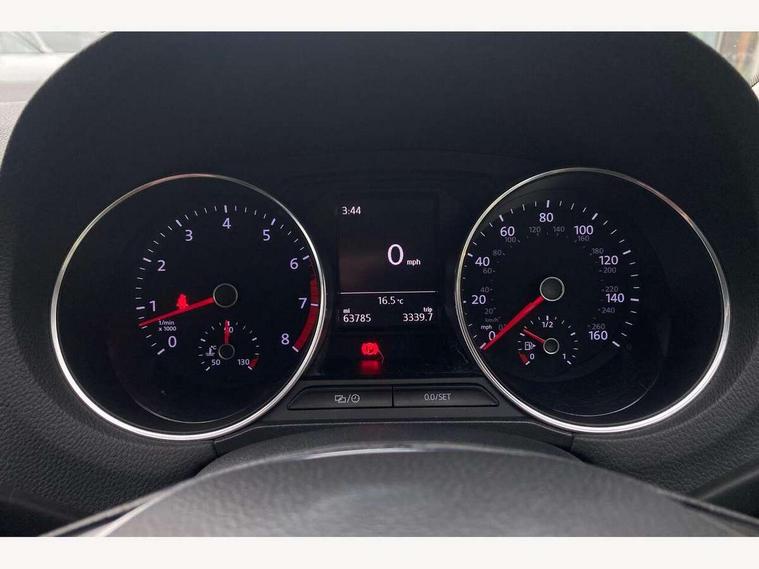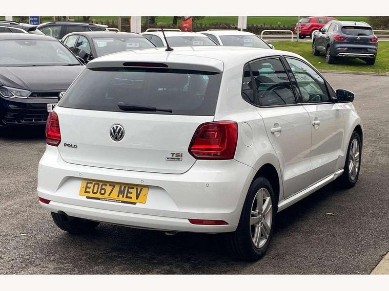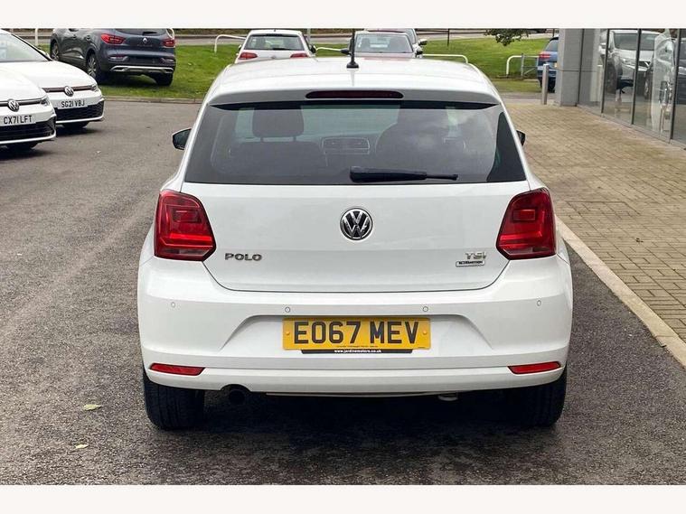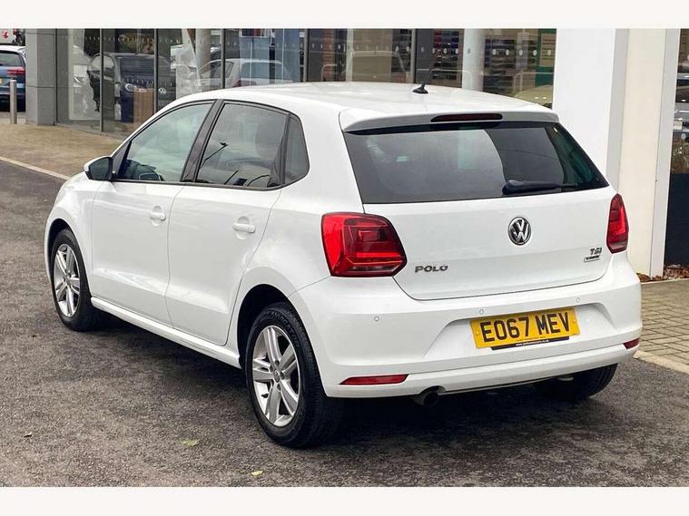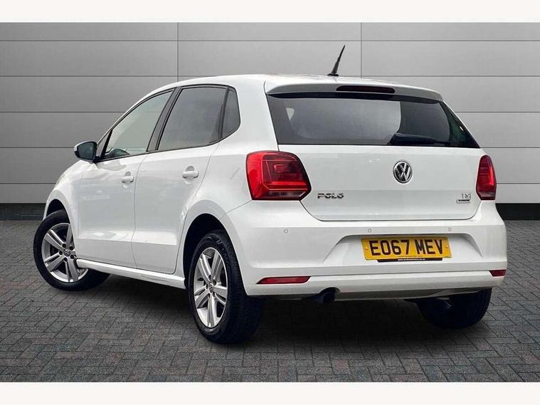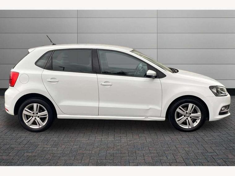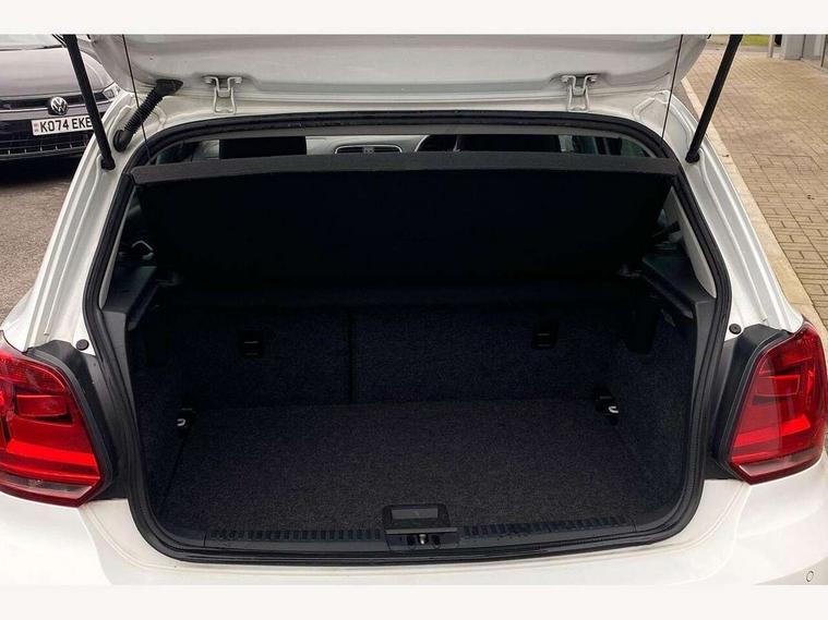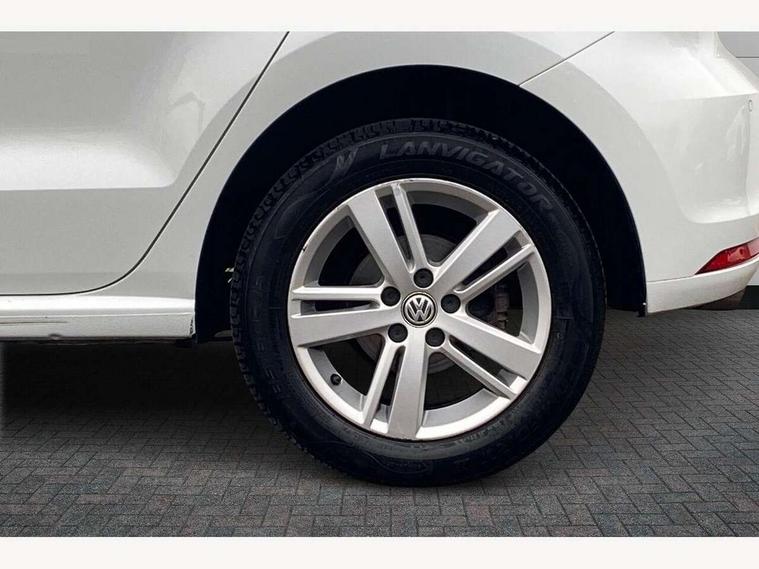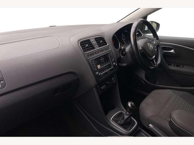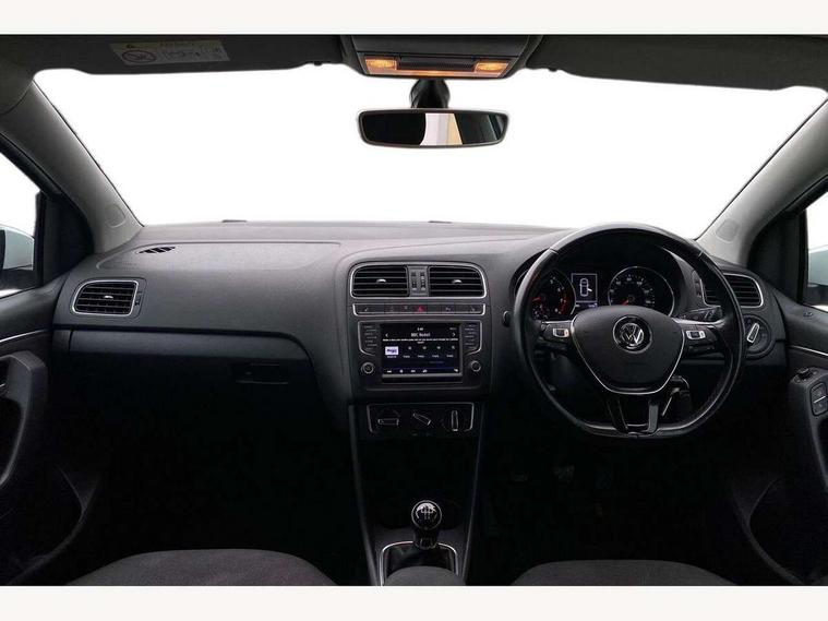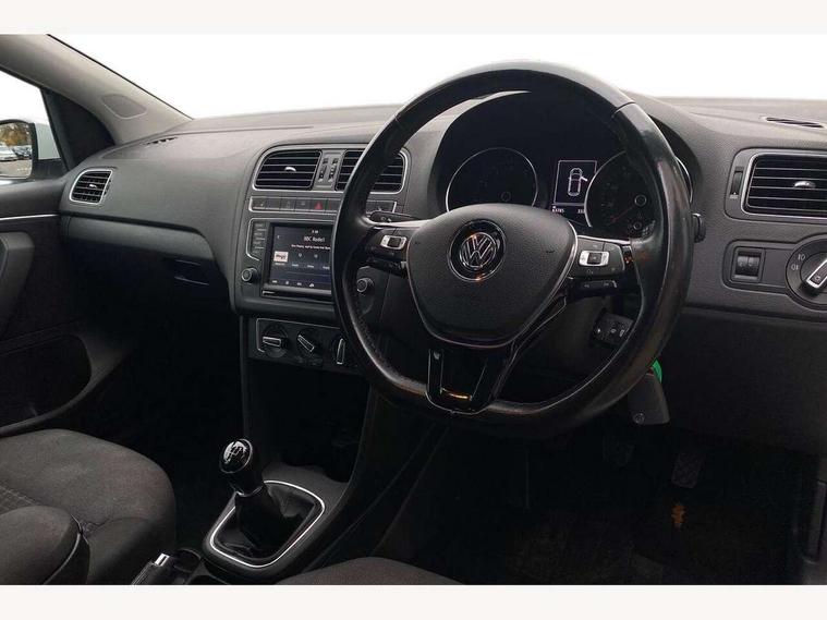 App-Connect, Bluetooth Telephone preparation, Driver alert system, Multi function display, Multifunction computer, PAS - speed related, Service interval indicator, Ultrasonic front and rear optical and audible parking sensors, Warning buzzer and light for front seatbelts unfastened, 6 speakers, Composition media system with radio, glovebox mounted CD, colour touch screen, SD card, aux-in, USB, multimedia interface, DAB Digital radio, Black grille with chrome surround, Body colour bumpers, Body colour door handles, Body colour door mirrors, Body coloured side sills, Chrome trimmed front air intake surrounds, Electric folding door mirrors, Electric front windows, Electric operated/heated door mirrors, Front fog lights with static cornering function, Front wash/wipe with interval delay, Heat insulated tinted glass 65% light absorbing from B pillar back, Heated rear window with auto timer, Rear electric windows, Rear windscreen washer and wiper with interval delay, 12V power socket in centre console, 2 bag hooks in luggage compartment, 2 cupholders, 3 rear head restraints, 3 spoke steering wheel, 4 grab handles, 60/40 split folding rear seat, Centre console storage, Chrome interior door handles, Driver and passenger sunvisors, Driver seat height adjust, Dust/pollen filter, Front door pockets, Front passenger seat height adjust, Front seat backrest storage nets, Front/rear reading lights, Glovebox, Height/reach adjustable steering column, Illuminated vanity mirror, Interior light with delay, Isofix Preparation 2 Rear child seats, Luggage compartment cover, removable, Luggage compartment lighting, Matt chrome gear lever gaiter surround, Multifunction leather steering wheel with leather gear knob/handbrake grip, Storage compartment in front doors, Storage compartment in rear doors, Sunglasses holder, Variable boot floor, Light and sight pack - Polo, 3 point height adj front seatbelts + pretensioners, 3x3 point rear seatbelts, ABS, Automatic post collision braking, Driver/front passenger airbag, Driver/Passenger whiplash optimised head restraints, ESC - Electronic Stability Control + traction control, ESP with EDL + ASR, Hill hold control, Hydraulic Brake Assist (HBA), Tyre pressure monitoring system, Alarm with remote central locking and interior protection, Electronic engine immobiliser, Air vents in Matt chrome, Matt chrome interior trim, 15" steel spare wheel,