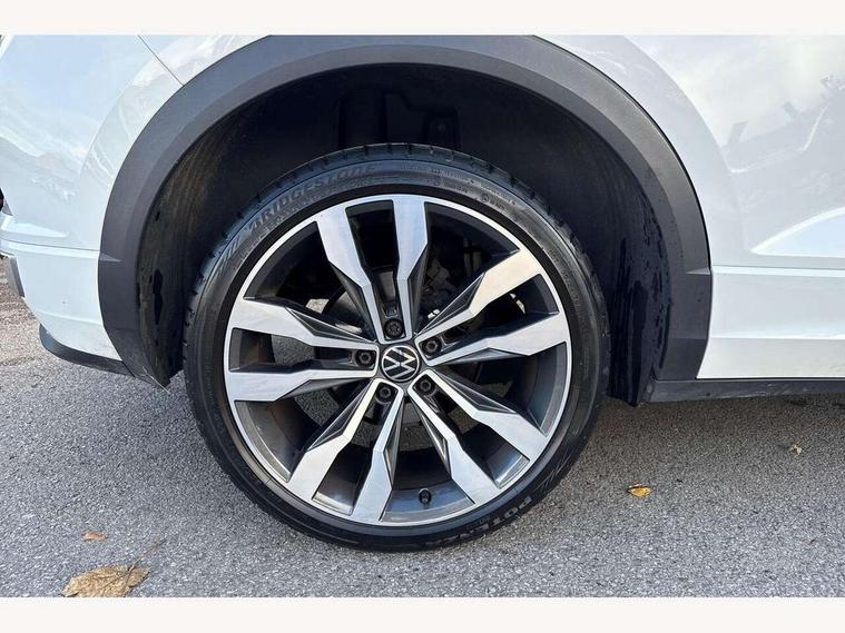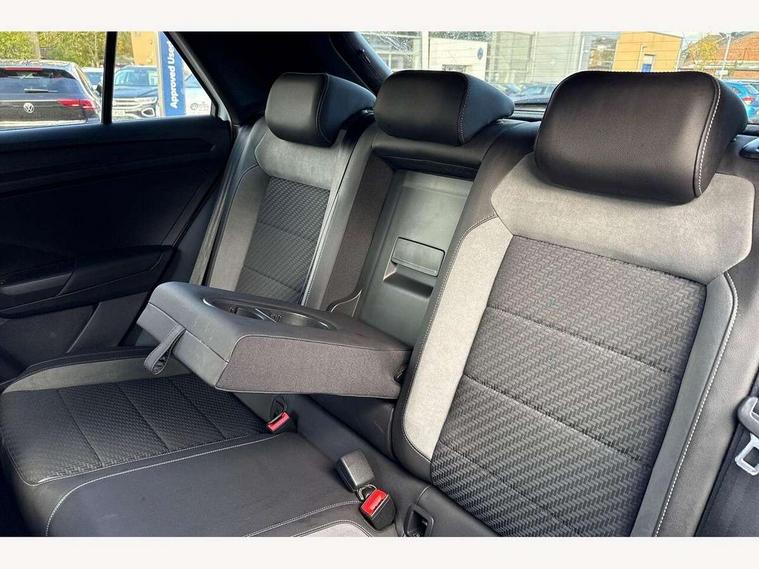 'Lights On' Reminder warning buzzer, Adaptive cruise control with front assist, radar sensor controlled distance monitoring, city emergency braking, Automatic start/stop system, Bluetooth telephone and audio connection for compatible devices, Car information display, Digital Cockpit Pro - Active info display, Discover navigation including 8" touch screen display, streaming and internet, Driver alert system with audible and visual fatigue detection system, Driver tips and journey analysis, Lane assist with warning text instrument cluster, Modified key software - reduce switch off time for key status change to Long no motion, Multifunction computer with visual gear change recommendation for fuel consumption, Service interval indicator, Think blue trainer driver tips and journey analysis, Voice activation, Wireless app connect for apple carPlay, Battery regeneration during braking, Centre arm rest including USB type C interface and USB charging socket, DAB Digital radio, Diversity antenna for FM reception, Front USB type C Interface 2X and USB charging socket, Music playback - MP3, WMA and AAC files, Premium USB cable in choice of either Apple or Android smartphone compatibility, SD card slot, Simultaneous pairing of 2 compatible mobile devices, SMS functionality - read, compose and send SMS messages using touch-screen display, Storage compartment with longitudinal and height adjustable in armrest and two rear air vents, Three route options - Fast, Short, Eco, Title and cover art display, Auto dimming interior rear view mirror, Automatic hazard lights activation under emergency braking, Black grained lower door protectors, Body colour door handles, Body colour rear roof spoiler, Chrome effect left and right trapezoid exhaust tailpipe fascia surround, Chrome trim on upper and lower radiator grille, Dusk sensor, Electrically foldable, adjustable and heated door mirrors with puddle lights and reverse activated kerb-view adjustment on passenger's door mirror, Front and rear electric windows, Front fog lights with static cornering function, Front windscreen wiper with intermittent wipe and 4 position delay, Fully galvanised body, Heated rear window, High level 3rd brake light, LED darkened rear light clusters, LED dipped and main beam headlights with automatic range adjustment including signature LED daytime running lights, LED rear number plate lights, Manual coming/automatic leaving home lighting function, Rain sensor, Rear tinted glass from B-pillar backwards approx 65% tinted, Rear wash/wipe with intermittent wipe setting, Volkswagen roundel, 2 Front and rear reading lights incorporating LED technology, 3 rear head restraints, 4 load lashing points in luggage compartment, Aluminium pedals, Ambient lighting in front footwell and light strips below trim in front doors, Black roof lining and sun visors, Branded points of interest, Carbon flag cloth upholstery, Climate control - 2 zone electronic air conditioning with automatic air recirculation and allergy filter, Drawer under drivers seat, Front + rear carpet mats, Front cupholders x 2, Front seat back storage pockets, Front sports seats with R-Line logo on seat backrest, Glovebox, Height adjustable front seats, Height/reach adjust steering wheel, Illuminated vanity mirrors, Instrument lighting, white adjustable panel illumination, Interior light delay, Isofix easy fit child seat preparation for 2 outer rear seats, Load through provision with single cup holder when folded down, Luggage compartment cover, removable, Luggage compartment lighting, R Line badge, Split folding rear seat backrests with centre armrest, Storage compartment in left and right luggage area, Storage compartment in rear doors, Storage compartments in driver and front passenger doors, Three spoke multi-function leather trimmed steering wheel and gearknob, Unique R Line door sill protectors, R line styling pack - T-Roc, Winter pack - T-Roc, 3 rear three point seatbelts, ABS, Curtain airbags, Driver and front passenger safety-optimised head restraints, Drivers and front passengers airbags with passengers deactivation switch, Drivers seatbelt reminder, Electronic parking brake with auto hold, Electronic stability control (ESC) includes ASR, EDL, EDTC and trailer stabilisation function, Front seat side impact airbags, Predictive pedestrian protection, Rigid safety cell with front and rear crumple zones, Three point height adjust front seatbelts + pretensioners, Tyre pressure loss indicator, Ventilated front and rear disc brakes, Volkswagen roadside assistance, Alarm with remote central locking and interior protection, Electronic engine immobiliser, Remote central locking with 2 remote folding keys, Shadow grey decorative inserts in dash and door panel, 19" Suzuka alloy wheels with low rolling resistance tyres and anti wheel bolts,