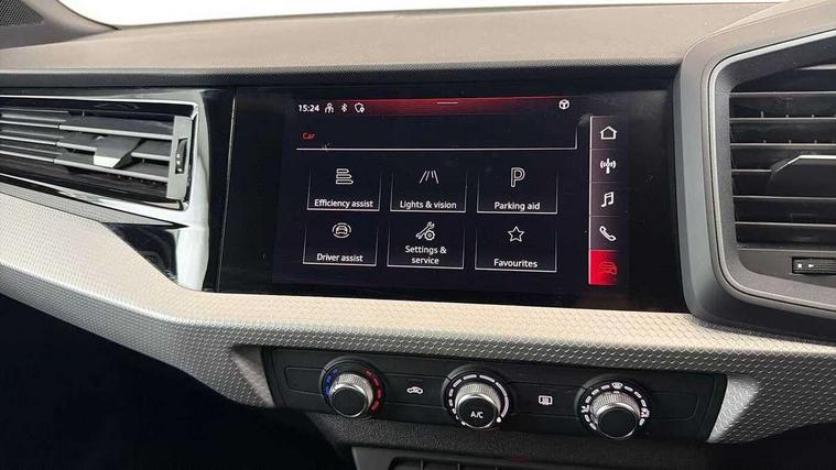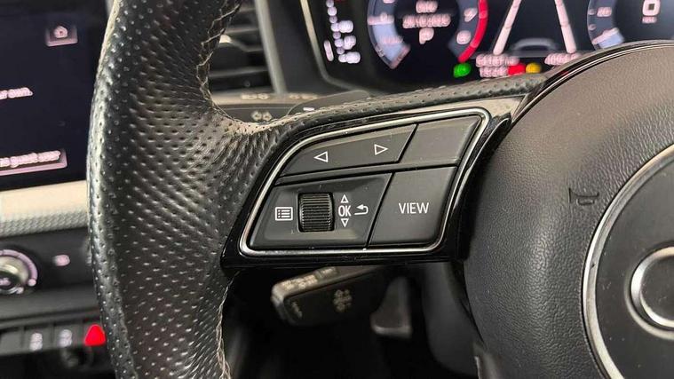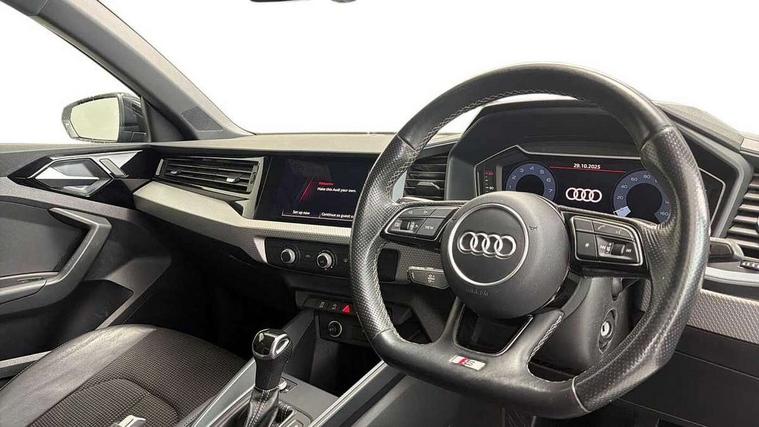 10.25" Digital instrument cluster display classis style instrument dials + speed, odometer, time, outside temperature, telephone menu + fuel level warning, Audi connect safety emergency and service including E-call, Audi smartphone interface with connect compatible smartphone via USB directly MMI display + Nav, music, third party apps controlled via MMI controller, Automatic start/stop system, Bluetooth interface, Cruise control, Driver's information system, Electromechanical power steering, Lane departure warning system, Service interval indicator, Speed limiter, Voice control system, Washer fluid level indicator, Sports suspension, 1 x SDXC card reader, 2 x USB type C connection points, DAB Digital radio, MMI radio plus with 8.8" colour MMI display screen and MMI touch, Auto dimming rear view mirror, Black door mirrors, Black side skirts, Door sills with aluminium inlays and S Line logo, Electric front and rear windows, Electrically adjustable, heated, folding door mirrors with integrated LED side indicator, Front side air inlets in grained matt black and C frame in titanium black, Heat insulating glass windscreen and side windows, Heated rear windscreen, LED headlights with LED rear lights + dynamic rear indicators + headlight adjustment and high beam, turning light + LED daytime running lights, Radiator protective grille frame in matt aluminium silver, Rain and light sensors, Rear fog lights, Rear wiper, Side front spoiler lips in grained matt black, 12V socket in centre console with two cup holders, 3 rear seats with headrests, 3 spoke flat bottomed multi-function plus leather steering wheel with S badging, grips in preforated leather, contrast stitching and paddle shift, 40:60 Split folding rear seat or folded fully, Black cloth headlining, Driver and passenger seat with manual height adjust with forward and backwards adjustment, Front and rear black floor mats with contrast stitching in fine silver, Front head restraints, Height and reach adjustable steering wheel, ISOFIX child seat mounting for front passenger and outer rear seats including top tether attachment point of outer rear seats, Leather gear knob with aluminium trim, Luggage compartment light with front and rear reading lights, Manually adjustable lumbar support in front seats, Stainless steel pedals, Black styling pack - A1 Sportback Black Edition, LED interior lighting pack - A1, Luggage compartment pack - A1, 3x3 point rear seatbelts, Audi pre-sense front with pedestrain and cyclist recognition, Brake assist function, Driver and front passenger airbag with front side and head airbags, Electronic Stability Control including ABS, EBD, ASR and EDL, Front and rear seatbelt reminder, Front passenger airbag deactivation switch, Hill hold assist, Seatbelt height adjustment for front seats, Seatbelt monitoring, Tyre pressure warning light, Warning triangle and first aid kit, Anti theft alarm, Anti theft wheel bolts and loose wheel warning, Immobiliser, Remote central locking with 2 foldaway keys, Aluminium trim for control switches, air vents and digital instrument cluster, Silver grey inlays polygon structure in diamond paint finish, Structured grey accent areas including air vents, door handle recesses and centre console in quartz paint finish, 18" 7 spoke rotor design alloy wheels in gloss anthracite black, diamond cut finish,