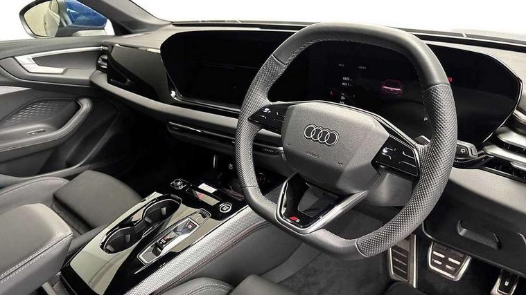 Adaptive cruise control, Advanced driver attention and fatigue montior, Audi application store, Audi assistant, Audi connect emergency call and service, Audi drive select, Audi smartphone interface, Audi virtual cockpit plus with 11.9" OLED colour display, Automatic start/stop system with coasting functionality, Camera based traffic sign recognition, Intersection assist, Lane departure warning, MMI navigation plus with high resolution 14.5" OLED touchscreen colour display, Park assist plus, Parking system plus with 360 display, Progressive steering with servotronic, Rear view camera, Swerve assist and turn assist, Traffic sign based speed limiter, Sports suspension lowered by 20mm, 2 USB-C ports in both the front and rear, Audi sound system impressive sound with 10 loudspeakers including centre speaker and subwoofer, 6-channel amplifier with a total output of 180 watts, DAB digital radio reception, Smartphone compartment with wireless charging, Aluminium roof rails, Aluminium window trims, Auto dimming rear view mirror, Body colour door mirrors, Door mirrors - electrically adjustable, heated, folding and auto dimming on both sides, Front and rear electric windows, Front door sill trims with aluminium inlays, illuminated with 'S' logo, High beam assist, LED headlights Plus incl. digital daytime running lights, turning light, all-weather light, motorway light, manouevring light and intersection light, LED rear lights pro incl. dynamic rear indicators and illuminated light strip with animated coming and leaving home function, LED third brake light, Privacy glass, Rear and side windows with heat insulating glass, Rear side wing doors, Rear wash/wipe, S Line badges on the front wings, S line bumpers, radiator grille and diffuser in phantom black and diffuser insert in matt anthracite, White rhombus logo projection light in exterior mirrors, Windscreen with acoustic glazing, 3 rear headrests, 3 seat rear bench, 3 spoke leather steering wheel with multi-function buttons with touch control, flattened on top and bottom, with S badging and contrast stitching, 3-zone automatic climate control, 40:20:40 split folding rear seat bench with centre armrest and cup holders, Comfort front centre armrest, Front and rear floor mats, Front seats with manual adjustment for position and 4-way electric lumbar support, Front sport seats with integrated headrest and S embossed logo, Headlining in black cloth, Heated front seats, i-Size child seat mounting on the front passenger side and outer rear seats, i-Size and top tether on the outer rear seats, Luggage compartment lid, electrically opening and closing, Manual steering column height and depth adjustment, Single front passenger seat, Stainless steel pedals and footrest, Steering wheel grips in perforated leather and shift paddles, Ambient lighting package plus - A5, 3x3 point rear seat belts, Driver airbag, Electric child safety locks, First aid kit with warning triangle and vests, Front emergency brake assist, Front passenger airbag, Front passenger airbag deactivation, Front side airbags with head airbag system and front interaction airbag, Hill hold assist, Seat belt monitoring with rear seat occupant reminder, Tyre pressure loss indicator, Anti theft alarm, Anti-theft wheel bolts, Keyless Go, Accent surfaces and control buttons in gloss black, Black dashboard with contrast stitching, Inlays in matt brushed aluminium with linear embossing, anthracite, Softwrap in leatherette with contrast stitching, Upper and lower interior elements in leatherette, Tyre repair kit,