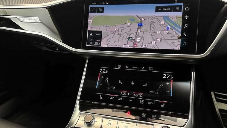 Audi connect safety and service (e-call), Audi connect with Amazon Alexa Integration, Audi drive select, Audi parking system plus - acoustic and visual park assist system for front and rear, Audi smartphone interface, Audi virtual cockpit - 12.3" high resolution LCD digital instrument cluster display, Automatic start/stop system with coasting functionality, Bluetooth interface, Colour driver's information system display, Electric boot lid release, Lane departure warning system, MMI nav plus with MMI touch + 10.1" and 8.6" HD haptic touch screen/3D city models/country information/online map/route info and personal route assist, Operating buttons in black, glass look with haptic feedback, Power operated tailgate, Progressive steering, Rear view camera, Service indicator, Voice control system, 24 litre AdBlue tank, Diesel particulate filter, Sports suspension, Audi music interface - 2 USB ports with charger and data functions, Audi sound system with 6 channel amplifier, 180 watt amplifying capacity and 10 loudspeakers including subwoofer, Auxiliary input socket, DAB digital radio module, Coming/leaving home animations in front and rear, Frameless auto dimming interior rear view mirror, Front and rear electric windows, Gloss black highlights on the exterior area of the Audi Single frame, Gloss black highlights on the front and rear bumpers, Gloss black highlights on the radiator grille, Gloss black highlights on the side windows trim strips, HD Matrix LED headlights with dynamic front and rear indicators, Headlight washers, Heat insulating glass in side and rear windows, Rain and light sensors, Rear side wing doors, Rear wiper, Retractable rear spoiler, S line air inlet design with inlay in high gloss black, S Line badge on front fender, S line badge on front grille, S Line Black rear diffuser with chrome inlays and rear grille, S Line side skirts, Signature LED daytime running lights, Third brake light, Towbar preparation, Windscreen with heat-insulating glass, 2 zone deluxe electronic climate control, 4-way electric lumbar support, 40/20/40 split folding 3 seater rear seat bench with rear centre armrest, Black cloth headlining, Electrically adjustable front seats - driver seat with memory, Front and rear headrests, Front centre armrest, Heated front seats, Height/reach adjust steering wheel, Illuminated door sill trims with S logo, Illuminated sun visors with vanity mirrors, ISOFIX child seat mounting and top tether in front and outer rear seats with front passenger airbag deactivation, Leather gear knob, Leatherette upper instrument panel and door shoulders, Luggage compartment floor, S line front and rear floor mats with contrast stitching, Single front passenger seat, Stainless steel pedals and foot rest, Tool kit and car jack, LED interior ambient lighting pack - A7, Non smoking pack - A7, 3 point seatbelts on all seats, Audi pre-sense front, Driver and passenger airbags, Electromechanical parking brake, Electronic stabilisation control including ABS, ASR and EDL, Extended pedestrian protection measures, Hill hold assist, Manual child lock in rear doors, Seatbelt monitoring, Tyre pressure warning light, Warning triangle and first aid kit, Anti theft alarm with tow away protection, Anti-theft wheel bolts and wheel loosening detection, Immobiliser, Keyless Go, Preparation for tracking system, Remote central locking, Carbon twill inlays, 20" 5 double arm design Audi sport cast aluminium high sheen matt grey look alloy wheels,