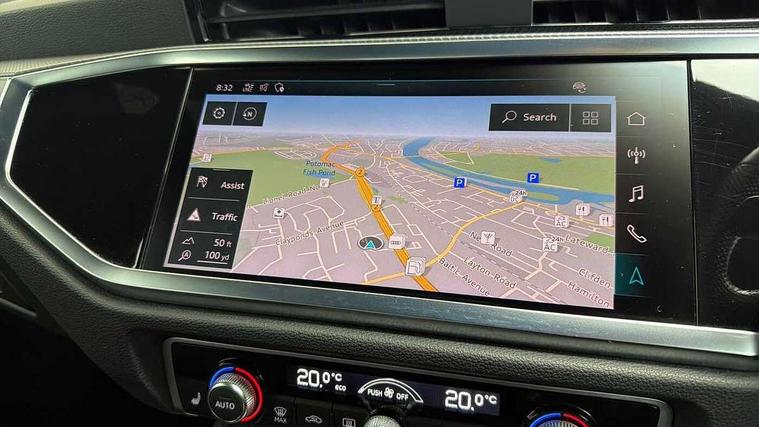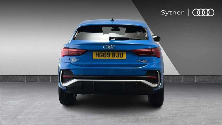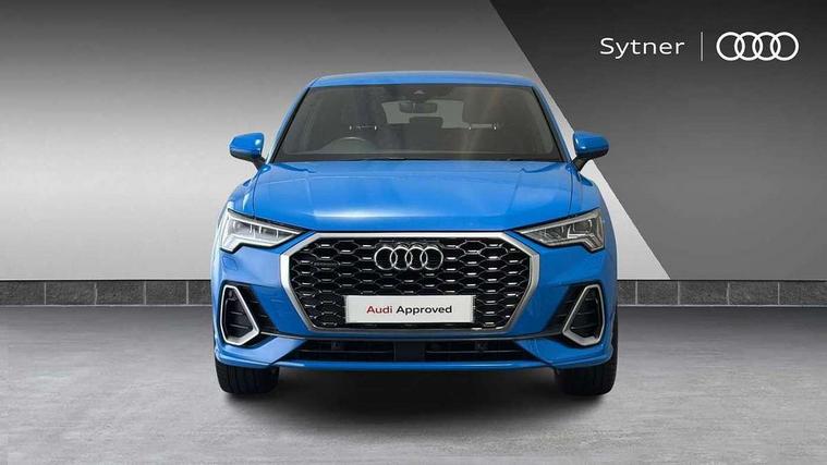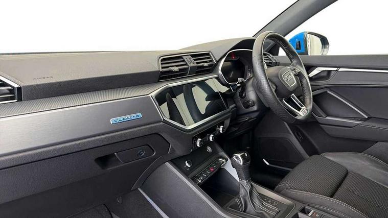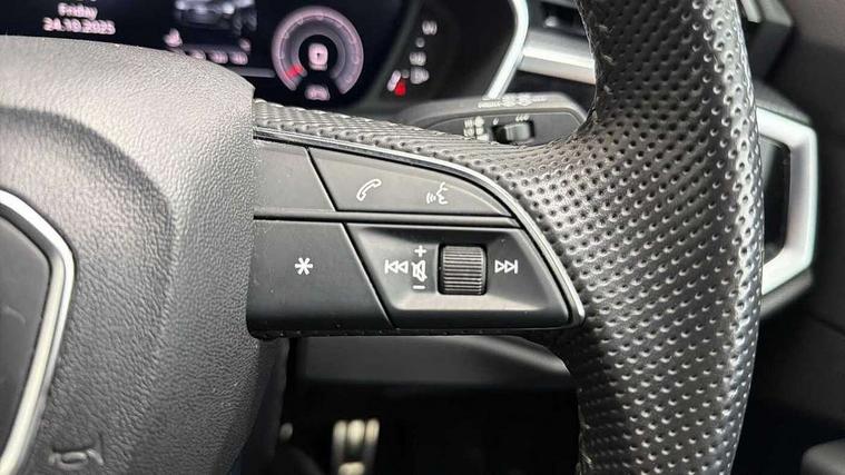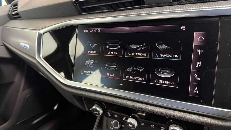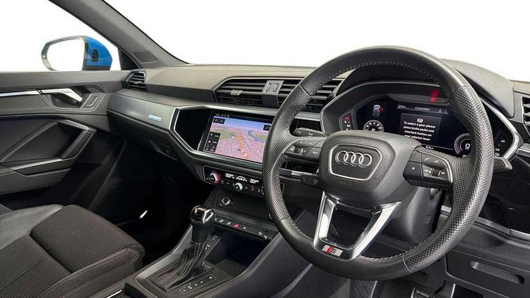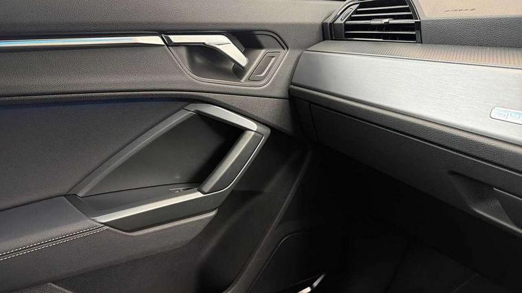 Audi connect safety and service (e-call), Audi drive select, Audi lane departure warning, Audi side assist, Audi smartphone interface, Audi Virtual Cockpit - 10.25" display, Bluetooth interface, Camera based traffic sign recognition, MMI Navigation Plus with high resolution 10.1 inch touchscreen colour display, Power operated tailgate, Progressive steering, Service interval indicator, Start stop system with recuperation, Voice control system with natural language interaction, Sports suspension, 1 x USB type C and 1 USB type A charging points, 6 passive loudspeakers, DAB digital radio module, Acoustic windscreen, Aluminium window trim, Auto dimming frameless rear view mirror, Diffuser grille in grained matt black, Diffuser trim in selenite silver, Electrically folding, adjustable and heated door mirrors with integrated LED side indicators and kerb view function for passenger side, Front and rear electric windows, Front fog lights, Front side air inlets in selenite silver, Front underbody protection in manhattan grey paint finish, Grille surround in aluminium silver matt, High gloss black finish B and C pillars, LED headlights with LED daytime running lights and dynamic rear indicator, LED rear lights, Privacy glass dark tinted rear and rear-side windows (from B-pillar backwards), Radiator grille in titanium black with inlay in matt aluminium silver, Rain and light sensors, Rear underbody protection in matt black, S line badges on front wings, Side skirt insert in matt Platinium grey, 12V socket in rear centre console, 40:20:40 folding with manual adjustment for 60:40 forwards/backwards position and backrest angle, Adjustable rear seat bench/backrest with centre armrest and cupholder, Black cloth headlining, Dual zone climate control, Front and rear black floor mats with contrast stitching, Front and rear headrests, Front and rear roof module including reading lights, Front centre armrest, Glove compartment lighting, Illuminated door sill trims with S logo, ISOFIX child seat mounting and Top Tether with front passenger airbag deactivation, Luggage compartment light, Manual front seats with height adjustment, Perforated leather gearknob, Stainless steel luggage compartment sill finisher, Stainless steel pedals, Non smoking pack - Q3, 3x3 point rear seatbelts, 6 airbags - Driver, front passenger, curtain and side windows, Electrically operated child locks on rear doors, Electromechanical parking brake, Electronic stabilisation control including ABS, ASR and EDL, Hill descent control, Hill hold assist, Pre sense basic, Seatbelt monitoring, Tyre pressure warning, Warning triangle and first aid kit, Anti theft alarm, Anti theft wheel bolts, Audi pre-sense front with pedestrain and cyclist recognition, Remote central locking, Dark matt brushed aluminium inlay, Leatherette door armrest, MMI touch colour display in glass look, black with surround in aluminium look,