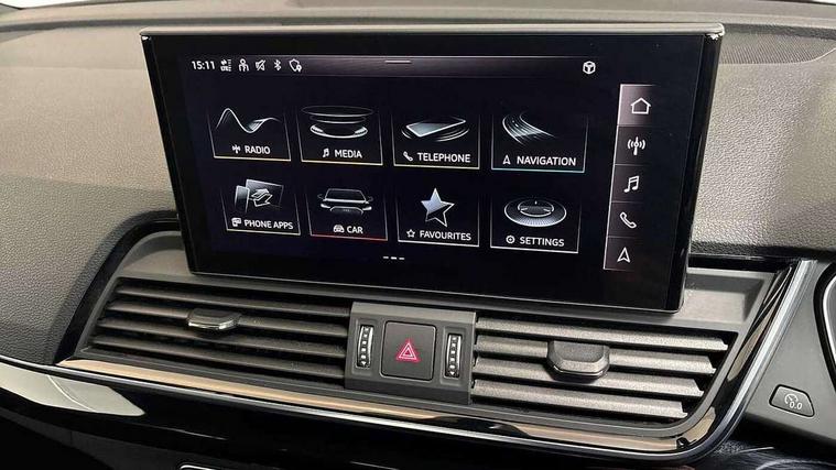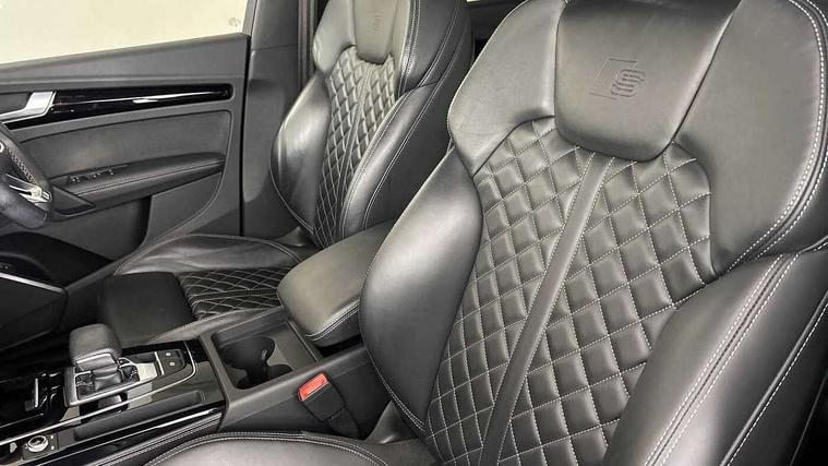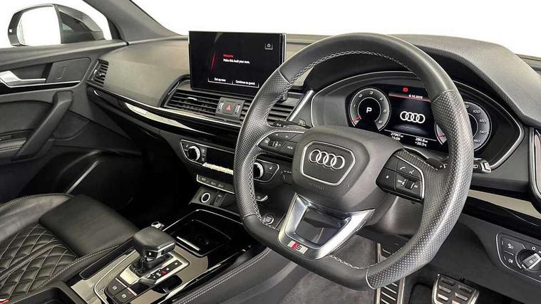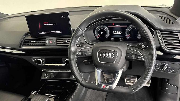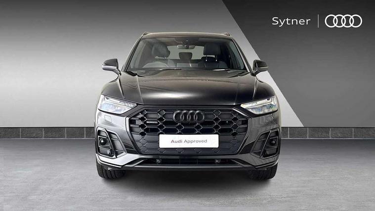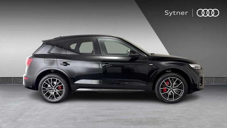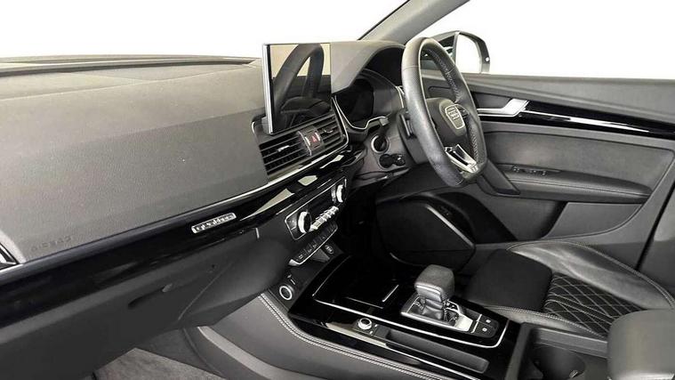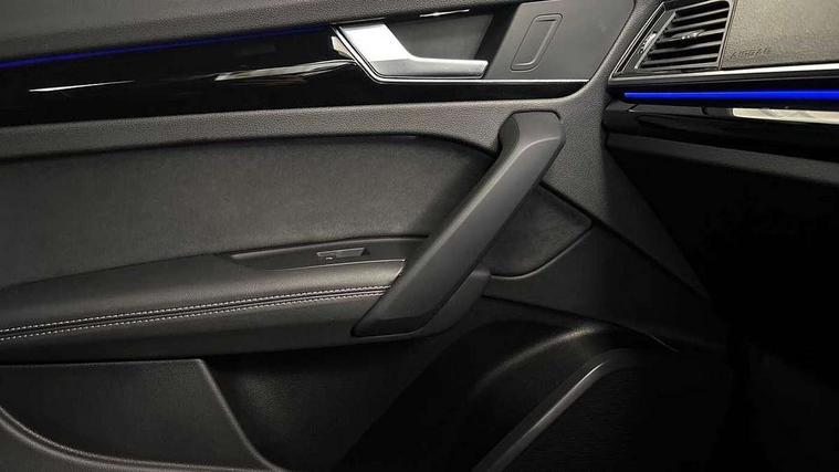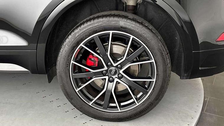 Acoustic front and rear parking sensor, Audi connect safety and service (e-call), Audi drive select, Audi virtual cockpit plus with 12.3" screen and three different layout designs, Audi wireless smartphone interface, Automatic start-stop system with coasting functionality and efficiency programme, Bluetooth interface, Electro - mechanical power assisted steering, MMI navigation plus with 10.1" touch screen, Power tailgate, Reversing camera, Service interval indicator, Voice control system with Audi hotword activation "Hey Audi", Diesel particulate filter, Quattro on demand, S line sports suspension, 2 x USB charging port with aux input socket, DAB Digital radio, Acoustic windscreen, Audi beam with Audi rings logo, Audi matrix LED headlights with dynamic front and rear indicators, Audi rings at front and rear in black, Audi rings decal on rear doors, Auto dimming rear view mirror, Automatic headlight adjustment, Automatic headlights and windscreen wipers, Black door mirrors, Black roof rails, Body colour bumpers, Body colour underbody protection, Chrome plated exhaust trims, Door side sills in carbon, Electric adjustable/heated/folding door mirrors, Front air inlet surrounds in titanium black, Front and rear electric windows, Headlight washers, High gloss black B pillar trims and triangular rear door trim, Metallic paint, Rear chrome trim strip below lights, Rear privacy glass and rear side windows, Rear spoiler, Rear wiper, Roof bars, Without model and engine badging at rear, 3 rear headrests, 4 way electric lumbar support for driver and front passenger, 40:20:40 split folding rear seat with rear centre armrest, Black cloth headlining, Contrast stitching on seats, steering wheel and gear lever gaiter, Deluxe 3 zone electronic climate control, Electrically adjustable front seats, Fine Nappa leather upholstery with diamond pattern contrast stitching + front sport seats with S embossed logo, Front centre armrest, Front/rear floor mats, Gear lever in black leather, Heated front seats, Height adjustable front head restraints, Height/reach adjustable steering column, Illuminated door sill trims with S logo, ISOFIX child seat mounting and top tether, Luggage compartment cover, Rear seat bench plus, Removable luggage compartment floor, Stainless steel pedals, Sunvisors with vanity mirrors, Black styling package - Q5 Edition 1, Extended interior upholstery pack - Q5, Extended LED Interior multi coloured Lighting Pack - Q5, 3 point seatbelts on all seats, 6 airbags - Driver, front passenger, curtain and side airbags, Electrically operated child locks on rear doors, Electromechanical parking brake, Electronic stabilisation control including ABS, ASR and EDL, Front and rear brake calipers painted in red, Front passenger airbag deactivation, Hill descent control, Hill hold assist, Multi collision brake assist, Pop-up bonnet for pedestrian protection, Pre sense city, Seat belt force limiter, Seatbelt monitoring, Tyre pressure warning, Warning triangle and first aid kit, Anti theft alarm, Anti-theft wheel bolts, Keyless Go access/ignition system, Piano black finish inlay, 20" 5 V spoke star design Audi sport alloy wheels in gloss anthracite black with diamond cut finish,