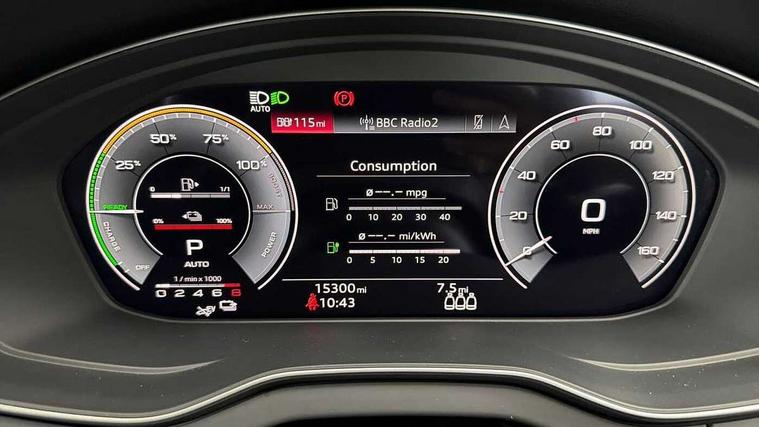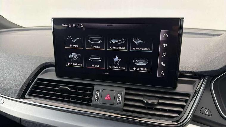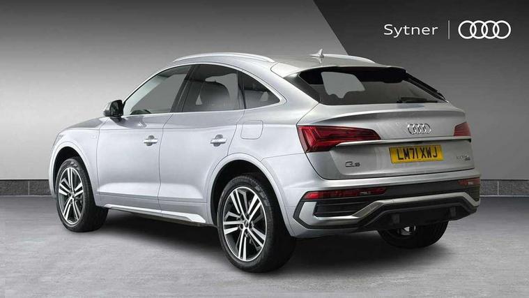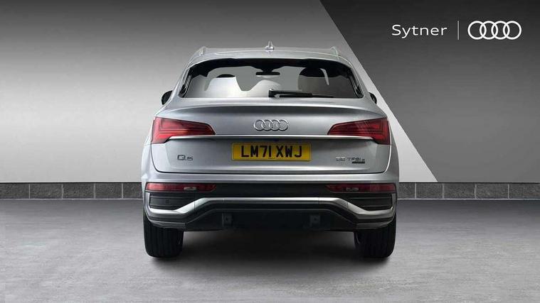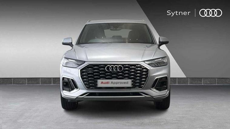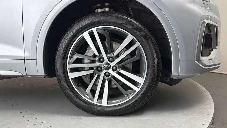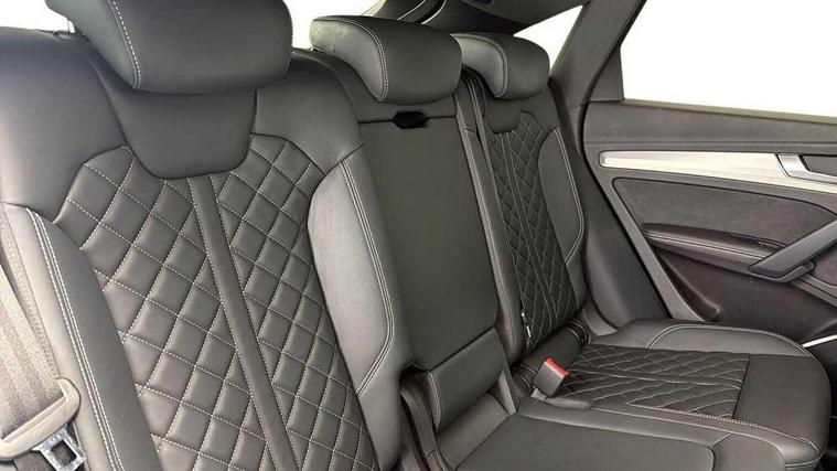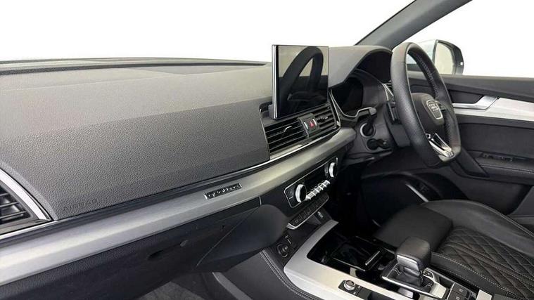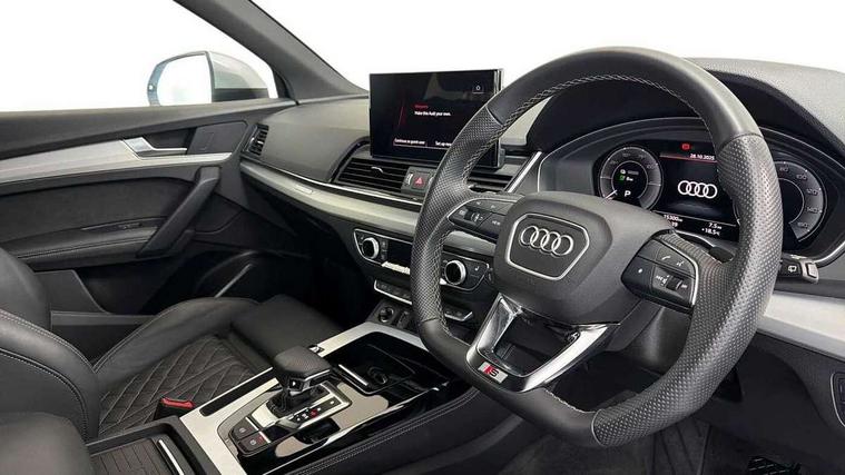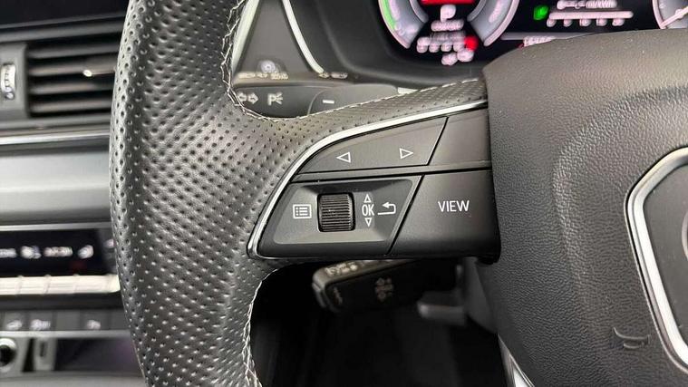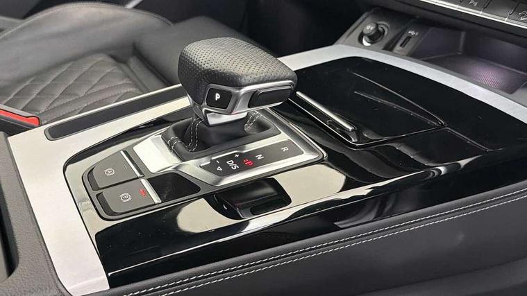 Advanced key with electric hands free boot opening system, Audi connect safety and service (e-call), Audi connect with Amazon Alexa Integration, Audi drive select, Audi virtual cockpit plus with 12.3" screen and three different layout designs, Audi wireless smartphone interface, Automatic start-stop system with coasting functionality and efficiency programme, Bluetooth interface, Electro - mechanical power assisted steering, MMI navigation plus with 10.1" touch screen, Power tailgate, Reversing camera, Service interval indicator, Voice control system with Audi hotword activation "Hey Audi", 3 pin 10 amp domestic charging cable, Dynamic suspension, Quattro on demand, Type 2 mode 3 22kW 32 amp charging cable, Type 2 socket for AC charging, Audi sound system, DAB Digital radio, Acoustic glass for front and door windows, Aluminium roof rails, Audi beam, Audi matrix LED headlights with dynamic front and rear indicators, Auto dimming rear view mirror, Automatic headlights and windscreen wipers, Body colour bumpers, Body colour door mirrors, Body colour rear diffuser with matt aluminium silver surrounds, Body colour underbody protection, Chrome plated exhaust trims, Door sills in Selenite silver, Electric adjustable/heated/folding door mirrors, Front air inlet surrounds in aluminium, Front and rear electric windows, Front radiator grille in honeycomb design, Headlight washers, Lower bumpers painted in contrast Manhattan grey, Rear chrome trim strip below lights, Rear diffuser strip in selenite silver, Rear privacy glass and rear side windows, Rear spoiler, Rear wiper, Roof bars, 2 x USB charging port with aux input socket, 3 rear headrests, 40:20:40 split folding rear seat with rear centre armrest, Black cloth headlining, Comfort front centre armrest, Contrast stitching on seats, steering wheel and gear lever gaiter, Deluxe 3 zone electronic climate control, Fine Nappa leather upholstery with diamond pattern contrast stitching + front sport seats with S embossed logo, Front/rear floor mats, Fully electrically adjustable seats, Gear lever in black leather, Heated front seats, Height adjustable front head restraints, Height/reach adjustable steering column, Illuminated door sill trims with S logo, ISOFIX child seat mounting and top tether, Massage function for front seats, Rear seat bench plus, Sunvisors with vanity mirrors, Tool kit, Trunk roller cover, Extended interior upholstery pack - Q5, High gloss pack - Q5, LED interior light pack - Q5, 3 point seatbelts on all seats, 6 airbags - Driver, front passenger, curtain and side airbags, Electrically operated child locks on rear doors, Electromechanical parking brake, Electronic stabilisation control including ABS, ASR and EDL, Front passenger airbag deactivation, Hill descent control, Hill hold assist, Multi collision brake assist, Pop-up bonnet for pedestrian protection, Pre sense city, Seat belt force limiter, Seatbelt monitoring, Tyre pressure warning, Warning triangle and first aid kit, Anti theft alarm, Anti-theft wheel bolts, Keyless Go access/ignition system, Matt brushed aluminium inlays, 20'' 5 segment spoke design alloy wheels in contrasting grey with diamond cut finish, Tyre repair kit,