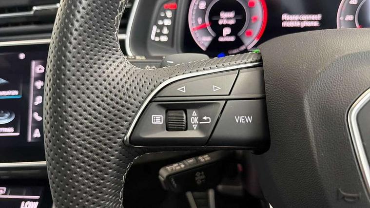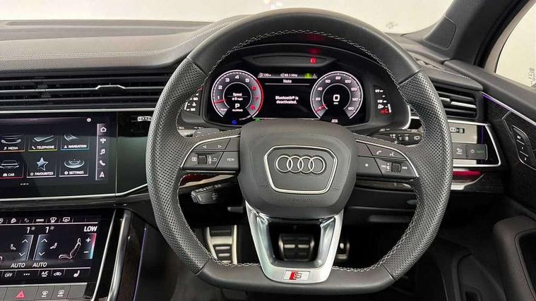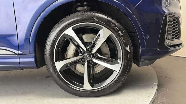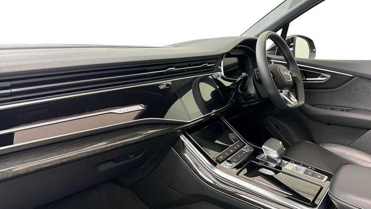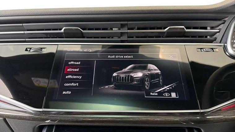 Audi connect safety and service (e-call), Audi connect with Amazon Alexa Integration, Audi drive select (Auto, Comfort, Dynamic, Efficiency, Individual, Off-road and All road), Audi phone box light with wireless charging, Audi virtual cockpit - 12.3" high-resolution LCD display with fully customisable instrument cluster, Bluetooth interface, Camera based traffic sign recognition, Electromechanical steering, MMI navigation plus with MMI touch screens includes 10.1" and 8.6" screens with haptic feedback, Natural voice recognition, Parking system plus with 360 degree display (front, rear and side sensors) - acoustic and visual park assist system, Power operated tailgate, Rear view camera, Smartphone interface includes wireless Apple carplay/Android Auto, Start/stop system, 48V Mild hybrid technology, 85 litre fuel tank, Adaptive air suspension, Quattro all wheel drive with self locking centre differential, Audi music interface - front 2 USB-C ports with charger and data functions, Audi sound system with 6 channel amplifier, 180 watt amplifying capacity and 10 loudspeakers including subwoofer, DAB digital radio module, 3rd brake light, Aluminium roof rails, Aluminium window trim, Auto dimming frameless rear view mirror, Body coloured door mirrors, Bumpers in contrast paint scandium grey finish includes door trim and wheel arch trim strips, inlays in door strip contain quattro embossing, Dark tinted Matrix LED headlights with dynamic front and rear indicators, Electrically adj heated/folding + automatically dimming exterior mirrors with memory + automatic kerb side function for passenger side exterior mirror, Heat insulating glass in windshield, Integrated LED indications in door mirrors, LED daytime running lights, LED rear tail lights, Privacy glass - dark tinted rear and rear side windows from B-pillar backwards, Rear side wing doors, Rear wiper, S Line badge on wings, S line bumpers in full body colour paint finish, S line roof spoiler, S line styling side ventilation grilles and side skirts, 2 seat bench in 3rd row, 2 zone automatic climate control, 3 seat bench in 2nd row, 7 seat layout with ISOFIX points for the front passenger seat and rear passenger seat, Black cloth headlining, Comfort front centre armrest, Electric adjustable front seat with 4 way lumbar support, driver memory functionality, Folding rear seats, Front head restraints, Front/rear floor mats, Heated front seats, Illuminated door sill trims with S logo, LED interior ambient lighting, Luggage compartment cover, Luggage compartment sill protection in stainless steel, Rear head restraints, Single front passenger seat, Stainless steel pedals, Sunvisors with illuminated vanity mirrors, 3 point seatbelts on all rear seats, Audi pre sense front, Child locks on rear doors, Driver and front passenger, front side and curtain airbags, Electromechanical parking brake, Electronic Stabilisation Control (ESC) including ABS, ASR and EDL, Extended pedestrian protection measures, Hill hold assist, Seatbelt monitoring, Tyre pressure loss indicator, Warning triangle and first aid kit, Anti theft alarm, Anti-theft wheel bolts and wheel loosening detection, Keyless Go, Remote central locking, Darkened matt brushed aluminium inlays, Tool kit, Tyre repair kit,