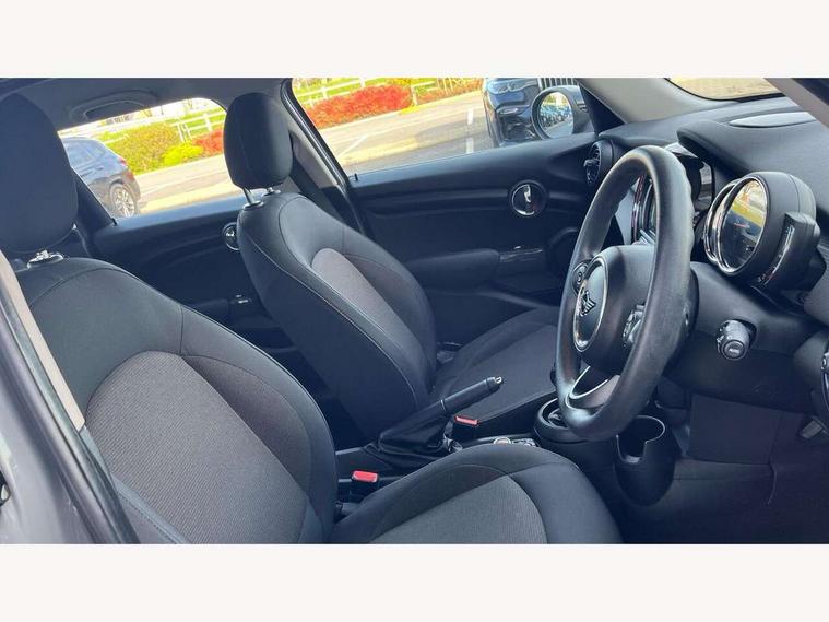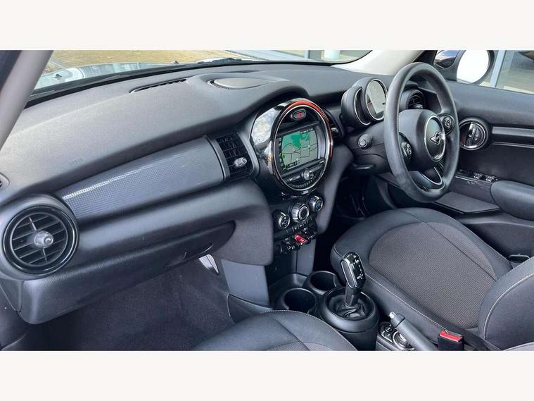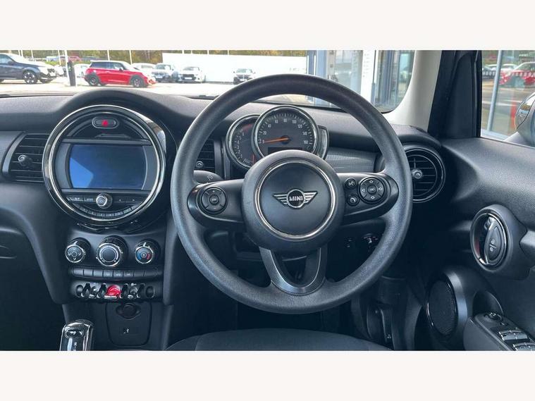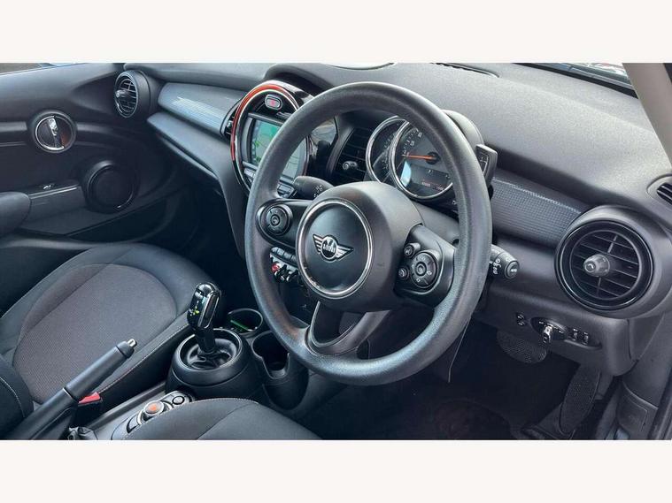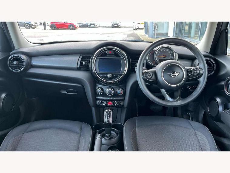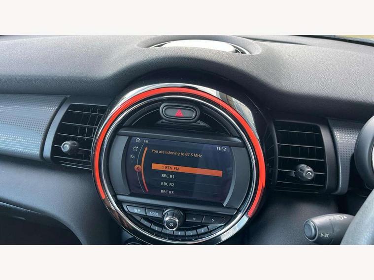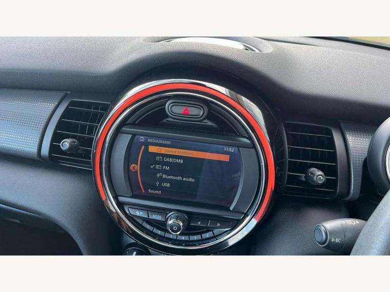 Compatible mobile phone bluetooth with audio streaming, Instrument cluster, Mini E-call, MINI TeleServices, On board computer, Service interval indicator, Steptronic transmission with double clutch, 6.5" touchscreen with LED ring, FM tuner and DAB digital radio, Automatic headlight activation switch, Body colour fuel filler cap, Chrome border high gloss black slats radiator grille, Dynamic brake lights, Electric front+rear windows, Heated rear window, Heated windscreen washer jets, LED headlight with closed ring and daytime driving lights, Left exhaust tailpipe with chrome finisher, Metal door sill strips with MINI imprint, Model logo Cooper on right of tailgate, Rain sensor window wipers, Rear fog lights, Rear LED lights with union jack design, Rear window wiper, Side scuttle panel with integrated indicator, Sun/heat protection glass, White indicator lenses, 12V Accessory socket in centre console, 4 lashing eyes in luggage compartment, 60/40 split folding rear seat, Chrome interior highlights, Colour line - Carbon black, Cupholders, Front and rear isofix with front passenger airbag deactivation, Glove compartment, Height and length steering column adjustment, Interior lighting with 12 basic colours selectable via toggle switch in roof, Leather gearshift lever and handbrake gaiters, LED reading lights, vanity mirror lights, front foot well light and spotlight on front seats, Manual air conditioning, Mechanical seat adjustment, driver seat height adjust, forward/back and front seats backrest, Mini logo projection on floor from drivers exterior mirror, Multifunction steering wheel, Satellite grey headlining, Storage compartments in doors, Sunvisors with vanity mirrors, 3 point seatbelts on all five seats, 6 Airbags - front, side, head and seat belt tensioners, Anti-lock braking system (ABS), DSC - Dynamic Stability Control, Front and rear disc brakes, Hill start assist, Single tone fanfare horn, Tyre pressure monitoring system, Alarm system with tilt sensor, monitoring doors, bonnet interior and tailgate, Electronic vehicle immobiliser, Start/stop toggle with keyless go, Tool kit,
