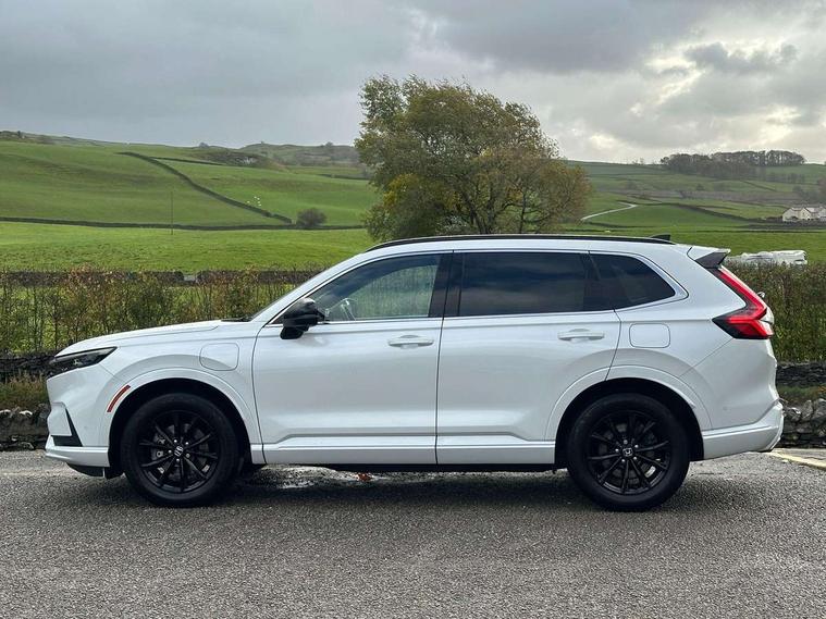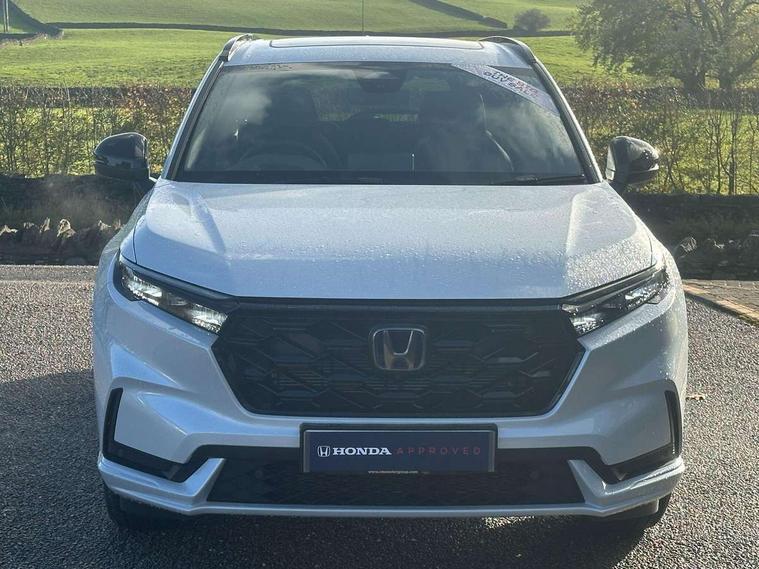 10.2" Multi information display, 4 x front 4 x rear 4 x side parking sensors, Active lane change assist, Adaptive cruise control with Cornering speed assist, Adjustable speed limiter, Agile handling assist, BLIS (Blind Spot Information System) with Cross Traffic Monitor, Bluetooth hands free telephone connection, Crossing traffic warning front, Drive Mode (EV, Econ, Sport, Normal, Snow, Tow), Driver attention monitoring system, E-call, eCall emergency call system, Electric power steering, Emergency stop signalling system, Forward collision warning, Handfree power tailgate with kick sensor and walk away close, Head up Display, HEV mode, Honda 360 sensing, Honda CONNECT navigation with My Honda+ 9" touchscreen, AM/FM/DAB, Apple Carplay and Android Auto, live traffic info, Honda parking pilot, Intelligent speed limiter, Lane change collision mitigation, Lane departure warning system, Lane keep assist system, Lane watch, Lead car departure notification system, Low speed following, Power meter, Road departure mitigation, Traffic jam assist, Traffic sign recognition, Wireless apple carplay, Wireless charging, Adaptive performance damper, Vehicle stability assist, 12 speakers, 1X USB (A/2.5A) and 1x Charger (C/3A) on Front, Bose premium sound system, Centre speakers, DAB+ radio, Dashboard centre speaker, Front tweeters, Rear USB 2x Charger (C/3A), Steering wheel mounted controls, Subwoofer, Active cornering lights, Adaptive driving beam, Auto dimming rear view mirror, Auto headlight adjuster, Auto headlights, Auto wipers, Black door mirror caps, Black paint + exculsive grille, Black Shark-fin antenna, Body colour bumpers, Body colour door handles, Body colour plus black colour roof spoiler, Electrically adjustable and heated door mirrors, Electrically folding door mirrors, Exhaust pipe finisher, Exterior mirror tilt for reverse, Front and rear electric windows, Front LED Indicator lights, Front turn type led with sequential, Headlight auto on/off timer, High gloss black window garnish, LED 3rd brake light, LED daytime running lights, LED front fog lights, LED Headlights, LED rear lights, Multi view camera system in door mirrors, Panoramic opening glass sunroof, Privacy glass, Rain sensor, Rear side wing doors, Rear wiper, Roof rails, Trailer stability assist, Welcome home function, 3 seat bench in 2nd row, 4 way driver lumbar support, 4 way electrically adjustable passenger seat without height adjust, 60/40 split folding rear seat, 8 way electrically adjustable drivers seat + mirror memory, Accessory sockets in Front & Trunk, Air conditioning - Rear vent, Ambient light in roof, Cargo net hooks, Courtesy lights, Dark roof lining, Driver and front passenger seat armrests, Driver/passenger front seatback pockets, Driver/passenger sunvisors and vanity mirrors, Driver/passenger sunvisors with illuminated vanity mirrors, Dual zone automatic climate control, Film layered honeycomb metal interior panels, Footwell ambient interior light front and rear, Front and rear ambient light (door handle&door line) and front cup holder, Front centre armrest, Front map lights, Front ventilated seats, Genuine leather steering wheel, Heated front seats, Heated rear seats, Heated steering wheel, Hybrid emblem, I-Size ISO Fix Points, Instrument panel with garnish wood film, Leather upholstery, Luggage floor box, Meter illumination, Platinum chrome interior door handles, Rear centre armrest, Rear headrests, Rear reading lights, Reclining rear seats, Single front passenger seat, Sport pedals, Sunglasses holder with mirror, Synthetic headrest, Tilt/telescopic adjustable steering wheel, Tonneau cover, Trunk light, Exclusive styling with sport paint pack - CR-V, 5 x 3 point seatbelts, ABS/EBD, Anti-whiplash front headrests, Brake assist function, Collision mitigation braking system, Deflation detection system, Driver airbag, Driver SRS airbag (single stage inflation), Electronic parking brake with auto hold, Front and rear collision mitigation throttle control, Front and rear curtain airbags, Front and rear seat belts with emergency locking retractor (ELR), Front centre airbag, Front passenger airbag, Front side airbags, Hill descent control, Hill start assist, Knee airbags (DR) and (AS), Low speed brake system, Manual child lock in rear doors, Paddle deceleration control, Passenger SRS airbag with cut off switch, Rear side airbags, Honda super locks, Immobiliser, Mirrors and windows key fob operation, Remote central locking with 2 key fobs, Security alarm, Selectable door unlock, Smart entry + Smart start, Tilt sensors, Ultrasonic security sensor, Flat tyre solution temper tyre/repair kit,
