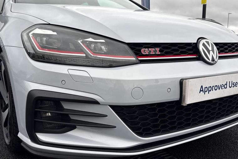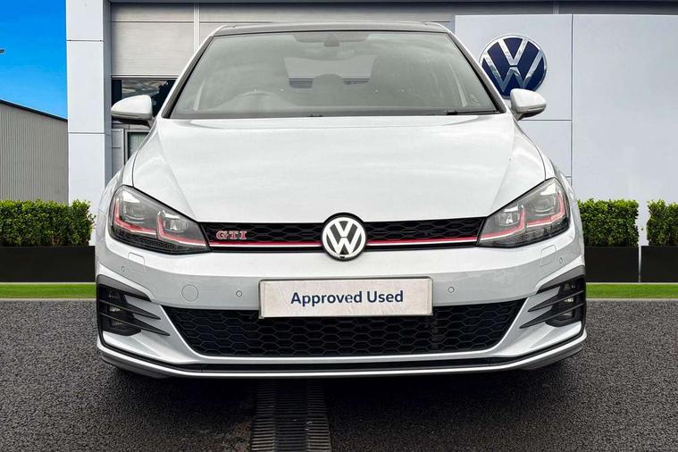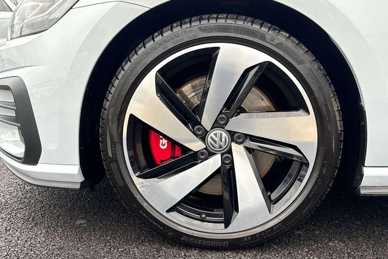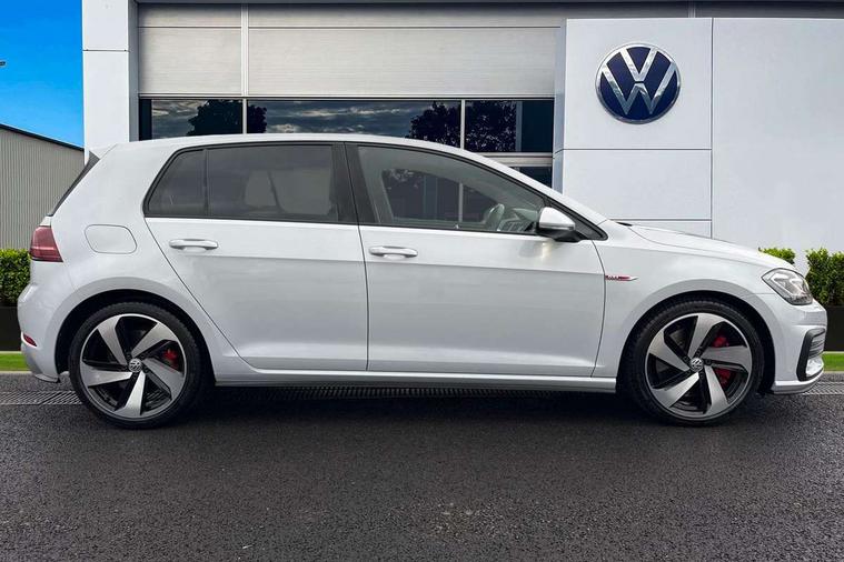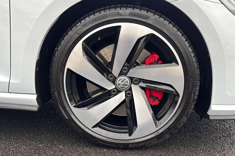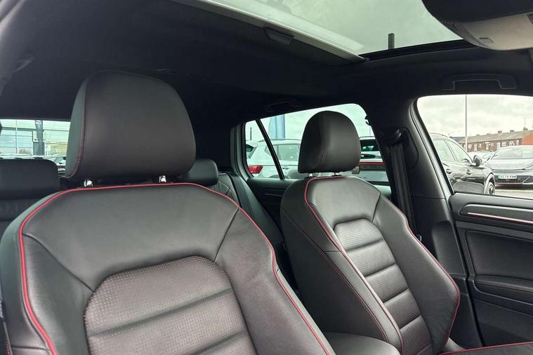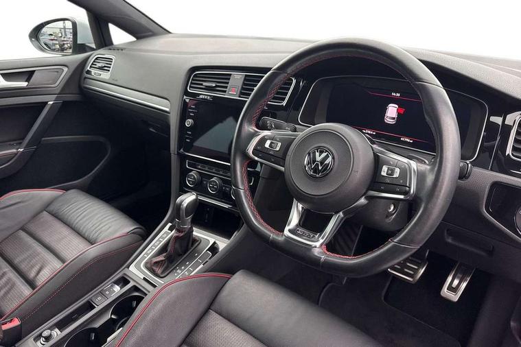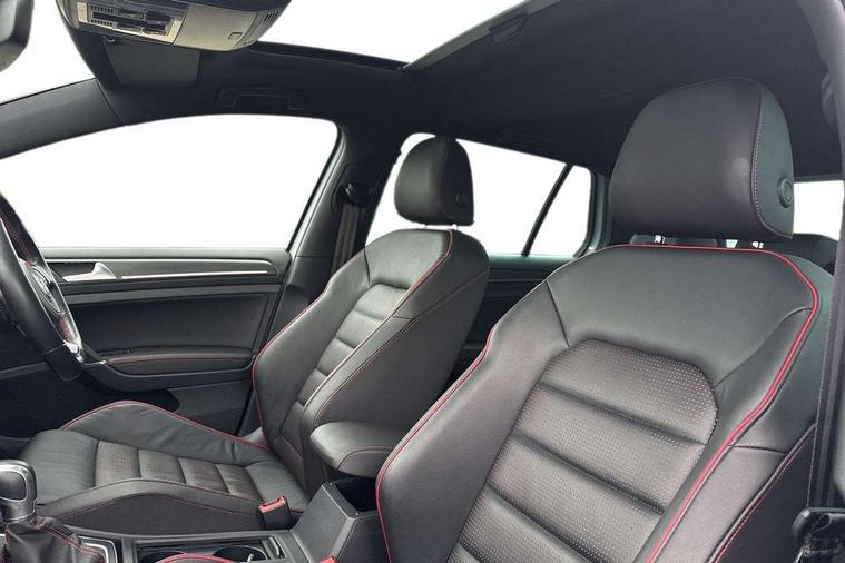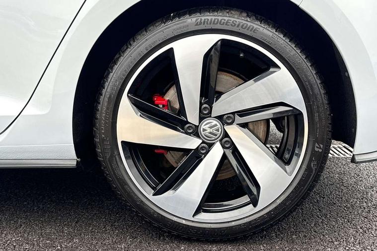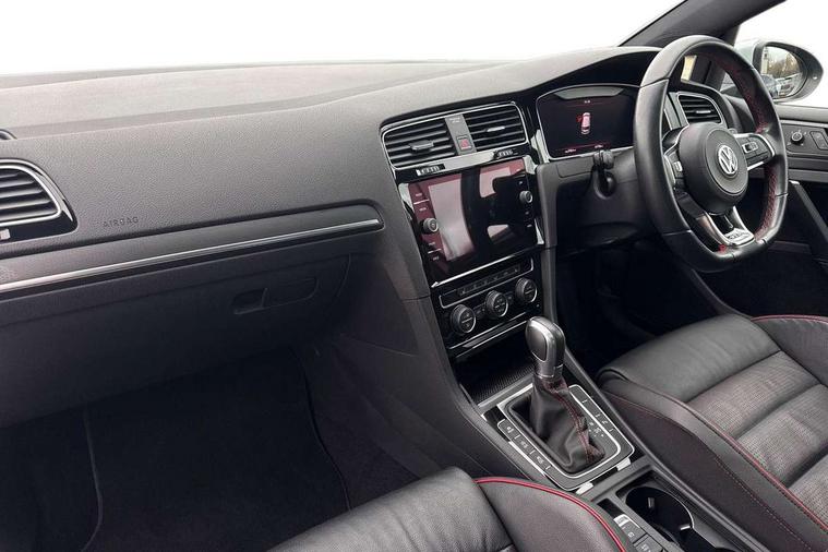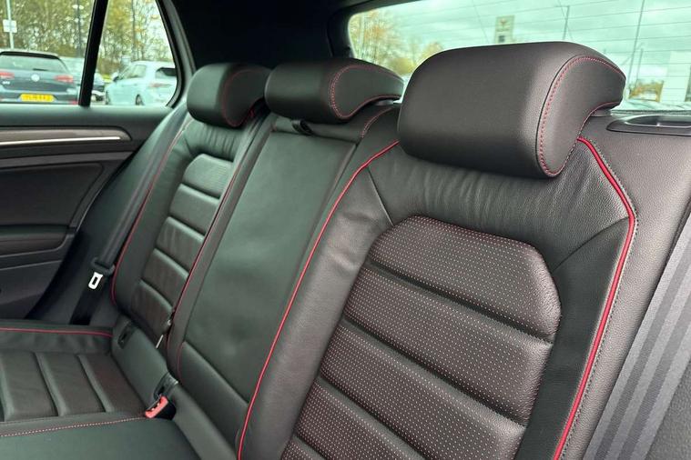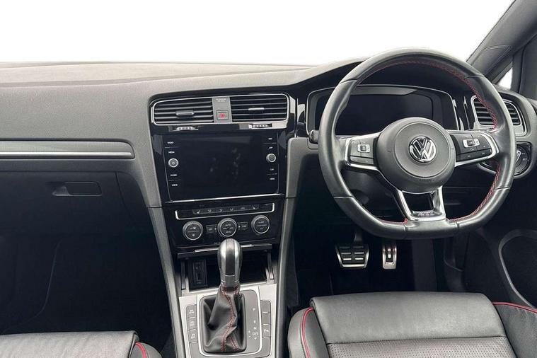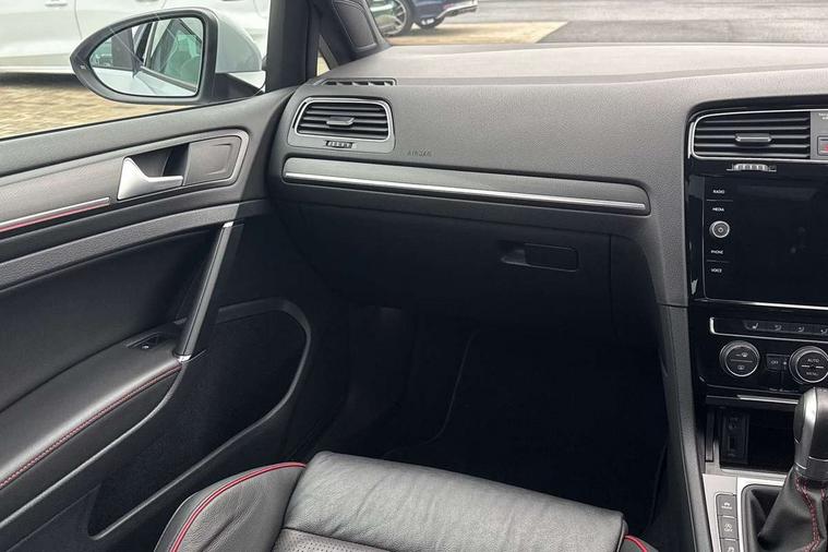 'Lights On' Reminder warning buzzer, 8" touch screen, Active information display, Adaptive Cruise Control with pedestrian detection and speed limiter, App-Connect, Bluetooth hands free telephone connection, Brake pad wear indicator warning light, Driver alert system, Driver profile selection, Exterior temperature gauge, Front assistant collision mitigation, Instrument cluster in white, Multifunction computer, Progressive power assisted steering, Rev counter, Trip and service interval display, Ultrasonic front and rear optical and audible parking sensors, Warning buzzer and light for front seatbelts unfastened, Limited slip differential, Lowered sports suspension, CD/MP3/WMA, USB and SD card reader, aux-in, Composition media system, DAB Digital radio, 3D-LED-SBBR with sweeping indicator, Auto dimming rear view mirror, Automatic coming/leaving home lighting function, Automatic headlights, Black rear diffuser, Body colour door handles, Body colour door mirrors, Body colour rear roof spoiler, Body colour sports bumpers, Darkened rear light clusters, Electric front windows, Electric rear windows, Electrically adjustable and heated door mirrors, Heated rear windscreen, Honeycomb radiator grille - black, LED daytime running lights, LED front fog lights, LED rear lights, Rain sensor, Rear windscreen washer and wiper with interval delay, Twin exhaust tailpipe, 12V socket in luggage compartment, 3 rear headrests, 3 spoke steering wheel, 60/40 split folding rear seat, Air conditioning - 2 zone electronic climate control, Bag hook in luggage compartment, Black headlining, Boot lashing points, Cooled glovebox, Courtesy light delay, Cover for storage compartment in centre, Dust/pollen filter, Front + rear carpet mats, Front centre armrest with storage box and rear air vents, Front passenger seat height adjust, Front reading lights, Front seat back storage pockets, Gearshift paddles, Grab handles, Height adjustable driver's seat, Height/reach adjust steering wheel, Illuminated door sills, Illuminated vanity mirrors, Isofix preparation for 2 rear child seats, Load through provision with rear centre armrest and cupholders x2, Luggage compartment cover, Luggage compartment lighting, Multi-function leather steering wheel with red stitching, Overhead storage box, Stainless steel pedals, Storage box in luggage compartment, Storage compartments in doors, Sun visors, Variable boot floor, height adjustable and removable, Ambient lighting pack - Golf, Mirror pack - Golf, 3 point height adj front seatbelts + pretensioners, 3 rear 3 point seatbelts, ABS, Automatic post collision braking, Child locks on rear doors, Driver/Front Passenger airbags, Driver/Passenger whiplash optimised head restraints, Drivers knee airbag, Electronic parking brake with auto hold, ESP with EDL + ASR, Front and rear curtain airbags, Front passenger airbag deactivation, Front side airbags, Pre crash system, Red brake calipers, Tyre pressure monitor, Uprated front disc brakes + calipers, Alarm with interior protection, Electronic engine immobiliser, Remote central locking with 2 remote folding keys, Chrome-plated light switch surround, Honeycomb black decorative inserts, Piano black centre console, Space saver spare wheel,