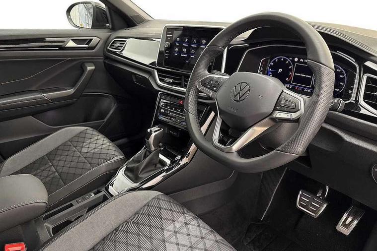 10.25" Digital cockpit pro, Advanced driver attention and drowsiness monitor, Emergency call service, Lane keeping system Lane Assist, Mobile phone interface, Modified key software - reduce switch off time for key status change to Long no motion, Online services, Park assist including front and rear parking sensors, Service interval indicator, Tailgate/trunk lid release from outside, Think blue trainer driver tips and journey analysis, Warning sound and light for front seatbelts unfastened, Wireless app connect, Battery regeneration during braking, Start/stop function with battery regeneration, DAB Digital radio, Diversity antenna for FM reception, Front and rear 6 speakers, Music playback - MP3, WMA and AAC files, Premium USB cable in choice of either Apple or Android smartphone compatibility, SD card slot, Simultaneous pairing of 2 compatible mobile devices, Title and cover art display, We Connect and We Connect Plus functionality, Auto dimming interior rear view mirror, Automatic hazard lights activation under emergency braking, Automatic headlight control with LED separate daytime running lights with coming/leaving home function, Body coloured exterior mirror housings and door handles, Electrically adjustable and heated door mirrors, Extended roof spoiler, Exterior mirrors aspherical on driver side, convex on front passenger side, External USB type C socket and charging sockets, Front windscreen wiper with intermittent wipe and 4 position delay, Heated rear window, LED 3rd brake light, LED rear combination lamps, LED rear number plate lights, Power windows with comfort operation and circuit breaker, Privacy glass for rear side windows and rear window, R-Line design body coloured bumpers, Rain sensor, Rear exhaust tailpipe, Rear fog light on one side and reversing lights on both sides, Rear side wing doors, Rear wash/wipe with intermittent wipe setting, Remote electrically foldable door mirrors, puddle lights and reverse activated passenger's door mirror, 12V power socket in centre console, 3 rear head restraints, 3 seat bench in 2nd row, 4 load lashing points in luggage compartment, Air care climatronic air conditoning system with active combination filter and 2-zone temperature control, Black roof lining, Chrome plated decorative trims, Chrome plated radiator grille inserts, air vent surrounds and light switch surrounds, Door and side trim panel with leatherette insert, Front + rear carpet mats, Front centre armrest, Front cupholders x 2, Front footwell illumination, Front reading light, Front scuff plates with R Line logo, Front seat back storage pockets, Glove compartment door with light, Instrument lighting, white adjustable panel illumination, Interior ambient lighting and surround lighting, Interior light delay, Isofix child seat preparation, Leather gearshift handle, Load-through provision with cup holder when folded down ('Unsplit rear seat bench, split folding backrest, with centre armrest), Luggage compartment lighting, Single front passenger seat, Stainless steel pedals, Storage compartment in left and right luggage area, Storage compartment in rear doors, Storage compartments in driver and front passenger doors, Sunvisors with illuminated vanity mirrors, Variable boot floor, height adjustable and removable, Driver assistance pack without proactive passenger protection - T-Roc, 3 point height adj front seatbelts + pretensioners, 3 point seatbelts in outer rear with ECE label, ABS, Child locks on rear doors, City emergency braking and pedestrian monitoring, Driver and front passenger airbag with front passenger airbag deactivation, Driver and front passenger safety-optimised head restraints, Drivers seatbelt reminder, Electronic parking brake, Electronic Stability Control (ESC) inc EDL (Electronic Differential Lock) and ASR (Traction Control), Front and rear passengers curtain airbag system including front side airbags, Hill start assist, Predictive pedestrian protection, Rear disc brakes, Two tone horn, Tyre pressure loss indicator, Volkswagen roadside assistance, Piano black decorative inserts in dashboard and front door trim panels, Trims for alloy wheels,