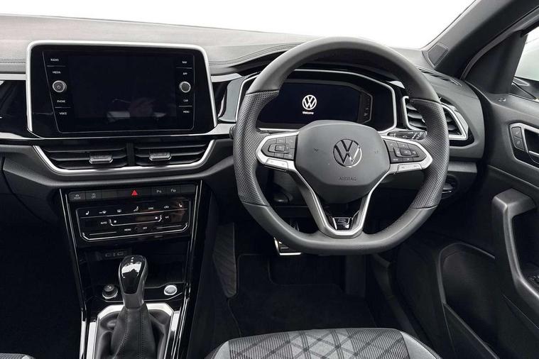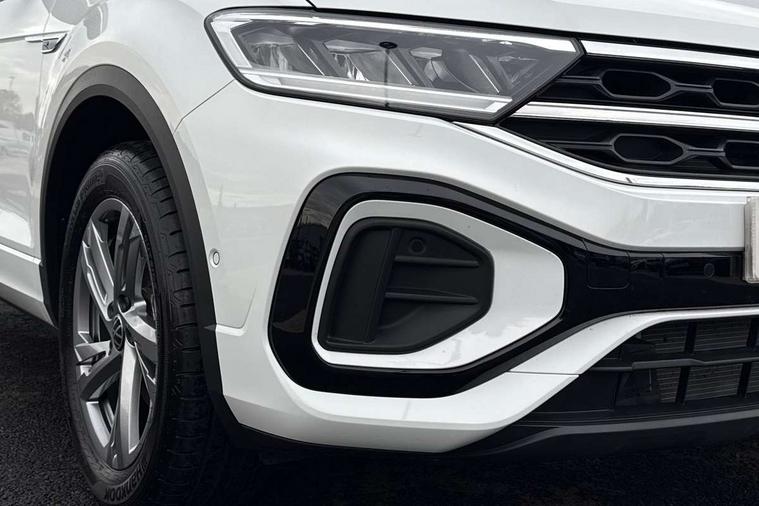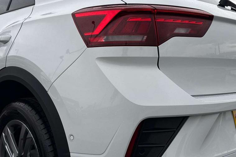 10.25" Digital cockpit pro, Advanced driver attention and drowsiness monitor, Emergency call service, Lane keeping system Lane Assist, Mobile phone interface, Modified key software - reduce switch off time for key status change to Long no motion, Online services, Park assist including front and rear parking sensors, Service interval indicator, Tailgate/trunk lid release from outside, Think blue trainer driver tips and journey analysis, Warning sound and light for front seatbelts unfastened, Wireless app connect, Battery regeneration during braking, Start/stop function with battery regeneration, DAB Digital radio, Diversity antenna for FM reception, Front and rear 6 speakers, Music playback - MP3, WMA and AAC files, Premium USB cable in choice of either Apple or Android smartphone compatibility, SD card slot, Simultaneous pairing of 2 compatible mobile devices, Title and cover art display, We Connect and We Connect Plus functionality, Auto dimming interior rear view mirror, Automatic hazard lights activation under emergency braking, Automatic headlight control with LED separate daytime running lights with coming/leaving home function, Body coloured exterior mirror housings and door handles, Electrically adjustable and heated door mirrors, Extended roof spoiler, Exterior mirrors aspherical on driver side, convex on front passenger side, External USB type C socket and charging sockets, Front windscreen wiper with intermittent wipe and 4 position delay, Heated rear window, LED 3rd brake light, LED rear combination lamps, LED rear number plate lights, Power windows with comfort operation and circuit breaker, Privacy glass for rear side windows and rear window, R-Line design body coloured bumpers, Rain sensor, Rear exhaust tailpipe, Rear fog light on one side and reversing lights on both sides, Rear side wing doors, Rear wash/wipe with intermittent wipe setting, Remote electrically foldable door mirrors, puddle lights and reverse activated passenger's door mirror, 12V power socket in centre console, 3 rear head restraints, 3 seat bench in 2nd row, 4 load lashing points in luggage compartment, Air care climatronic air conditoning system with active combination filter and 2-zone temperature control, Black roof lining, Chrome plated decorative trims, Chrome plated radiator grille inserts, air vent surrounds and light switch surrounds, Door and side trim panel with leatherette insert, Front + rear carpet mats, Front centre armrest, Front cupholders x 2, Front footwell illumination, Front reading light, Front scuff plates with R Line logo, Front seat back storage pockets, Glove compartment door with light, Instrument lighting, white adjustable panel illumination, Interior ambient lighting and surround lighting, Interior light delay, Isofix child seat preparation, Leather gearshift handle, Load-through provision with cup holder when folded down ('Unsplit rear seat bench, split folding backrest, with centre armrest), Luggage compartment lighting, Single front passenger seat, Stainless steel pedals, Storage compartment in left and right luggage area, Storage compartment in rear doors, Storage compartments in driver and front passenger doors, Sunvisors with illuminated vanity mirrors, Variable boot floor, height adjustable and removable, Driver assistance pack without proactive passenger protection - T-Roc, 3 point height adj front seatbelts + pretensioners, 3 point seatbelts in outer rear with ECE label, ABS, Child locks on rear doors, City emergency braking and pedestrian monitoring, Driver and front passenger airbag with front passenger airbag deactivation, Driver and front passenger safety-optimised head restraints, Drivers seatbelt reminder, Electronic parking brake, Electronic Stability Control (ESC) inc EDL (Electronic Differential Lock) and ASR (Traction Control), Front and rear passengers curtain airbag system including front side airbags, Hill start assist, Predictive pedestrian protection, Rear disc brakes, Two tone horn, Tyre pressure loss indicator, Volkswagen roadside assistance, Piano black decorative inserts in dashboard and front door trim panels, Trims for alloy wheels,