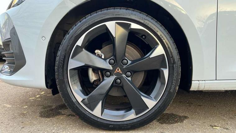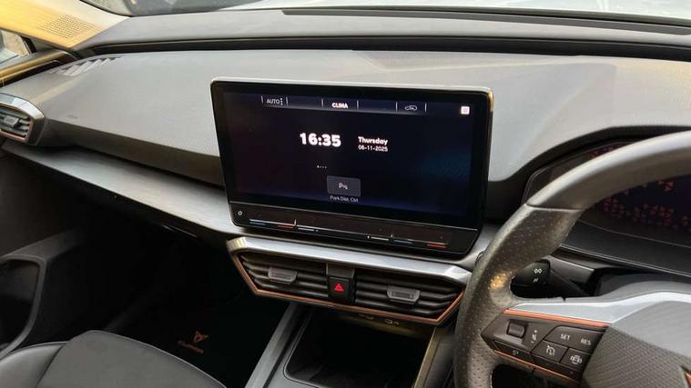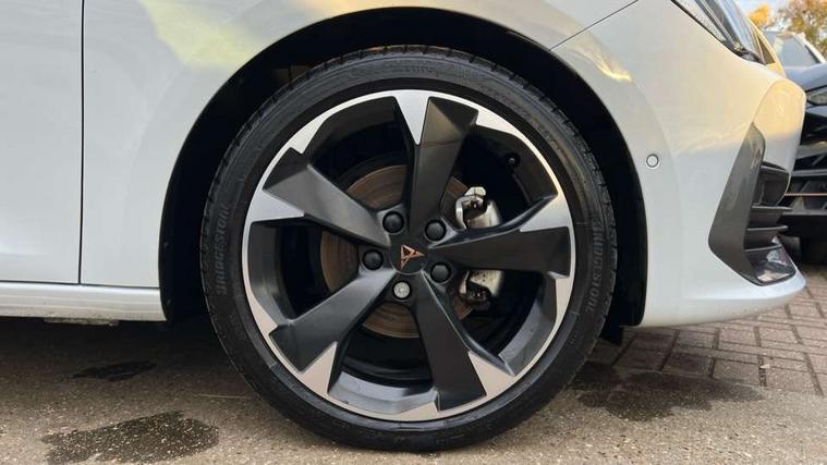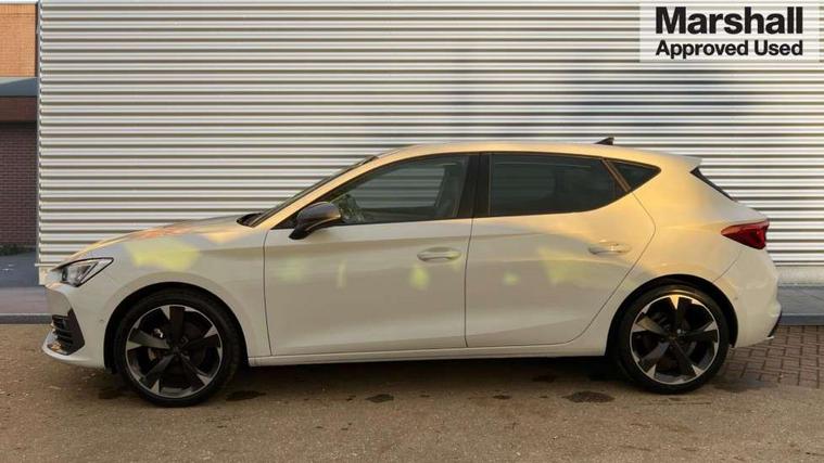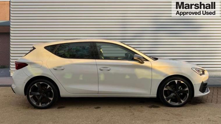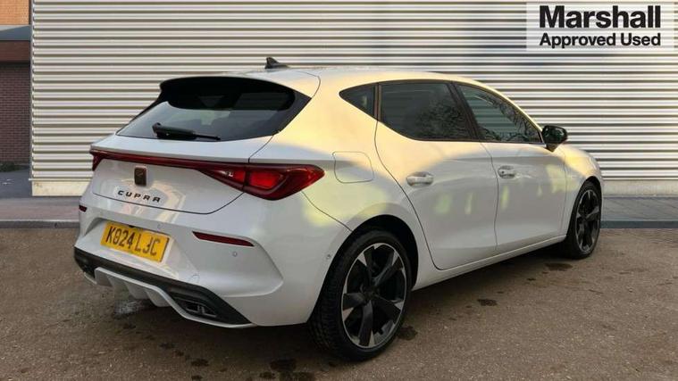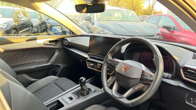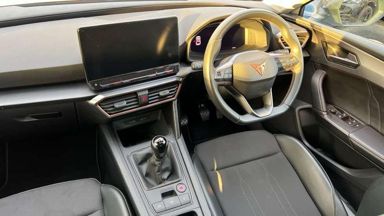 CUPRA drive profile selection with (Comfort/Sport/Individual), throttle response and gearshift mode, Digital cockpit, E-call, Electro mechanical speed sensitive power steering, Four x USB Type C ports (2 in front and 2 in rear), Front assist with forward collision warning braking reaction to vehicles, pedestrians and cyclists, Full link smartphone integration with Mirror Link, wireless Apple CarPlay and wired Google Android Auto, Lane assist, Lockable tailgate, Park assist (inc front/rear parking sensors), Rear view camera, RPM, trip computer, outside temp gauge, instrument light brightness, low fuel warning light, lights on reminder, gearshift indicator, Service interval indicator, Start/stop system with regenerative braking, Wireless phone charger, Sports suspension, Auxiliary input socket, Auto dimming rear view mirror, Body colour door handles, Body coloured bumpers, Cupra sports bumpers, Dark tinted rear windows, Electric front/rear windows, Electrically adjustable, heated and folding door mirrors, LED front fog lamps with cornering function, LED headlights with dynamic turn signals, tail lights, rear fog lights with rear coast to coast lighting, Rain sensing wipers, Rear diffuser with twin exhaust pipe on each side, Rear side wing doors, Rear wash/wipe, Separate daytime running light with automatic headlight control and coming home feature, Third brake light, 12v power supply in centre console, 3 seat bench in 2nd row, 5 headrests, 60/40 split rear bench seat with armrest, Ambient lighting with glovebox, footwell and single monocolour, Cupra Leather flat bottomed, perforated steering wheel, Driver/passenger manual seat height adjustment, Folding boot cover, Front and rear reading lights X 4, Front centre armrest, Front seats manual lumbar adjustment, Grey headlining, Height/reach adjust steering wheel, Illuminated interior front door sills, ISOFIX points in outer rear seats with top tether anchorage points, Jack and tool kit, PVC/Cloth upholstery with copper stitching, Single front passenger seat, Sports seats, Sunvisors with illuminated mirror, Three zone climate control, Media system plus with navigation pack - Leon Cupra, Safety and driving pack (M) - Cupra leon, 3 point seatbelts on all rear seats, ABS, Brake control system - ESC and brake booster, Child proof door locks, Cupra black brake calipers, Driver and front passenger airbags with front passenger airbag de-activation, front side and curtain airbags, Electronic parking brake, Extended safety system - seat belt tensioner, window closure and hazard lights, Hill hold control, Rear disc brakes, Seat belt reminder for front and rear seats, Tiredness recognition system, Tyre pressure monitoring system, Anti theft alarm system with interior monitoring in cab, backup horn and towing protection, KESSY Advanced - Keyless start, keyless entry, Locking wheel bolts, Chrome and copper interior detailing, 18" Machined sport black and silver alloy wheels with 92Y tyres,