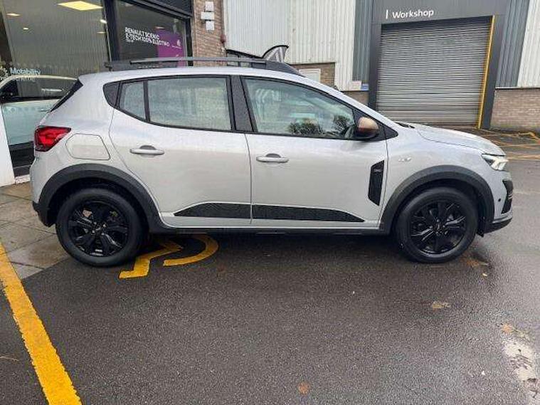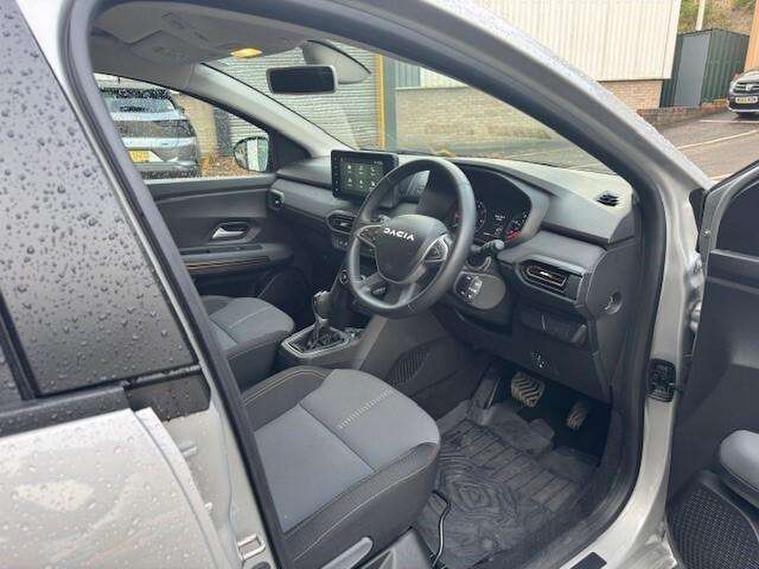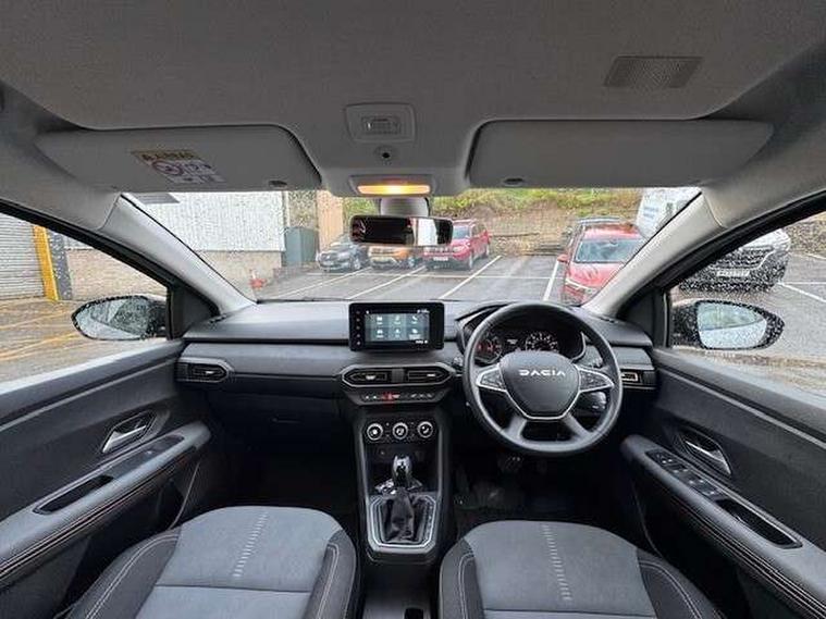 3.5" TFT instrument panel with on-board computer, Blind spot warning, Cruise control with speed limiter, eCall emergency call system, Eco mode, Electric power assisted steering, Extended grip switch, Front parking sensors, Rear parking sensors, Rev counter, Reversing camera, Stop/start system, 8" MediaNav with DAB Radio + Smartphone replication + Bluetooth + 6 Speakers with Apple Carplay and Android Auto, USB connection for data transfer and charging, USB socket, 3 speed windscreen wipers, Auto lighting, Automatic wipers, Black radiator grille with white inserts stepway inscription, Body colour door handles, Body coloured bumpers, Copper Brown Dacia inscription on tail gate, Copper brown deco part on fog lamp area, Copper brown door mirrors, Copper brown stepway inscription on roof bars, Door sills in topographic pattern, Drivers one touch electric windows, Electrically adjustable and heated door mirrors, Front electric windows, Front fog lights, Heated rear window, High level third brake light, Lateral sticker with topographic pattern, LED automatic daytime running lights, LED Y-shape Dacia signature lighting, Megatith modular roof bars, Rear electric windows, Rear side wing doors, Rear wash/wipe, Shiny black shark antenna, Snorkel sticker with topographic pattern, Tinted windows, 1/3 to 2/3 split folding rear seats, 12 volt front socket, 12 volt rear socket, 3 height adjustable rear headrests, 3 seat rear bench, Automatic air conditioning, Copper brown doors deco parts, Driver and passenger vanity mirror with cover, Fabric upholstery, Fixed smartphone holder on dashboard, Fog grey animation on air vents, Fog grey interior door handles, Front and rear rubber mats with topographic pattern, Height adjustable drivers seat with armrest, Height adjustable front headrests, Height/depth adjustable steering wheel, High central armrest with console storage, Isofix points for child seats in both outer rear seats, Micro-cloud grey fabric on dashboard, Single front passenger seat, Soft feel steering wheel, Steering wheel controls, 3x3 point rear seatbelts, ABS and Emergency brake assist, Automatic emergency braking system, Child locks on rear doors, Door open visual and audible warning, Driver airbag, EBD - Electronic brakeforce distribution, Electronic parking brake, ESC (Electronic Stability Control), ESP + Hill Start Assist, Front curtain airbags, Front seatbelt pretensioners, Front side airbags, Height adjustable front seatbelts, Passenger airbag, Seatbelt reminder for driver and front passenger, Tyre pressure monitor, Automatic central locking, Immobiliser, Keyless entry, Remote central locking, Decopart on instrument panel and door with textile, 16" Full Black Diamond-effect alloy wheel with Copper brown Dacia logo on wheel centre caps,