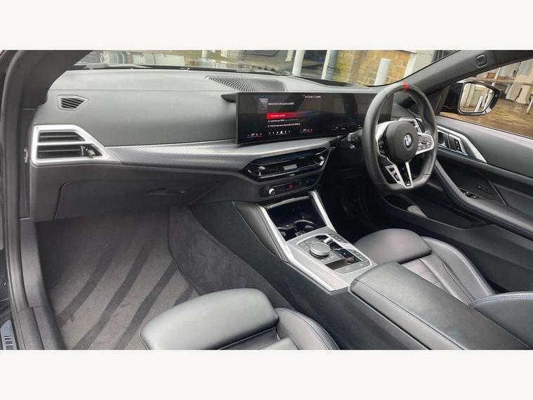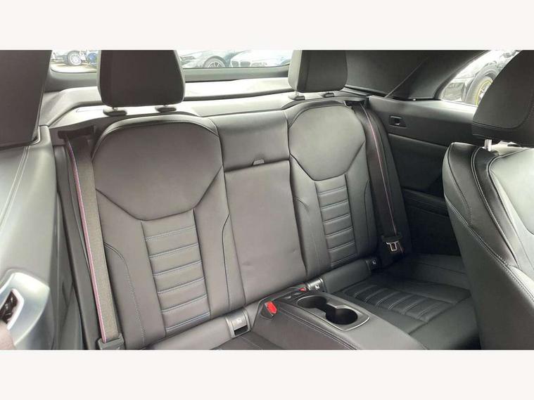 Active guard plus, Attentiveness assist, Auto start-stop, Bluetooth hands free facility with USB audio interface with audio streaming, BMW ConnectedDrive online services, BMW iDrive controller on centre console, BMW service history, BMW Teleservices, Brake pad wear indicator in front and rear, Check Control warning system for monitoring of lights and door/luggage compartment open warning, Condition based service, Electric power steering with Servotronic steering optimised at all speed ranges, Gearshift time display in manual mode, Instrument cluster with speedometer with mph readout, tachometer, fuel gauge and oil temperature gauge, Integrated owners handbook, Oil sensor for level and grade, warning by check control system, On board computer - average speed, fuel consumption, outside temp display with acoustic warning, clock/date, service interval, odometer/trip meter, Optimum shift indicator, Run flat indicator, Shifting point display, Smartphone integration compatible with Apple CarPlay and Android Auto, Variable sport steering, 48V Mild hybrid technology, 8 speed automatic steptronic transmission with gearshift paddles, Active sound design, Balanced 50/50 weight distribution, Double joint spring strut front axle, Drive performance control - ECO PRO, comfort and sport modes, Low centre of gravity, M Sport differential, Petrol Particulate Filter, Sprint mode, Stroke dependent dampers, xDrive system permanent all-wheel drive variable torque distribution, 1x USB type A with data transfer and 1.5 Amp charging function in the centre console, 1x USB type C with 3 Amp charging function in the front centre armrest, DAB tuner, Electronic service booklet, Acoustic glazing, Automatic headlight beam throw control with load dependent regulating reaction, dynamic compensation of braking dive and acceleration squat, Automatic windscreen wipers and automatic headlight, Automatically dimming electrochromatic rear view mirror, BMW emblem on engine compartment lid and tailgate, Body colour fuel filler flap, Body colour roof fin, Brushed aluminium inserts in the front door sill finishers with BMW designation, Door sill strips, Dynamic brake lights, Electric windows - front and rear, with open/close fingertip control, anti trap facility and comfort closing function all round, Exterior mirrors - electrically folding with anti-dazzle, Fading support, Follow me home headlights, Free form tailpipe finisher and side frame trim strip in high gloss black, Front and rear bumper system, Front apron plastic in body colour, Green tinted heat protection glazing, High gloss shadow line exterior trim, Illuminated bow type door handles in body colour drivers side with door lock, Interior rear view electrochromatic mirror with automatic anti dazzle function, LED daytime running lights, LED front fog lights, LED front indicators, Licence plate panel integrated into front bumper and tailgate, Lightweight engineering, M designation on front side panels, left and right, Model and M badges in pearl chrome, One piece front bumper cover including towing eye cover in body colour, Preparation for high beam assistant, Rear boot, Reversing light, Third brake light, Two part LED tailights in L-shape with components in smoked glass, brake light, LED turn indicator and rear fog light, Visible VIN plate, Welcome lights in interior and door handle area, Widened track and increased camber values for max transverse dynamics, agility and steering precision, Wind deflector, Window recess cover black high gloss, Windscreen wipers with integrated heated washing jets, xDrive designation on left tailgate, 12V power socket in front centre console, 2 2nd row folding seats, 2 front cupholder in centre console with clamping elements and matt black inlay, 2 Rear seat headrests, 2nd row centre armrest with built-in cupholders, 3 spoke flat bottom M sport leather multifunction steering wheel, 3 zone automatic air conditioning, 4 pieces lashing eyelets in luggage compartment, Anthracite headlining, Armrest integrated in front and rear door trim + front centre console armrest, Battery in luggage compartment, BMW ID, Driver seat backrest width adjustment, Electric seat adjustment with memory, Extended storage - Luggage compartment partition net on left side trim panel, Bag hook on both sides of the luggage compartment, Front and rear door pockets, Front and rear reading lights, Front sport seats, Heated driver and front passenger seats, Height adjustable front headrests, Height adjustable mechanically and infinitely variable steering column, Illuminated armrest storage compartment, Illuminated glove compartment with separate small compartment, Luggage compartment light, Make-up mirror lights, Single front passenger seat, Storage compartment in rear centre console, Sunvisors with illuminated vanity mirrors and ticket pocket, Toolkit located in luggage compartment, Velour front floor mats, Ambient lighting pack - 4 Series, Connected professional package - 4 Series, M sport exterior styling pack - 4 Series M440i, 2 x 3-point rear seatbelts, Battery safety cut-off, BMW emergency call, Brake energy regeneration, Braking pre-tensioning, Child seat ISOFIX attachment for the two outer rear seats, Coasting in idle in ECO PRO mode, Cornering brake control (CBC), Crash sensor activating of airbags, Unlocking doors, hazard warning lights, interior light, safety battery terminal, Driver and front passenger side airbags, integrated in the door side seat backrest bolsters for all seat variants, Driver/Front Passenger airbags, Dry braking, Dynamic brake control, Dynamic stability control + (DSC+) - Anti-lock Braking System (ABS) with brake assist and cornering brake control + Automatic Stability Control (ASC), Dynamic Traction Control - DTC, Electric parking brake including automatic hold function and automatic release of the parking brake when driving off, Electronic differential lock control (EDLC), Front and rear ventilated brake disc, Front passenger manual airbag de