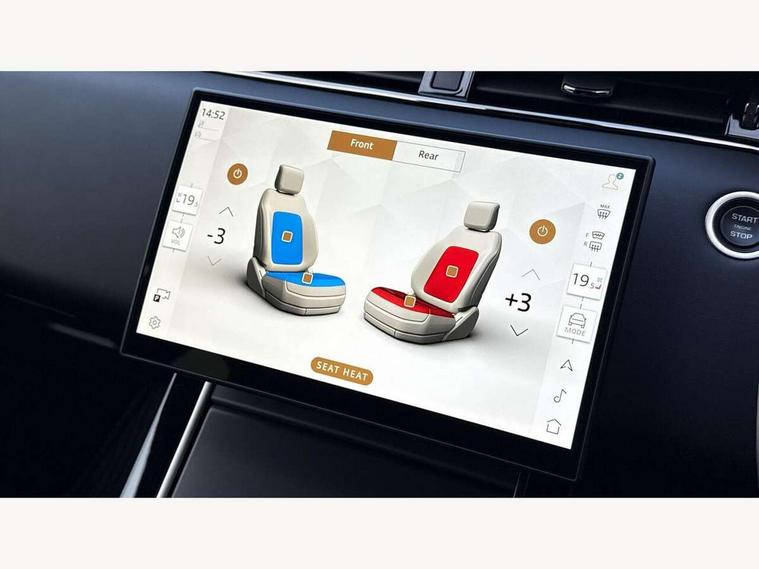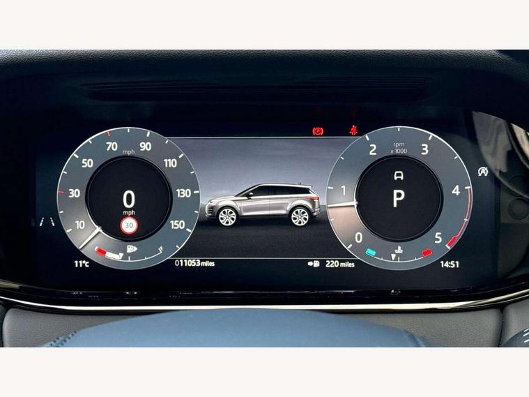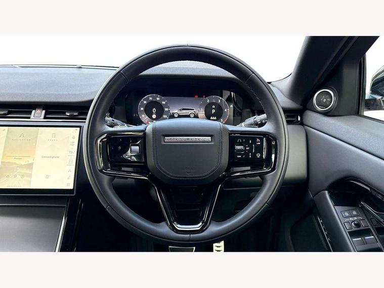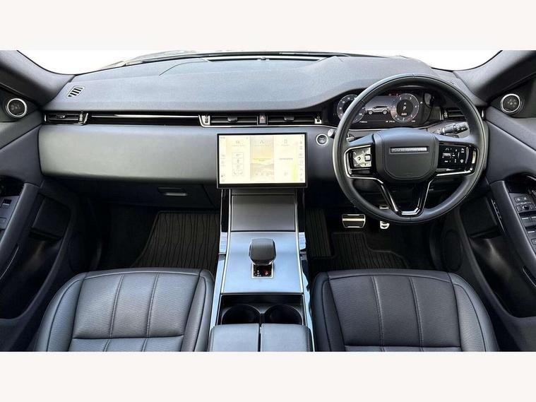 11.4" touch screen, Adaptive cruise control, Android Auto, Apple car play, Blind spot assist, Bluetooth connectivity, Brake pad wear indicator warning light, Driver condition monitor, eCall emergency system, Eco mode, Electronic power assisted steering (EPAS), Front and rear parking aid, InControl remote, Interactive driver display, Land Rover InControl apps, Lane keep assist, Pivi pro connected includes diamond pivi variant, smart settings, connected navigation pro, nuance speech licence, Powered tailgate/boot lid, Rear collision monitor, Rear traffic monitor, Traffic sign recognition with adaptive speed limiter, Voice control system, Wireless device charging, All terrain progress control, Diesel exhaust fluid (DEF) large tank, Efficient Driveline, Large fuel tank, Passive suspension, Terrain Response 2, Digital Audio Broadcast radio-DAB, Steering wheel mounted controls, Acoustic laminated windscreen, Auto headlights, Automatic headlight levelling, Electric windows with one touch open/close and anti trap, Flush deployable exterior door handles, Front and rear recovery eyes, Heated rear window with timer, Heated washer jets, Heated windscreen, Pixel LED headlights with signature DRL and LED tail Lights, Power fold, auto-dimming, heated door mirrors with approach lights and auto dimming driver side, Rain sensing windscreen wipers, Rear animated directional indicators, Rear fog lights, Rear side wing doors, Rear wiper, Side repeater indicators in mirror, Tailgate spoiler, Third brake light, Winter wiper park position, 14 way driver memory electric front seats with 2 way manual headrests + 4 way lumbar support, bolsters, 40:20:40 split folding rear seats with centre headrest and armrest, Ambient interior lighting, Bright metal pedals, Carpet mats, Chrome tread plates with range rover branding Includes stainless steel loadspace scuff plate with etched graphic, Customer configurable single point entry, Electrically adjustable steering column with memory function and easy entry/exit, Front and rear cupholders, Heated steering wheel, Isofix system on outer rear seats, Overhead lighting console, Overhead stowage for sunglasses, Passive front head restraints, Rear air vents, Rear head restraints, Satin chrome gearshift paddles, Single passenger seat, Sunvisors with illuminated vanity mirrors, Twin sliding front centre armrest, Online pack with data plan - Evoque, Power socket pack 2 - Evoque, 3 rear 3 point seatbelts, Anti-lock braking system (ABS), Brake hold function, Customer configurable autolock, DSC - Dynamic Stability Control, Electronic brake force distribution, Electronic parking brake, Electronic traction control, Emergency braking, Front and rear seatbelt reminder, Hill descent control, Hill launch assist, Low traction launch, Occupant protection assist, Passenger seat occupant detector, Power operated child locks, Roll stability control, Six airbags - Driver and passenger airbags/driver knee airbag/front side airbag and curtain airbags, Torque vectoring brake, Tyre pressure monitoring system, Alarm, Immobiliser, Intrusion sensor, Keyless entry, Locking wheel nuts,