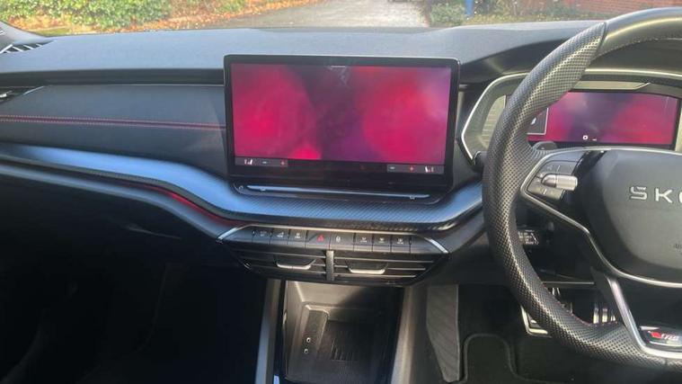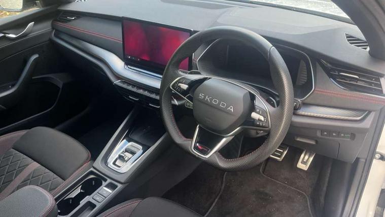 1x USB Typc C port in rear view mirror, 4x USB Type C ports - 2x in front centre console and 2x in rear (45W), Drive mode selection, Driver fatigue sensor, eCall emergency system, Electrically operated boot with virtual pedal, Front assist system, Progressive dynamic steering, Traffic sign recognition, Turn Assist, Virtual Cockpit - 10.25" digital display, Voice control system, Wireless charging (15W) with cooling function, Wireless SmartLink for Apple CarPlay and Android Auto, Electronically controlled limited slip differential, vRS suspension, 13" touchscreen display with navigation, DAB Digital radio, Aero front windscreen wipers with intermittent function, Auto dimming rear view mirror, Black sport exhaust pipes, Body colour bumpers, Body colour door handles, Electric front and rear windows, Exterior gloss black sports styling including front grille, window surrounds, door mirrors and badging, Gloss black diffuser, Gloss black spoiler, Heated rear windscreen, High beam control, High level third brake light, Ice scraper in fuel cap, LED daytime running lights, Logo projection in front doors, Rain and light sensors, Rear fog light on one side, Rear privacy glass, Rear side wing doors, Unique vRS bumpers and exterior styling, 12 volt socket in boot, 3 rear headrests, 3 seat bench in 2nd row, 4 foldable roof handles, Aluminium pedals, Front head restraints, Front sport seats, Heated front seats, Illuminated glovebox, Interior door handles in dark chrome, Jumbo Box storage, Luggage compartment lighting x2 lights, Mechanical rear seat release from boot, Parcel shelf - folding, Single front passenger seat, Steering wheel in black leather with black stitching, Storage compartments in left and right of boot, Sun visors with mirrors, Sunglasses storage, Ticket holder, Umbrella in door panel, Unsplit rear bench seat, split folding backrest with centre armrest with cupholder, Waste bin in door panel, Comfort package - Octavia, Family package - Octavia, Light and view package plus - Octavia, vRS Design Selection pack - Octavia, 3x3 point rear seat belts, Alarm with interior monitoring, tilt sensor and back up horn, Curtain airbags and front side airbags, Driver and front passenger airbags, Drivers knee airbag, Electronic parking brake, ESC including ABS, EBV, MSR, ASR, EDS, HBA, DSR, Front central airbag, Hill hold assist, ISOFIX on front passenger seat and outer rear seats, Passenger airbag deactivate switch, Red brake calipers, Three point seat belts in front and rear, Two tone horn, Tyre pressure monitor, Visual and acoustic seat belt reminder, Warning reflectors in front door, Anti-theft wheel bolts, Keyless start/stop, Remote central locking, Gloss black air vent surrounds, 19" Elias anthracite alloy wheels,