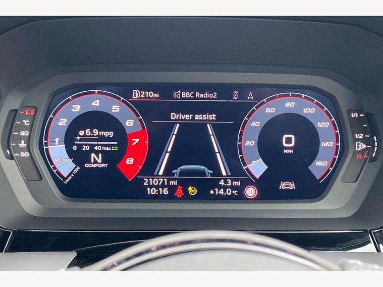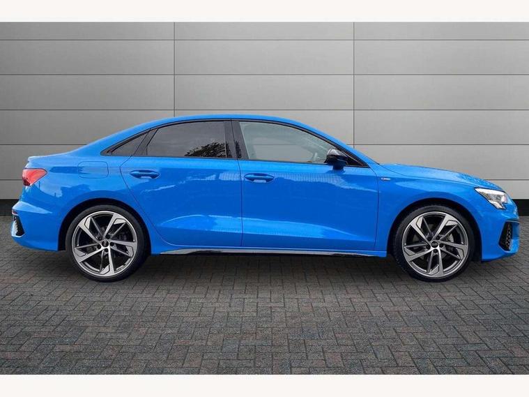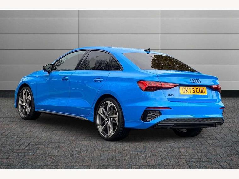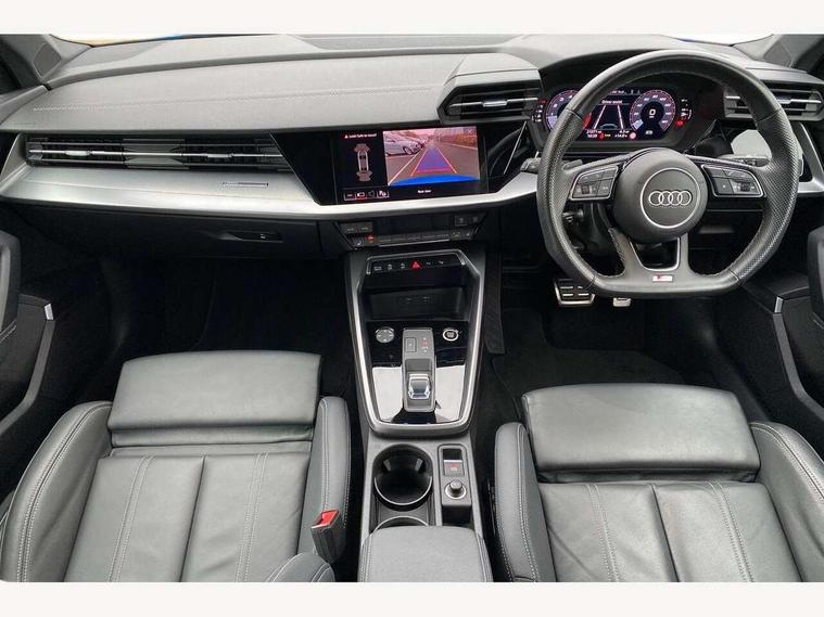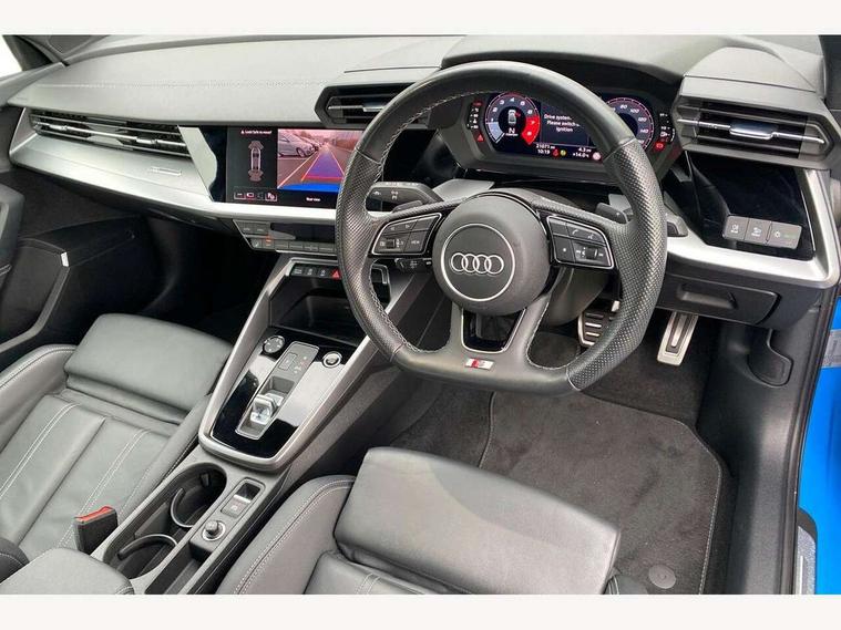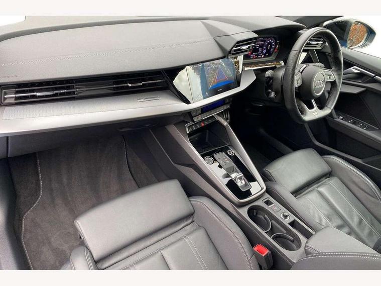 Audi drive select (Auto, Comfort, Dynamic, Efficiency and Individual), Audi smartphone interface, Audi Virtual Cockpit - 10.25" digital and colour instrument cluster, Automatic start/stop system with recuperation, Bluetooth interface, Camera based traffic sign recognition, Collision avoidance assistant, e-Call (emergency call), Electromechanical power speed sensitive steering, Lane departure warning system, MMI Navigation Plus with high resolution 10.1" colour touch screen display, Service indicator, Trip computer, Voice control system with natural language interaction, Sports suspension, 2xUSB-C connection with data and charging functions, 6 passive loudspeakers, CD player, DAB Digital radio, 3rd brake light, Acoustic glass windscreen, Audi beam uses LEDs to project the Audi logo onto the ground as you exit your A3, Auto dimming frameless rear view mirror, Electrically adjustable/heated/folding/auto dimming door mirrors with integrated LED indications + kerb view function for passenger side, Front electric windows, Illuminated door sills with aluminium inserts at the front with S logo, LED daytime running lights, LED headlights with LED rear lights and dynamic rear indicators, Light and rain sensors, Model and engine designation badges at rear, Privacy glass - dark tinted rear window, rear door and side windows, Rear boot, Rear electric windows, Rear side wing doors, S roof spoiler, 12V socket and storage compartment in front centre console, 3 seat bench in 2nd row, 3 spoke flat bottomed leather multifunction sport steering wheel with gear shift paddles, 4 way electrically adjustable lumbar support for driver and front passenger, 60/40 split folding rear seat bench, Black cloth headlining, Dual zone electronic climate control, Front and rear centre armrest in artificial leather, Front and rear headrests, Front/rear floor mats, Height and reach adjustable steering wheel, Interior lighting - glove compartment light and right hand side, Luggage compartment floor covering, Manual boot compartment lid, Single front passenger seat, Stainless steel pedals and front footrest in black, Twin leather upholstery with front sports seats S embossed logo, Aluminium interior elements pack - A3, Black styling pack - A3 Saloon/Black edition, LED interior lighting pack - A3 Saloon, 3x3 point rear seat belts, Driver and front passenger airbag with passenger airbag deactivation, Electronic Stabilisation Control (ESC) including ABS, ASR and EDL, First aid kit with warning triangle and 2 safety vests, Front side airbags with head airbags and interaction airbag, Pre-sense front with pedestrian and cyclist detection, Seatbelt monitoring, Tyre pressure loss indicator, Anti theft alarm, Anti-theft wheel bolts, Electronically operated child locks, Immobiliser, Remote control central locking, Aluminium air vent surrounds, Dark spectrum aluminium inlays, accent surfaces in the dashboard and centre console in platinum grey silk effect paint finish, 19" 5 arm trapezoid design alloy wheels in matt grey with diamond cut finish,